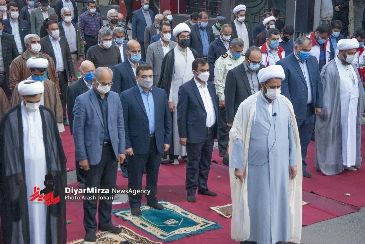 نماز عید سعید فطر در بندر مرزی آستارا امسال متفاوت تر از سال های گذشته با زدن ماسک و رعایت دستورالعمل های بهداشتی باحضور باشکوه مردم به امامت حجت الاسلام والمسلمین کاظم حافظ نیا امام جمعه شهرستان برگزار شد.
