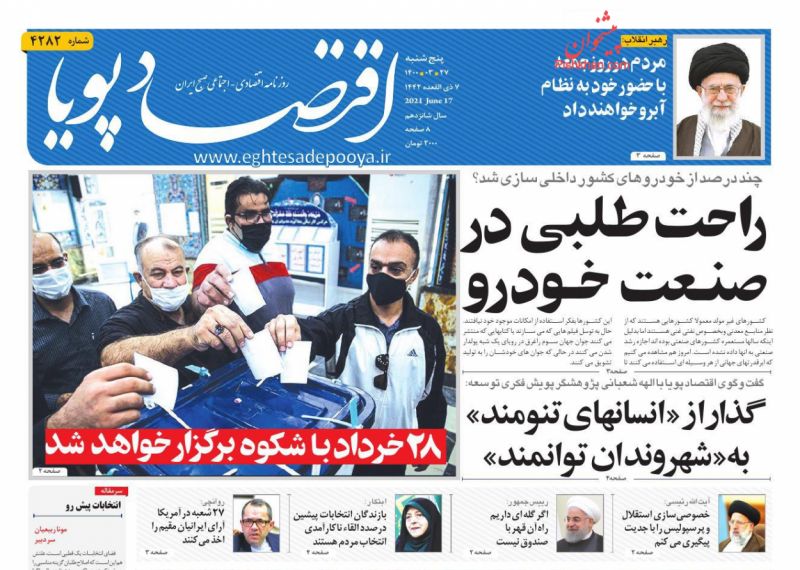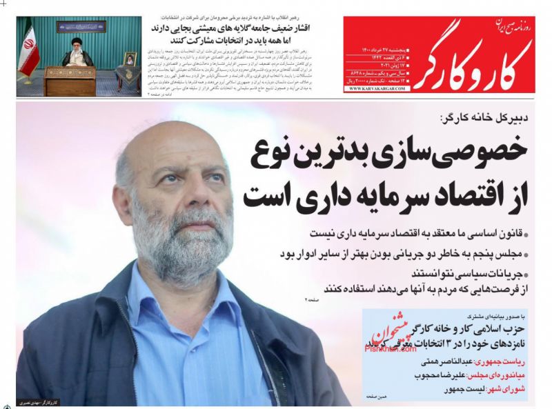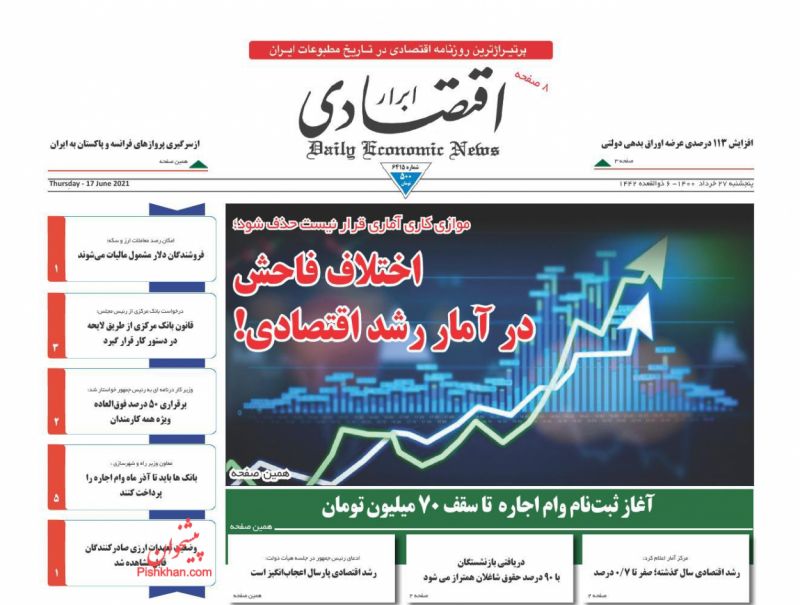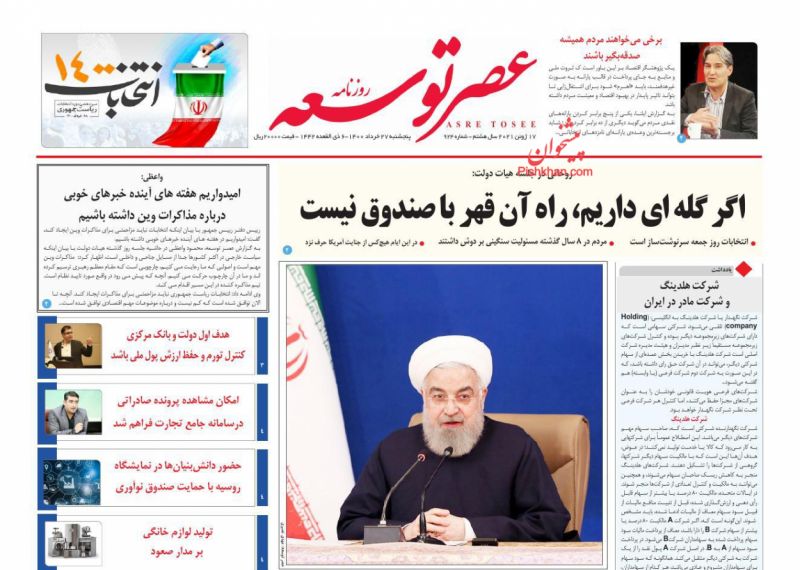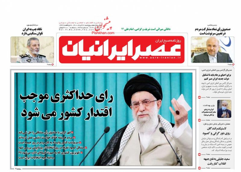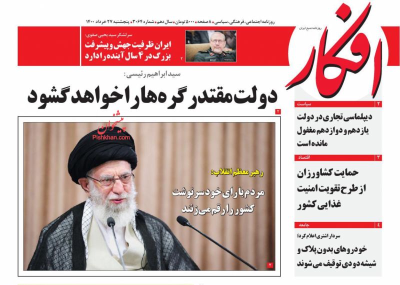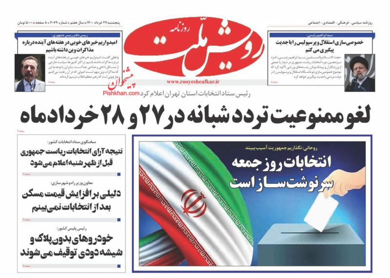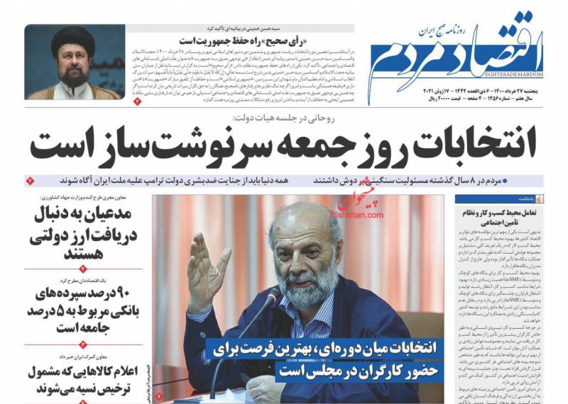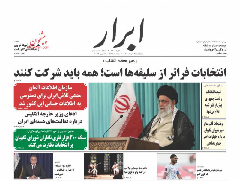 صفحه اول روزنامههای پنجشنبه ۲۷ خرداد ۱۴۰۰