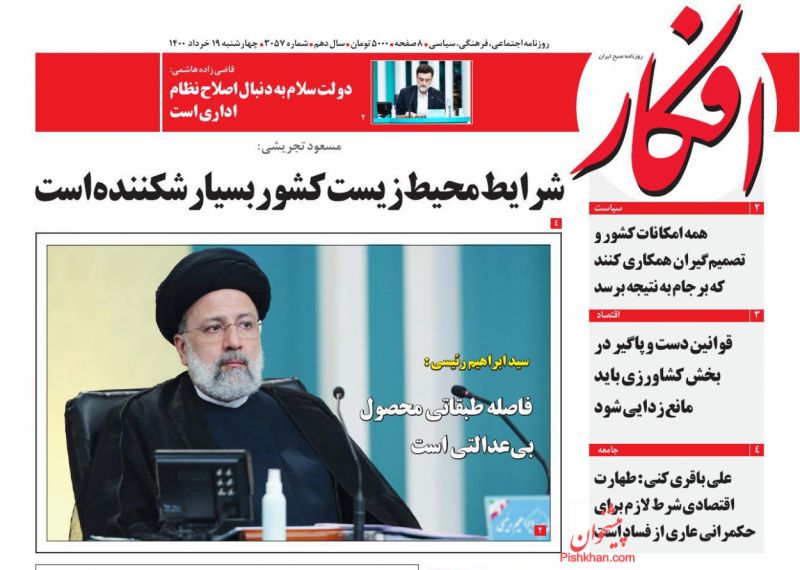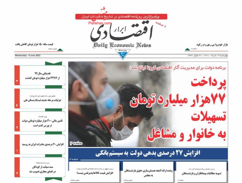 صفحه اول روزنامه‌های چهارشنبه ۱۹ خرداد ۱۴۰۰