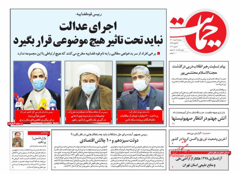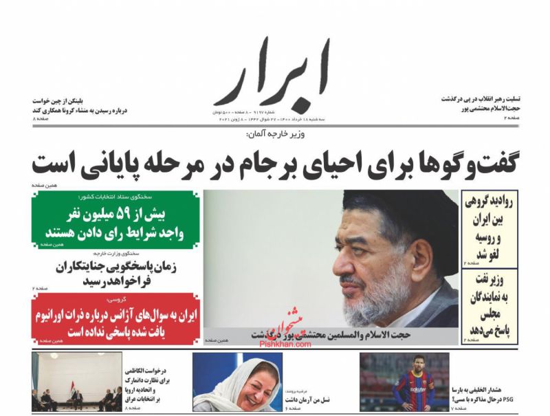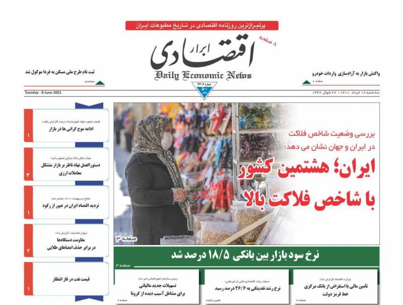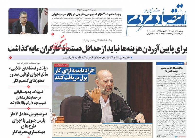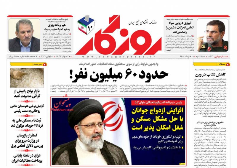 صفحه اول روزنامه های سهشنبه ۱۸ خرداد ۱۴۰۰