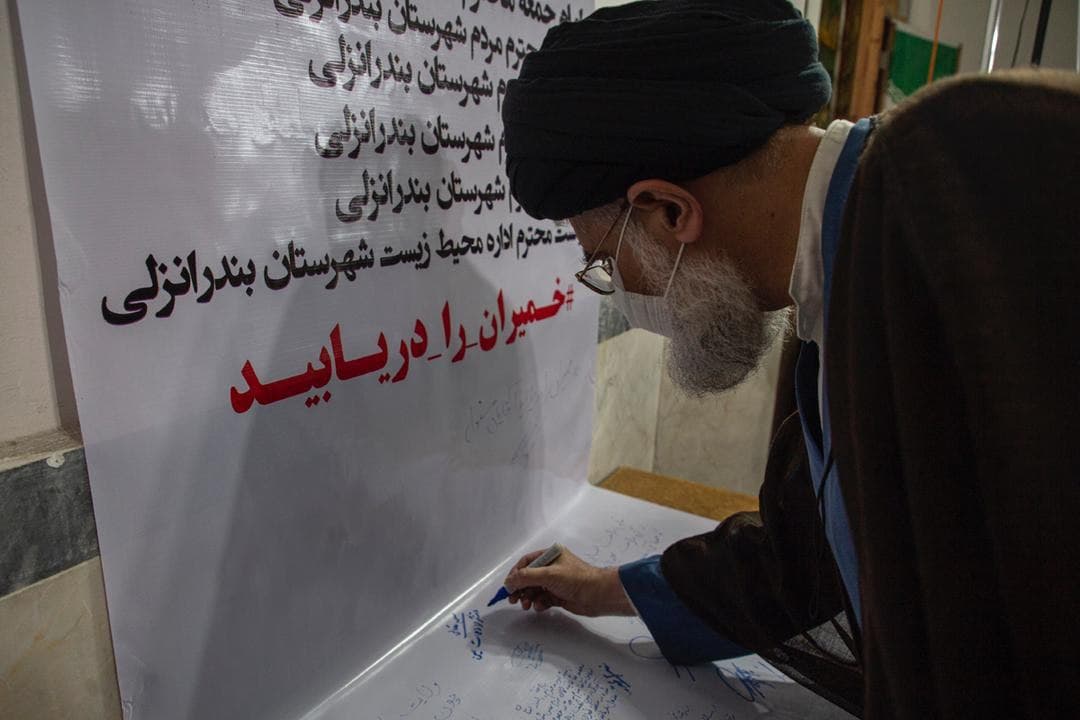 در حاشیه برگزاری نماز جمعه امروز(۲۵ تیرماه) بندرانزلی نمایشگاه عکس و فیلم خمیران را دریابید با موضوع پسماند و معضلات زیست محیطی دایر بود.