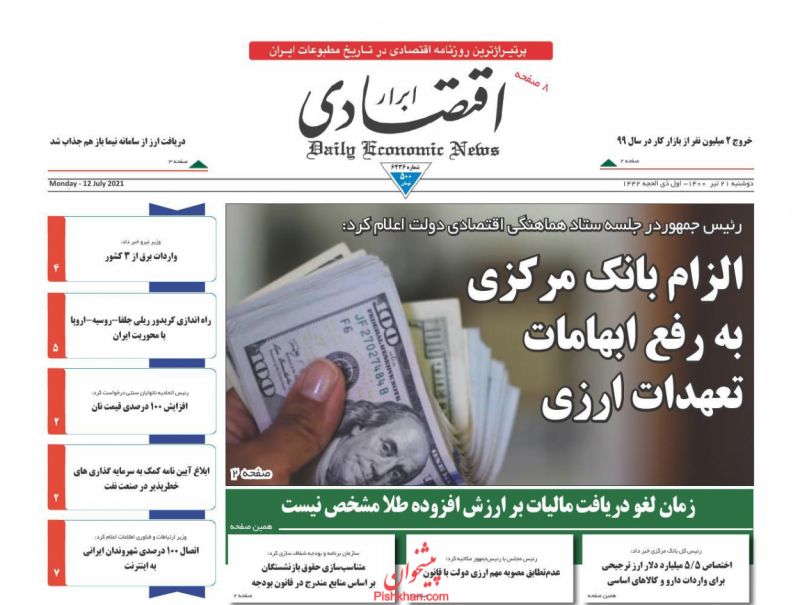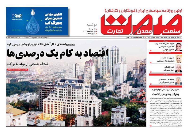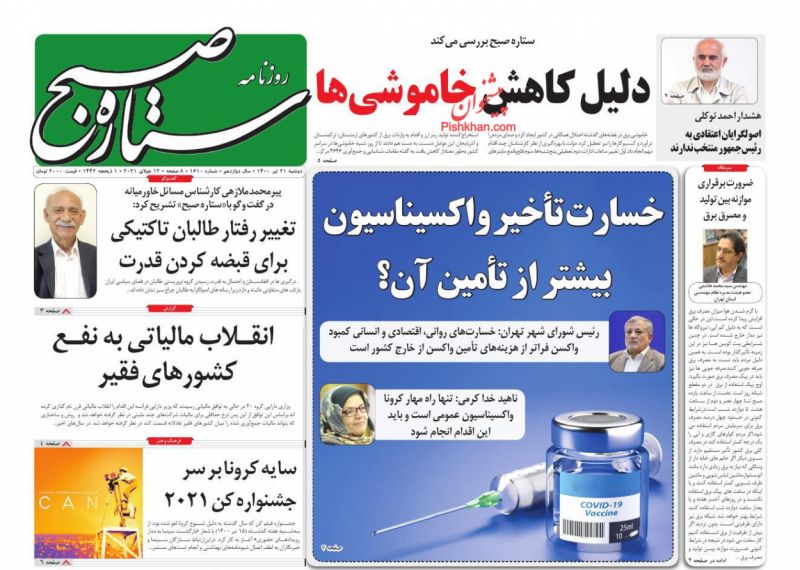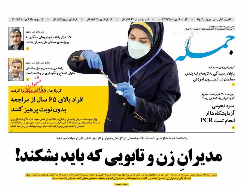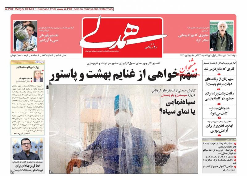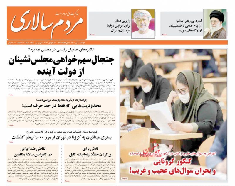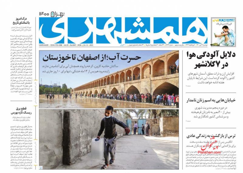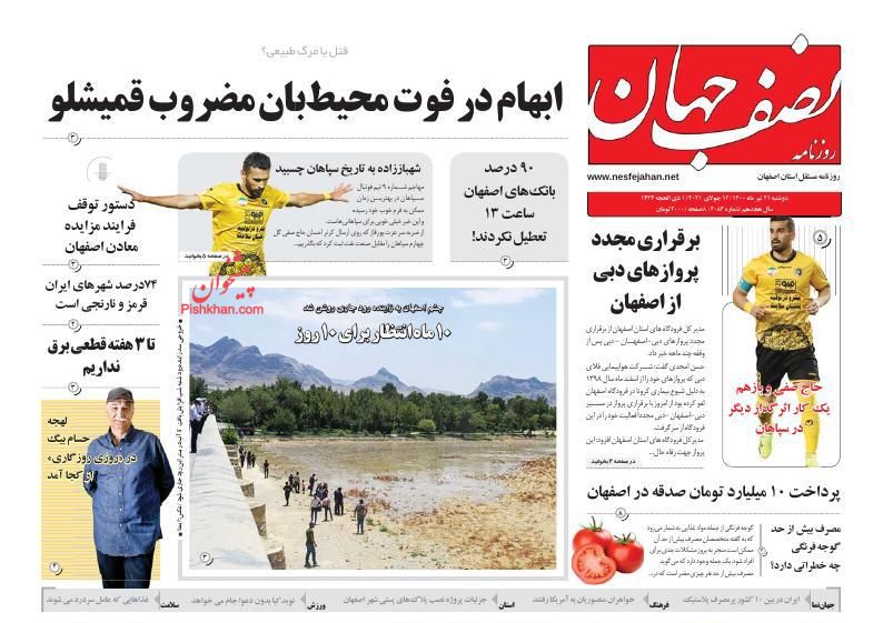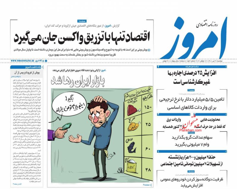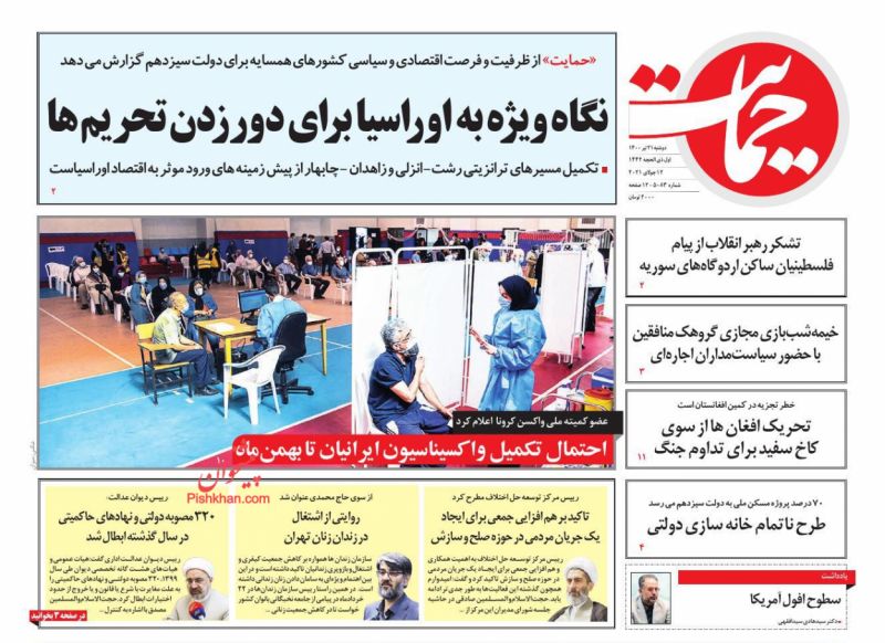 صفحه اول روزنامههای دوشنبه ۲۱ تیر ۱۴۰۰