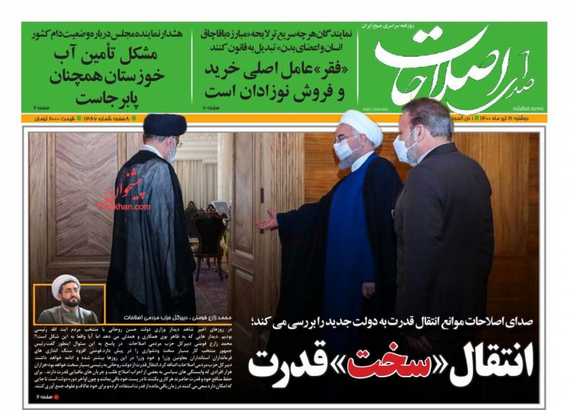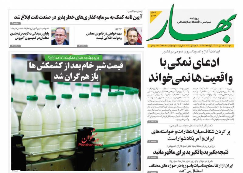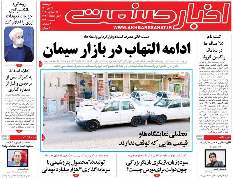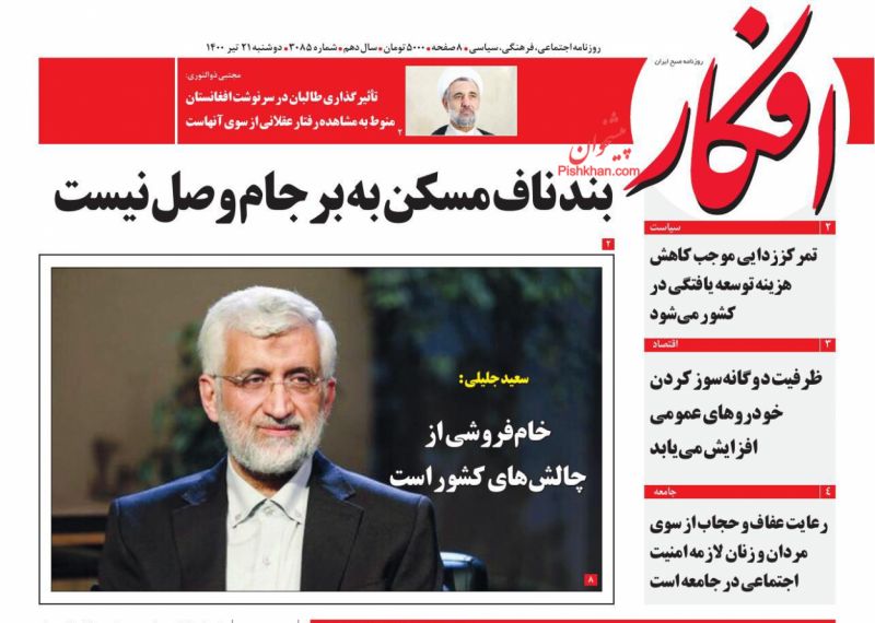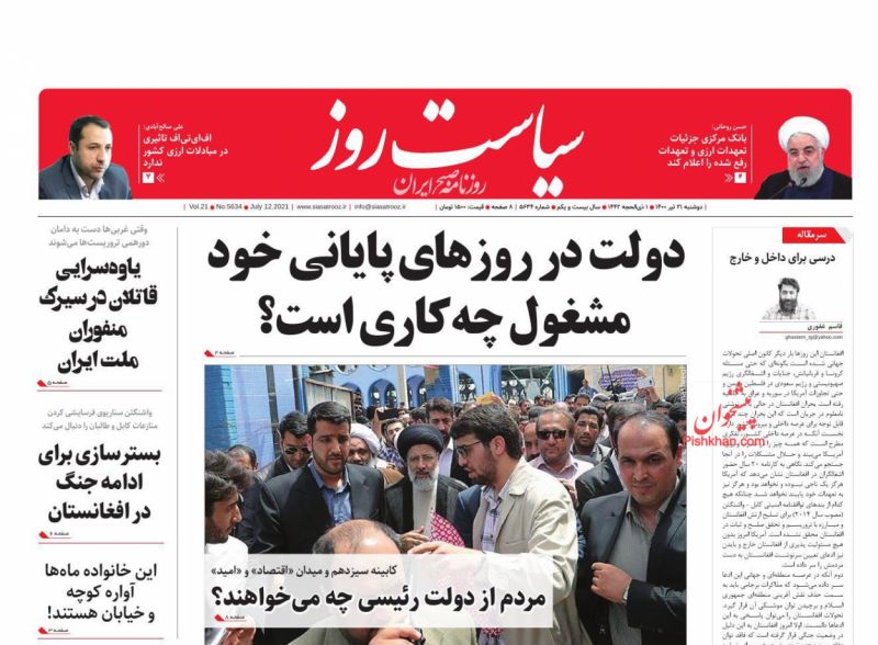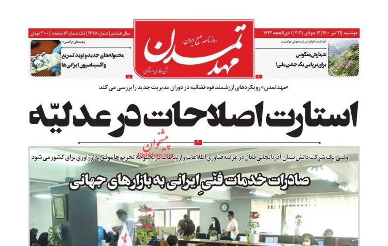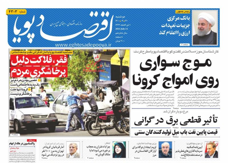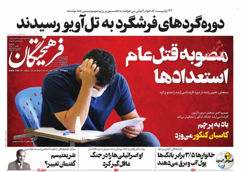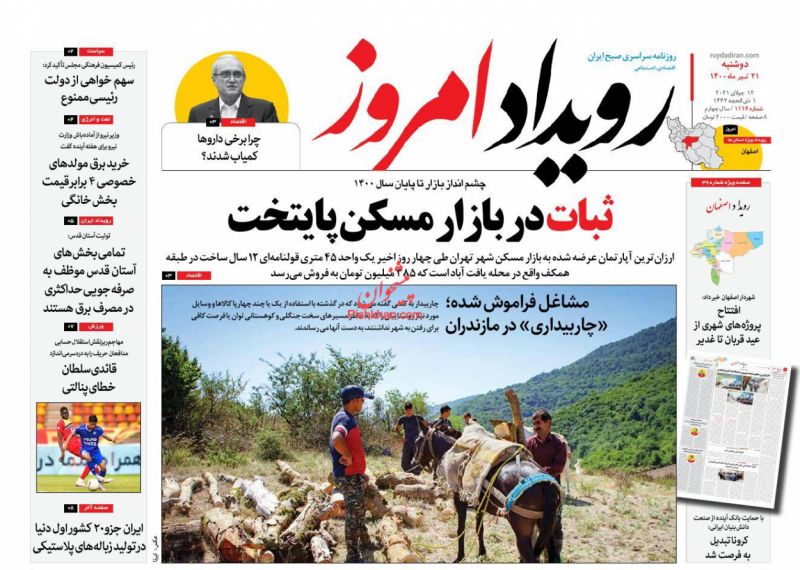 صفحه اول روزنامههای دوشنبه ۲۱ تیر ۱۴۰۰