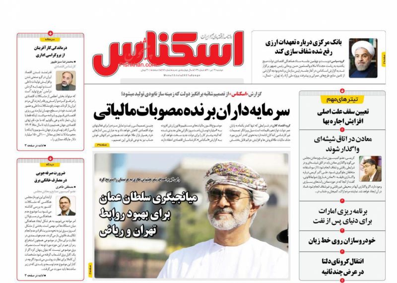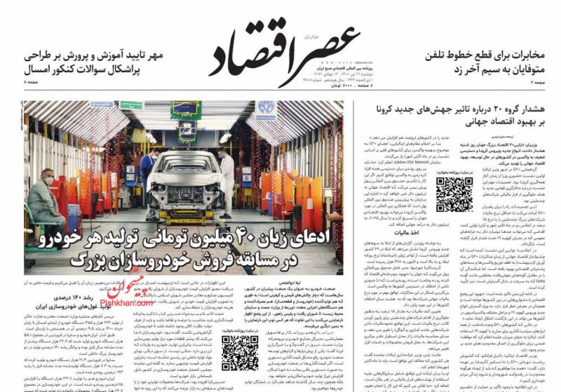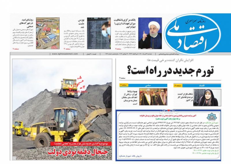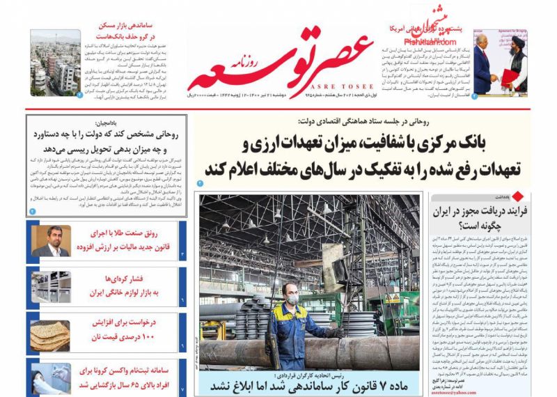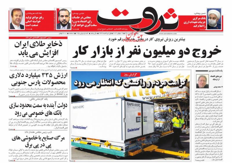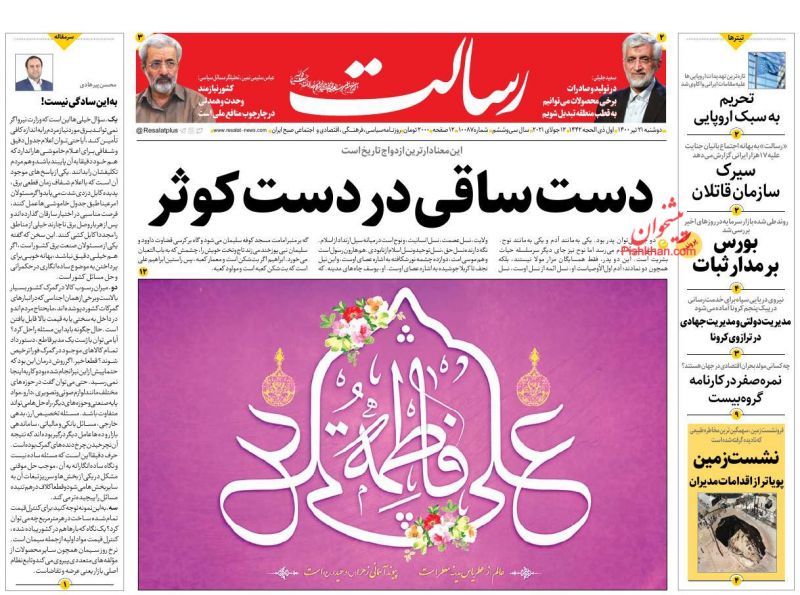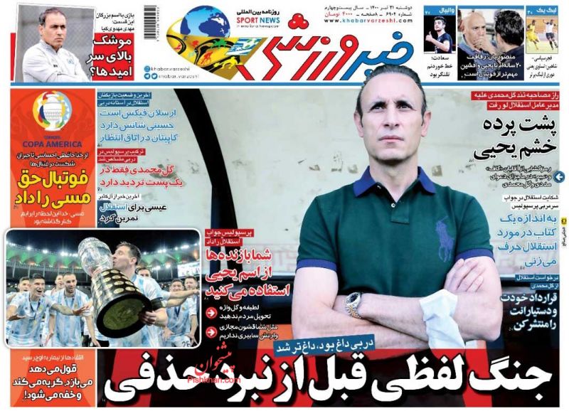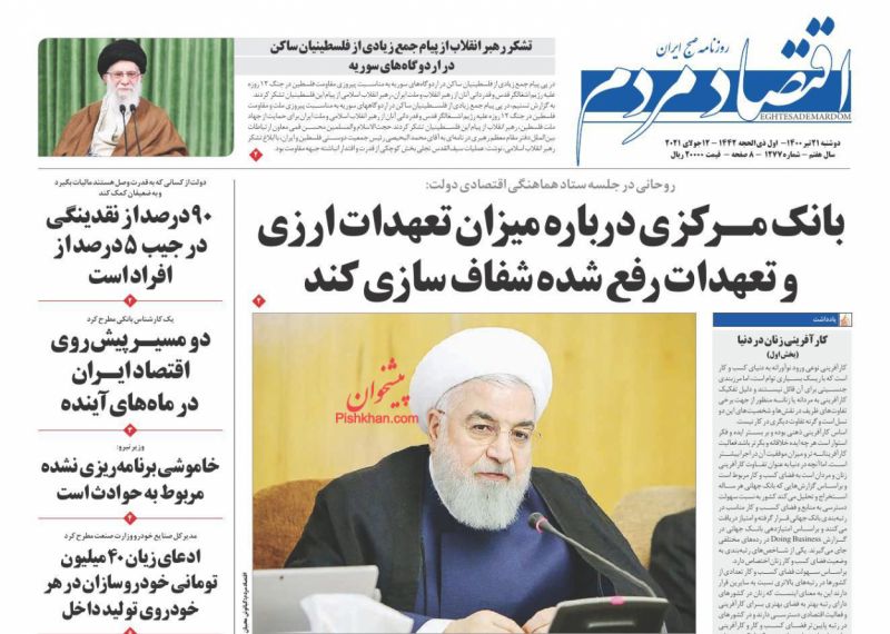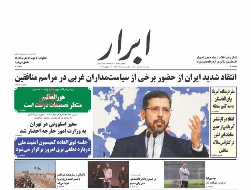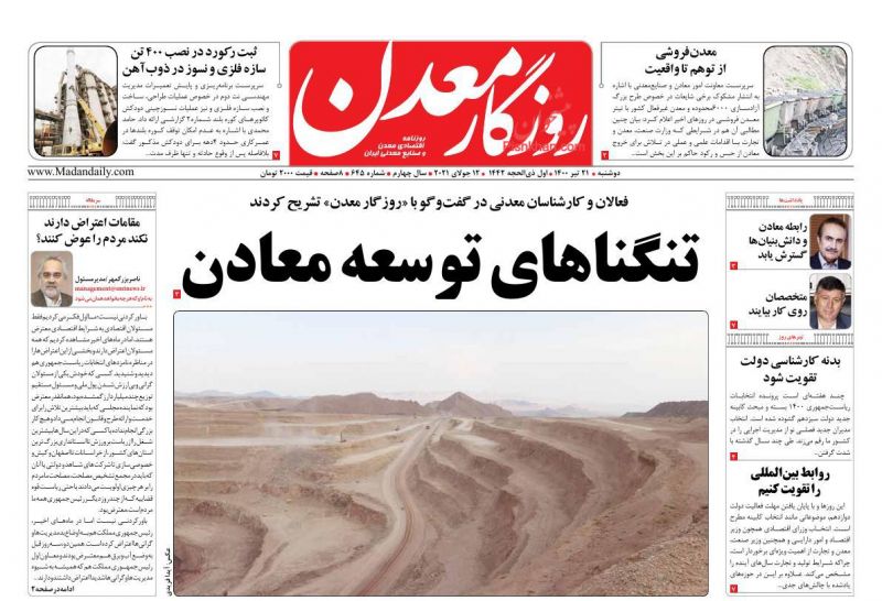 صفحه اول روزنامههای دوشنبه ۲۱ تیر ۱۴۰۰