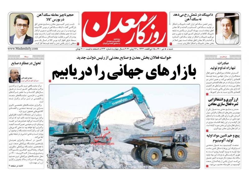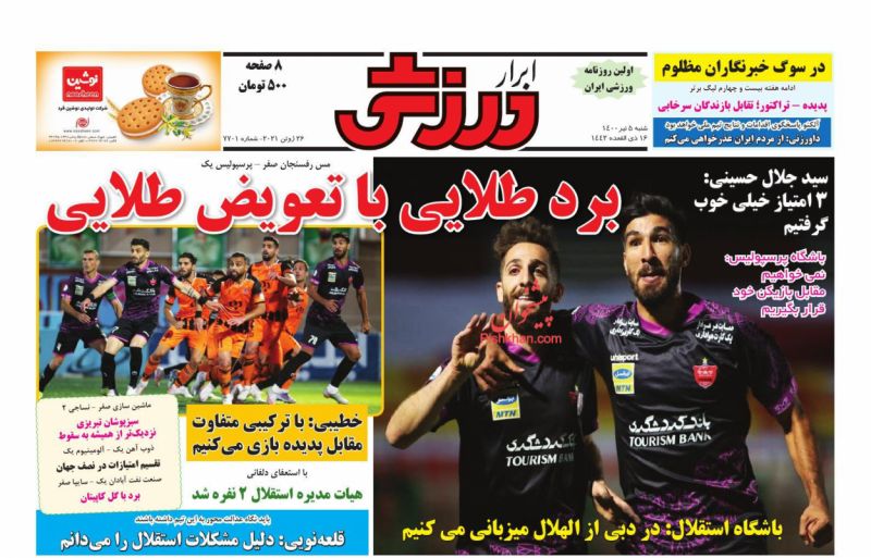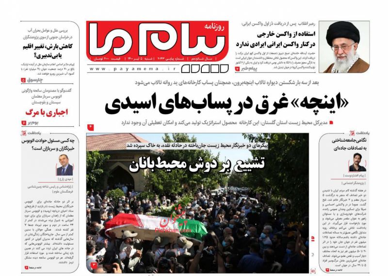 صفحه اول روزنامههای شنبه ۵ تیر ۱۴۰۰