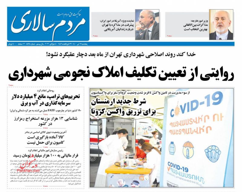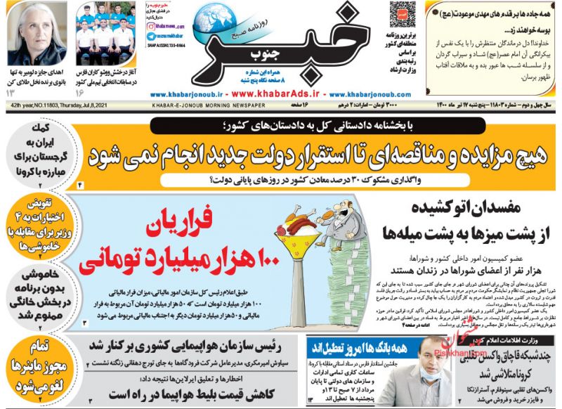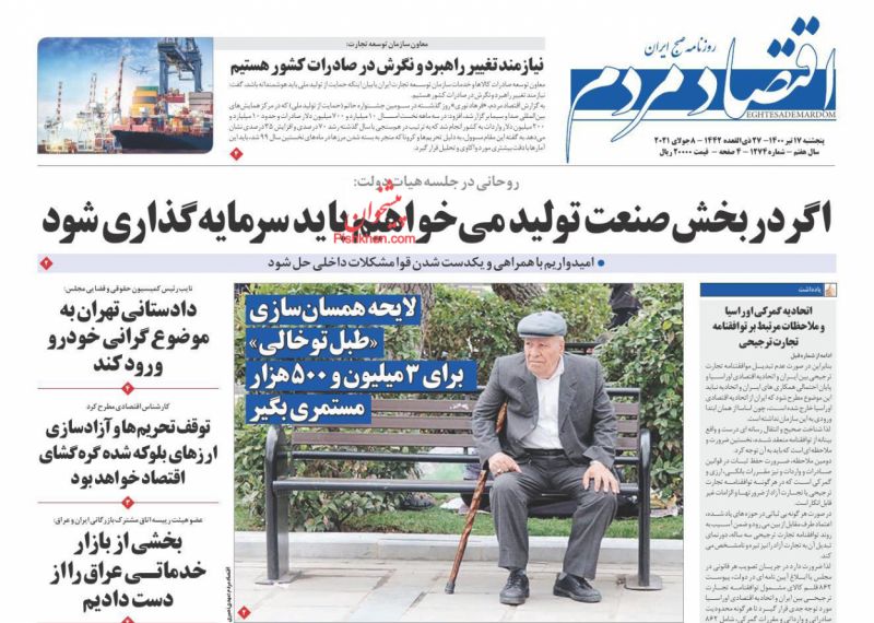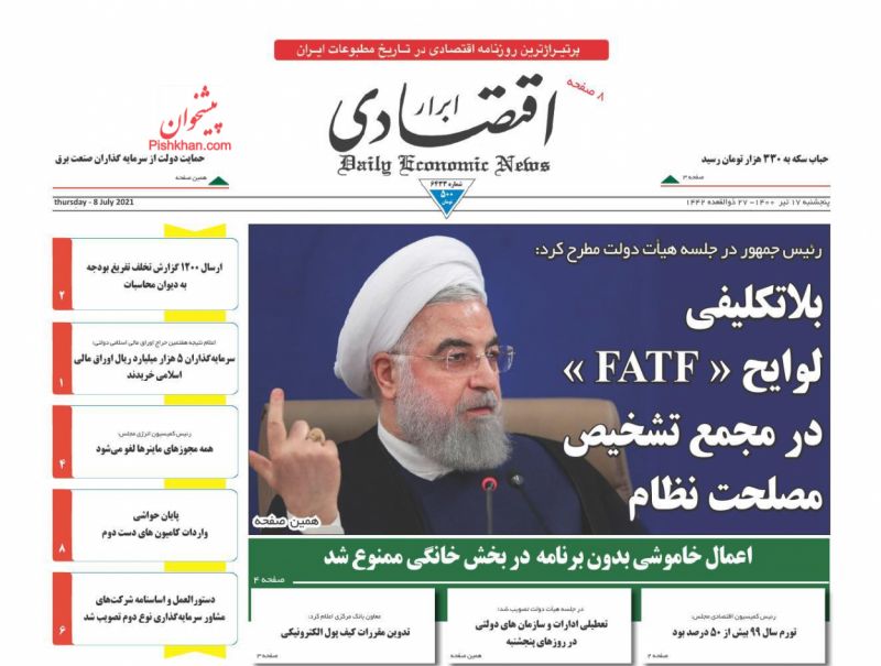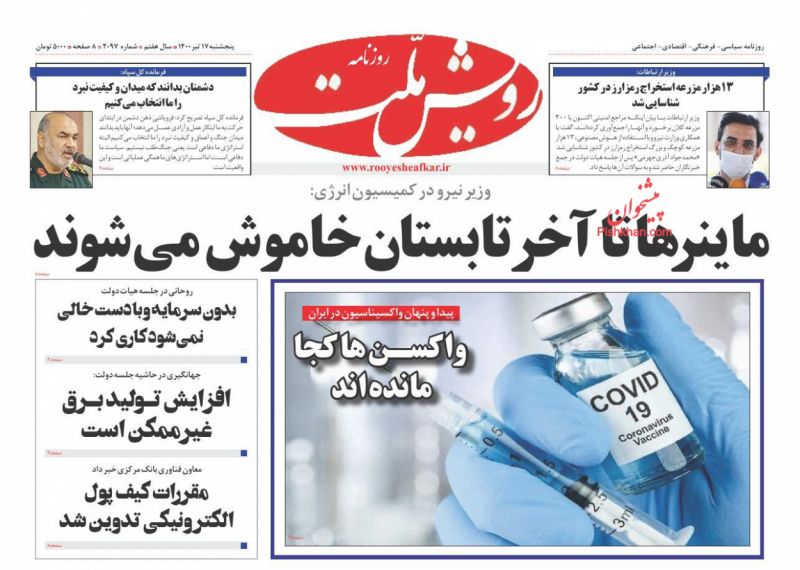 صفحه اول روزنامههای پنجشنبه ۱۷ تیر ۱۴۰۰