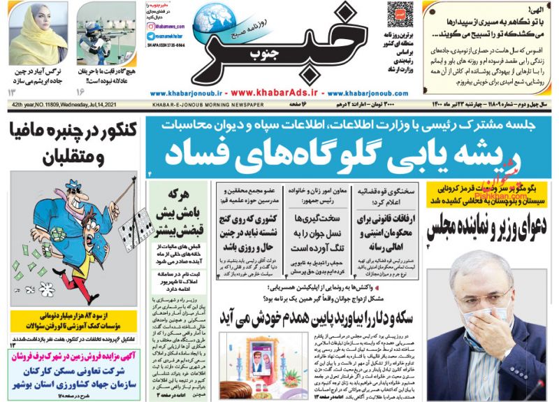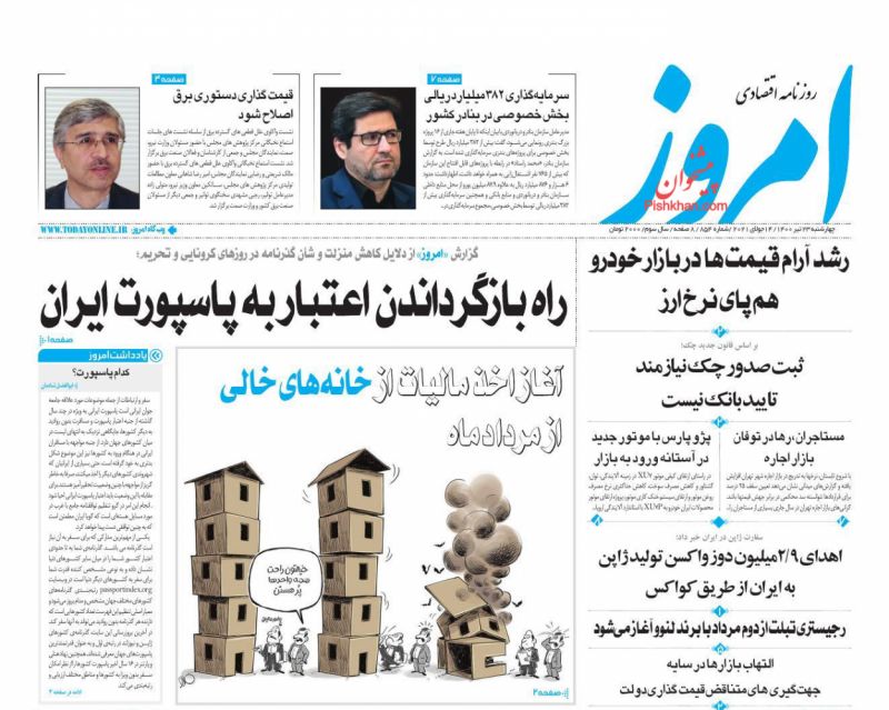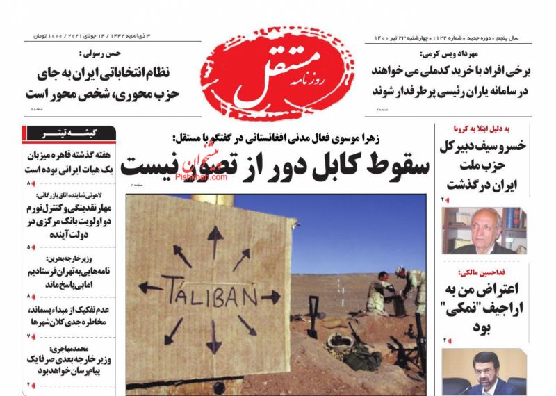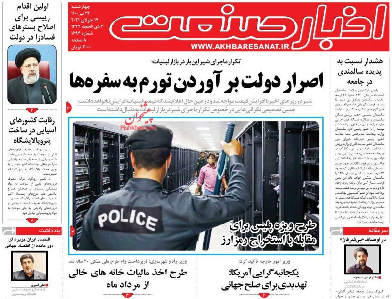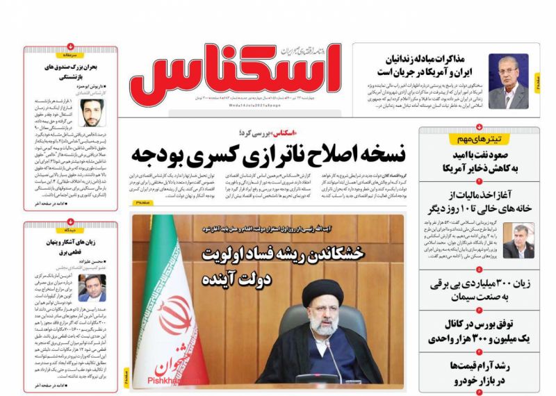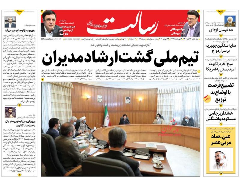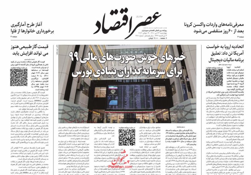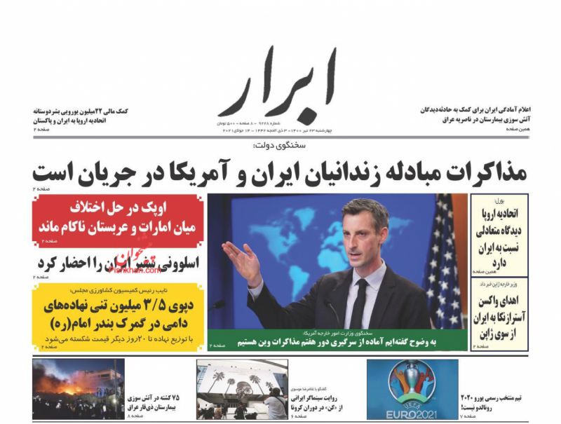 صفحه اول روزنامه‌های چهارشنبه ۲۳ تیر ۱۴۰۰