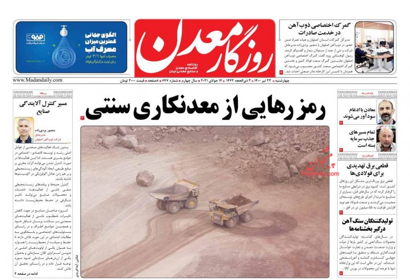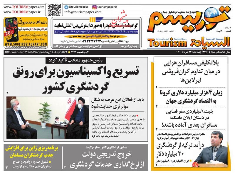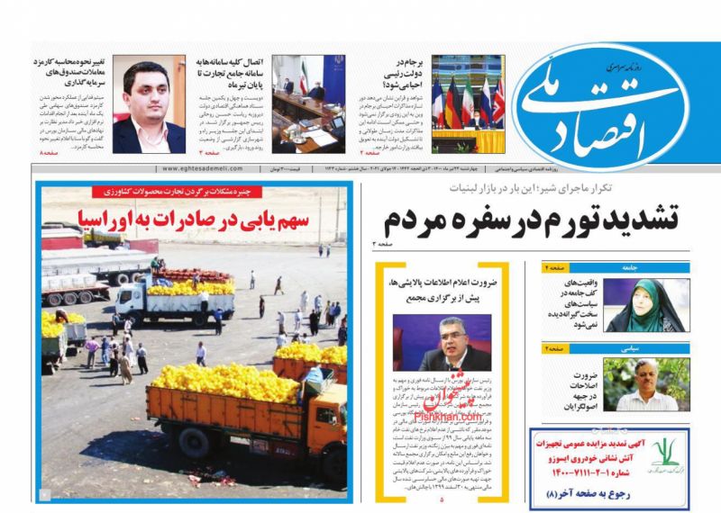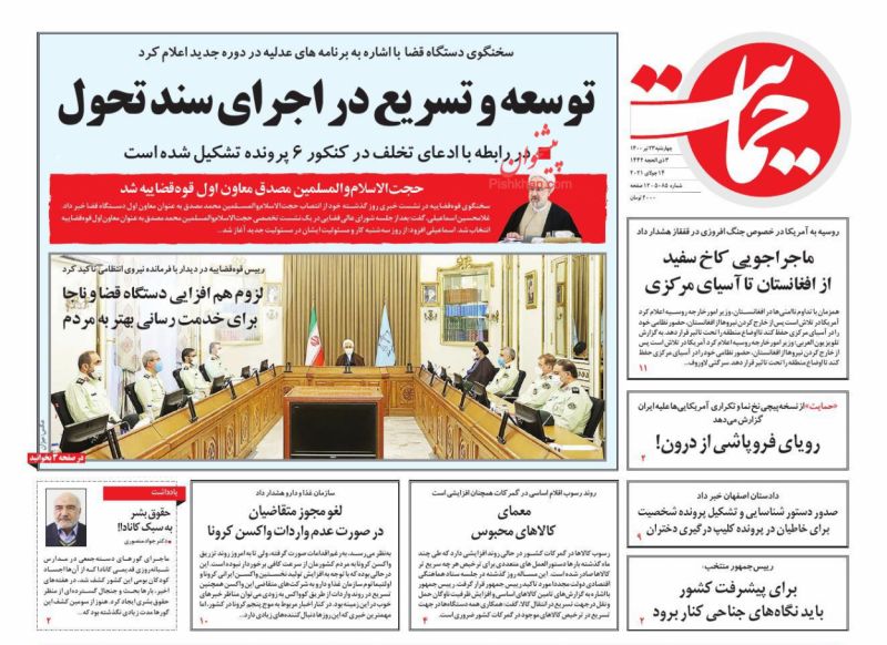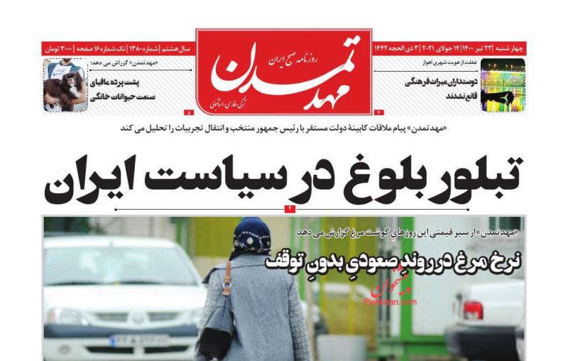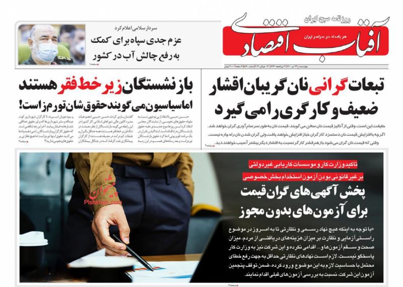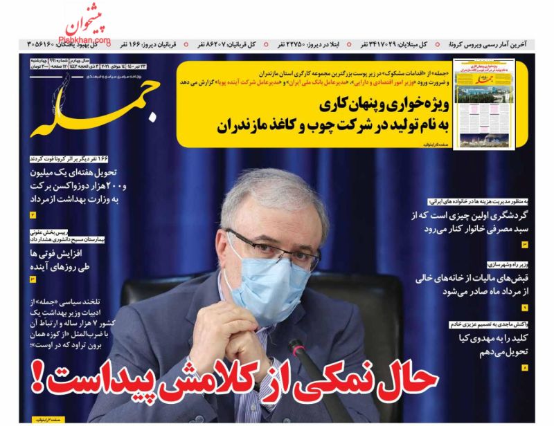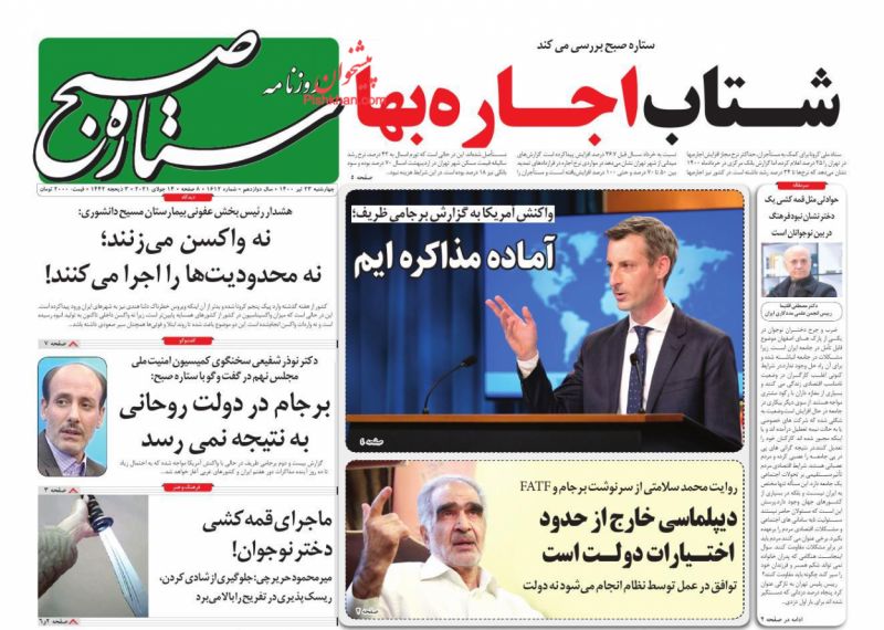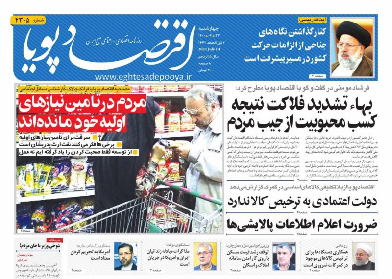 صفحه اول روزنامه‌های چهارشنبه ۲۳ تیر ۱۴۰۰