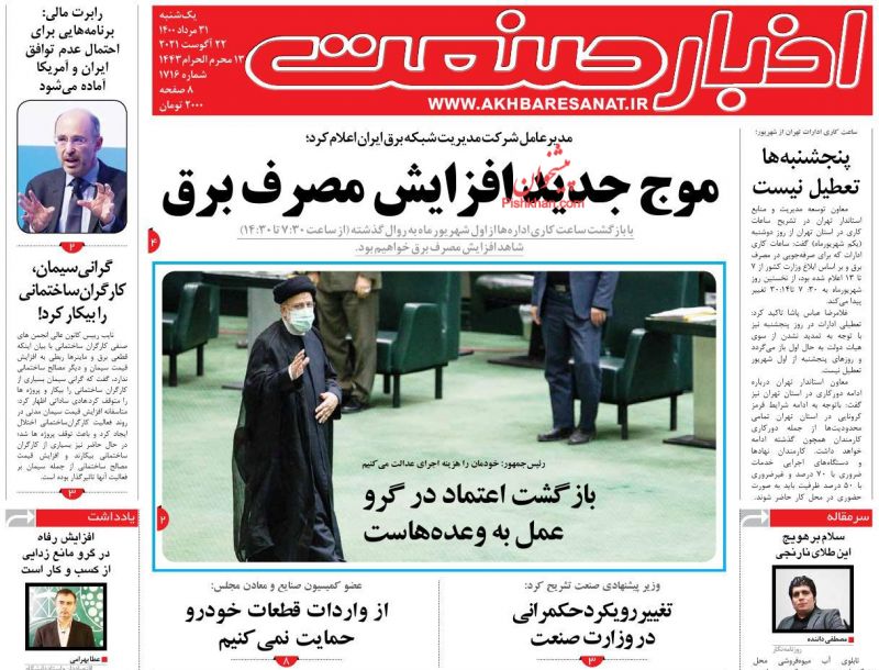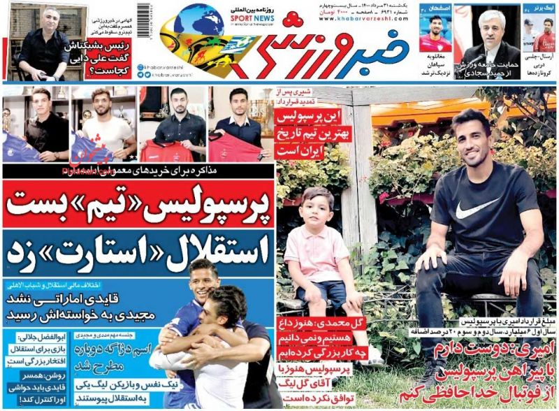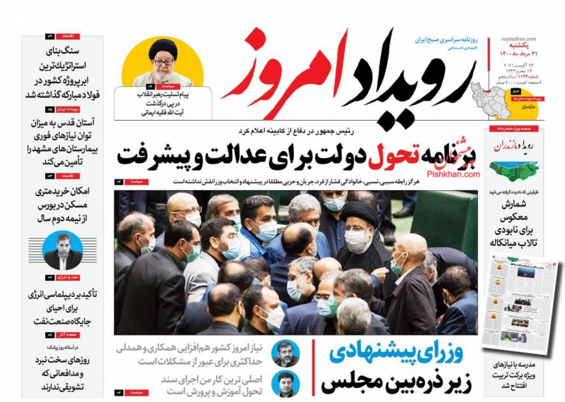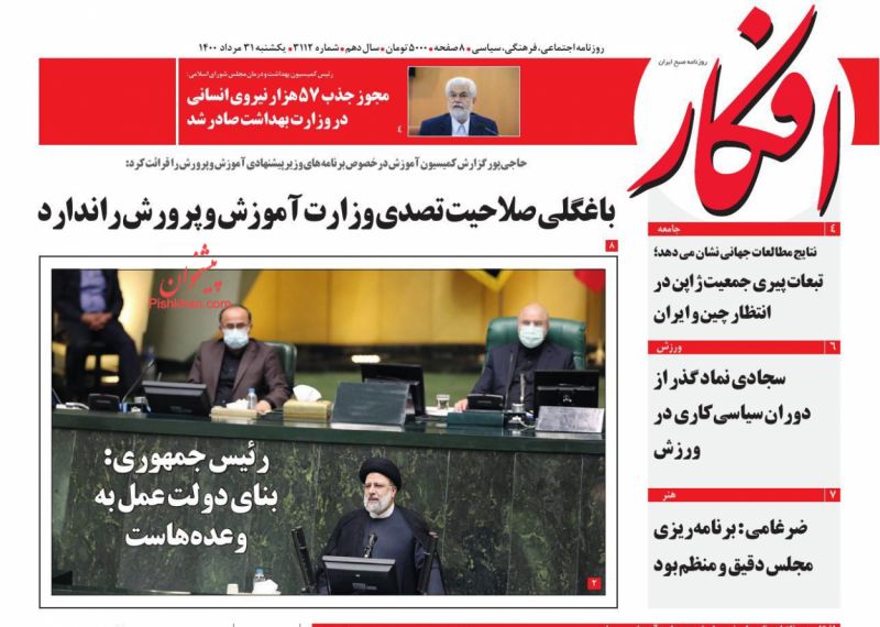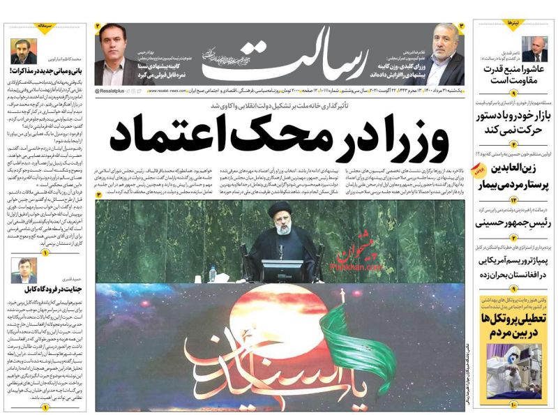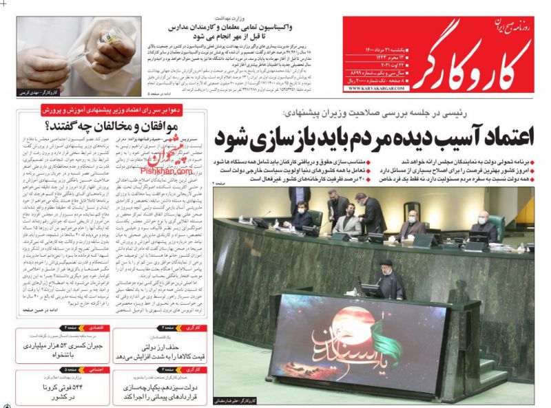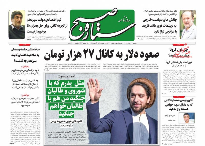 صفحه اول روزنامههای یکشنبه ۳۱ مرداد ۱۴۰۰