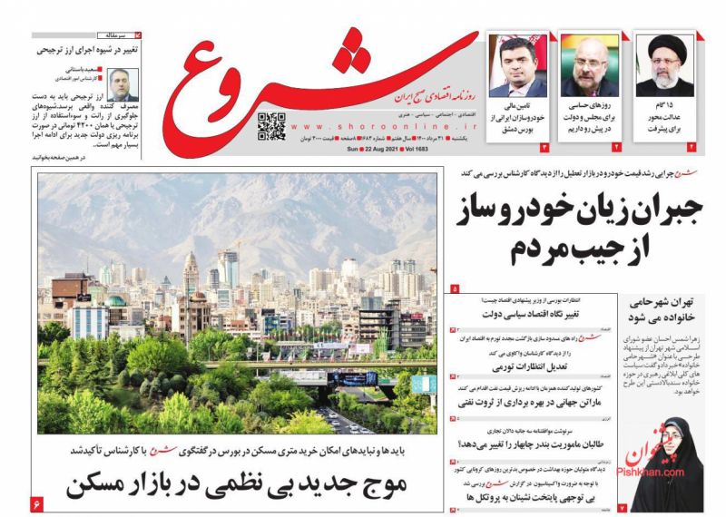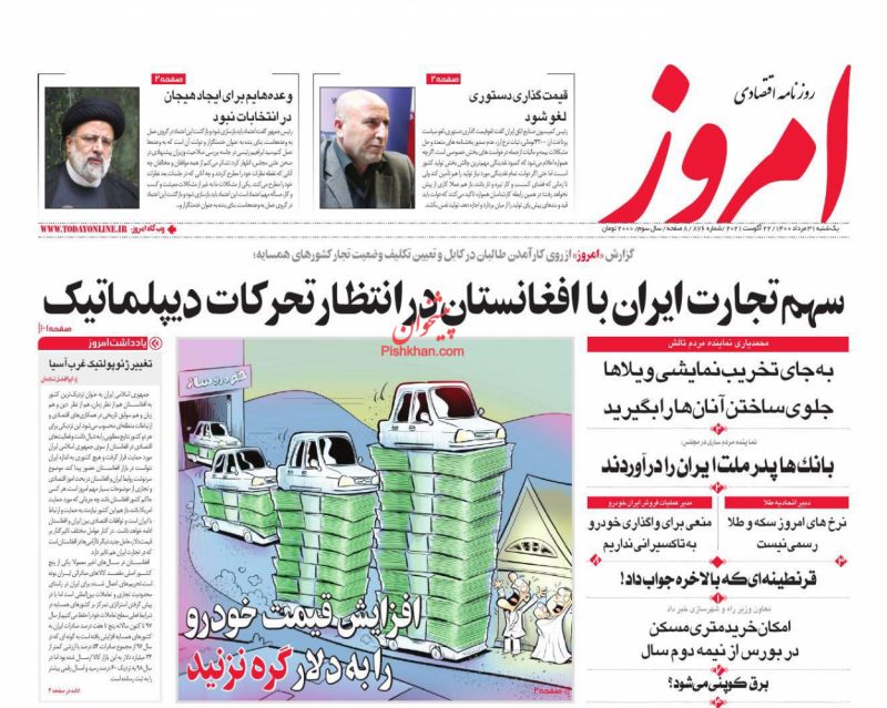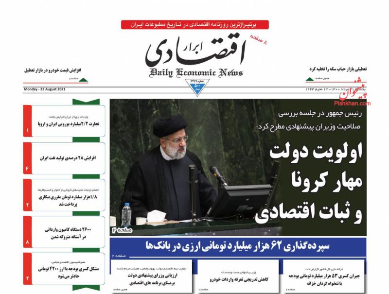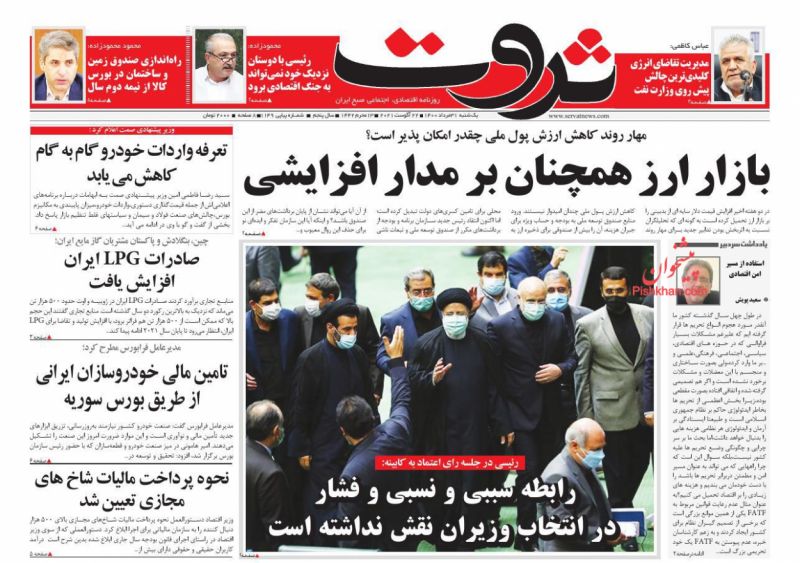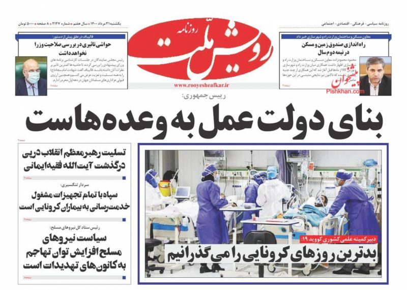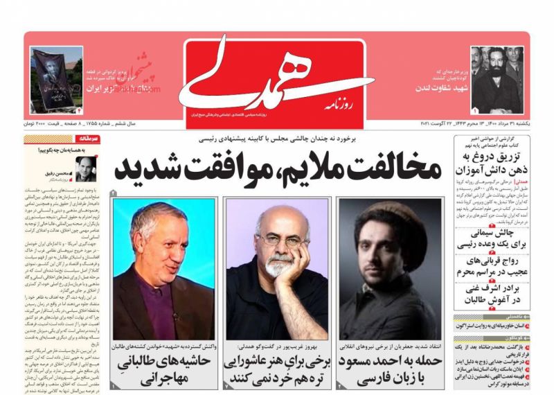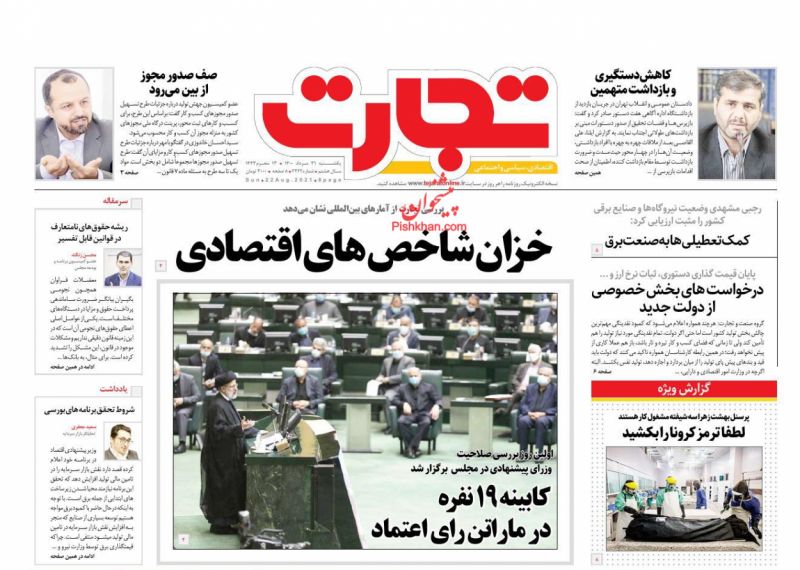 صفحه اول روزنامههای یکشنبه ۳۱ مرداد ۱۴۰۰