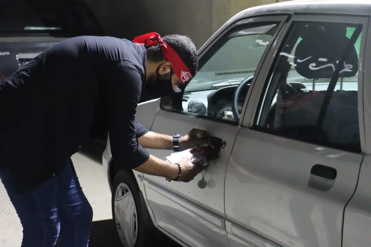 هدایای گروه نفحات در شیوهای متفاوت به دستگیره درب خودروی عزاداران حاضر در تعدادی از هیئتهای رشت چسبانده شد که افراد هنگام سوار شدن به خودرو با این هدیه و شگفتانه متبرک مواجه میشدند.