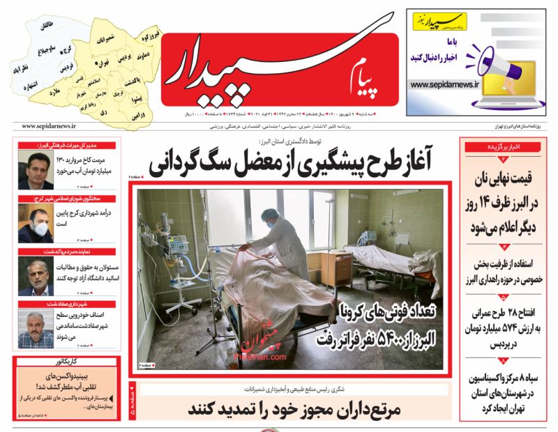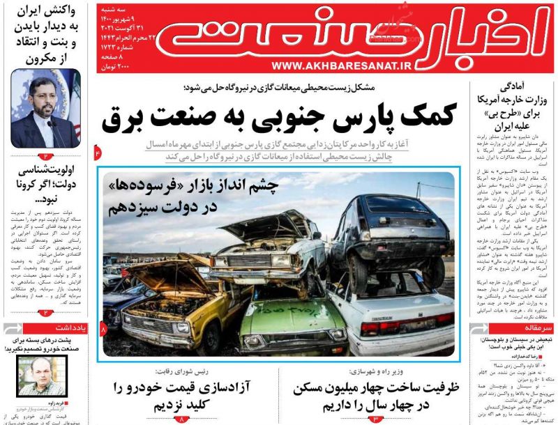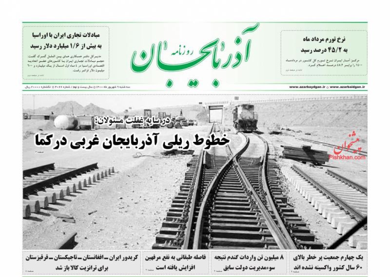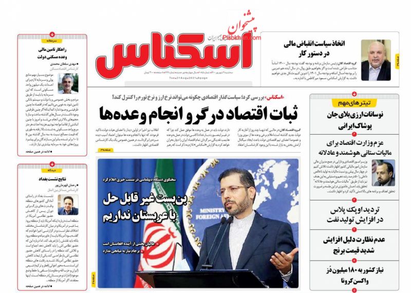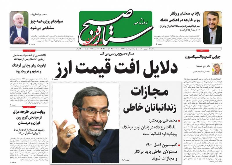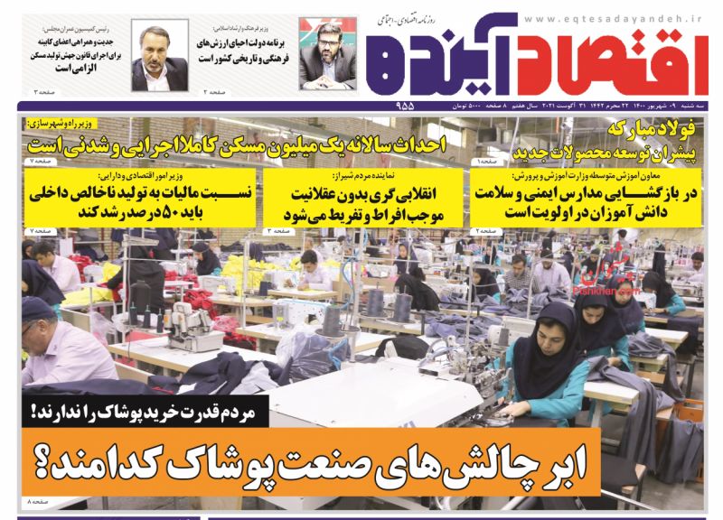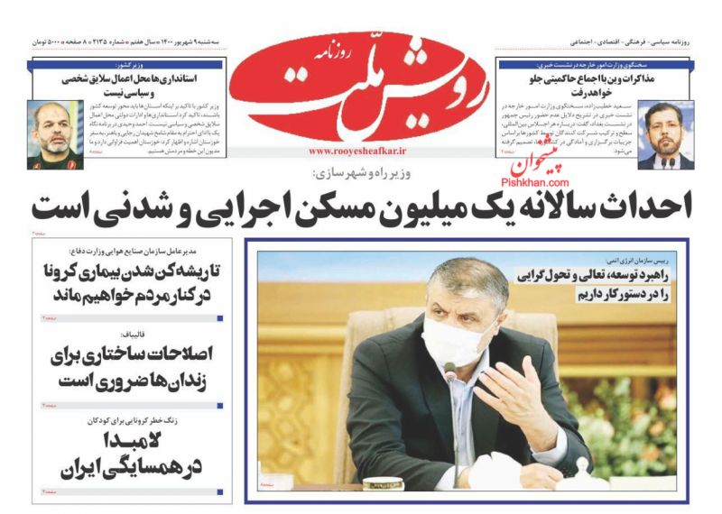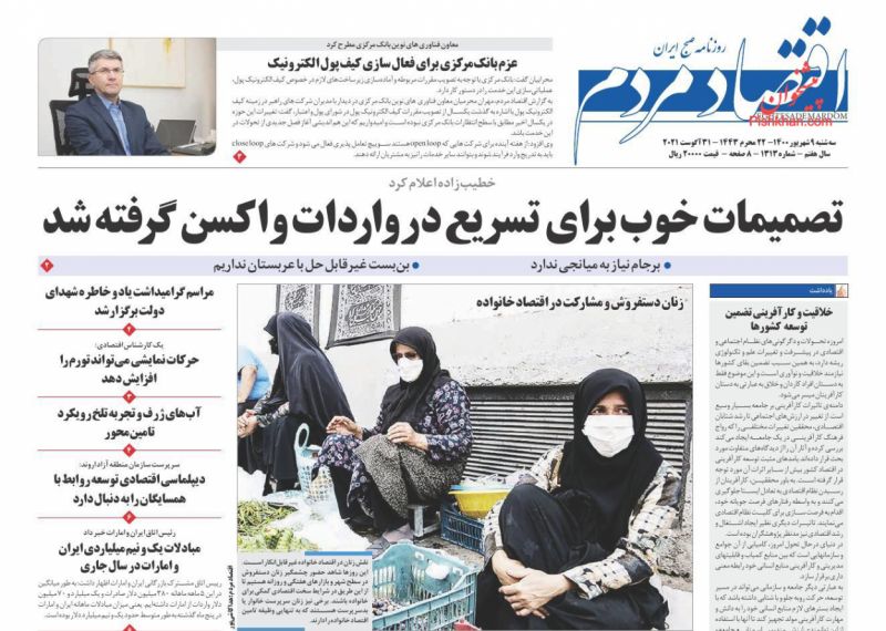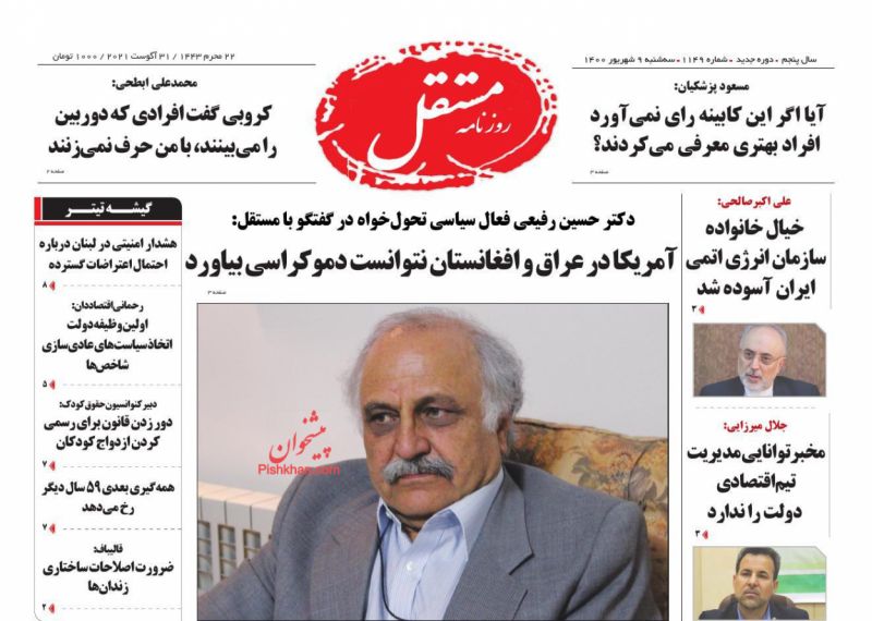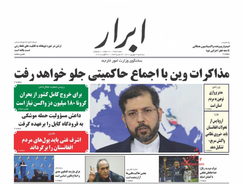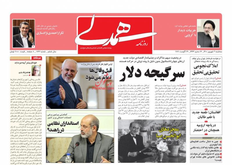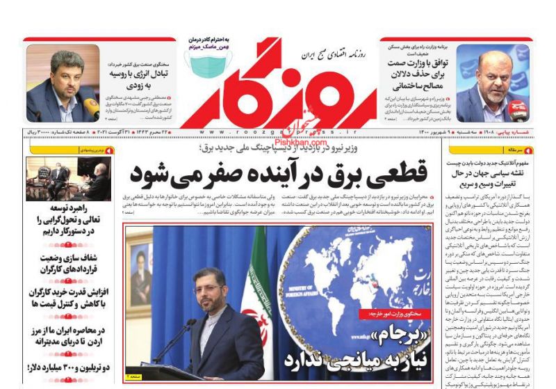 صفحه اول روزنامههای سهشنبه ۹ شهریور ۱۴۰۰