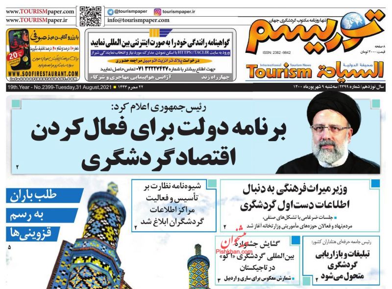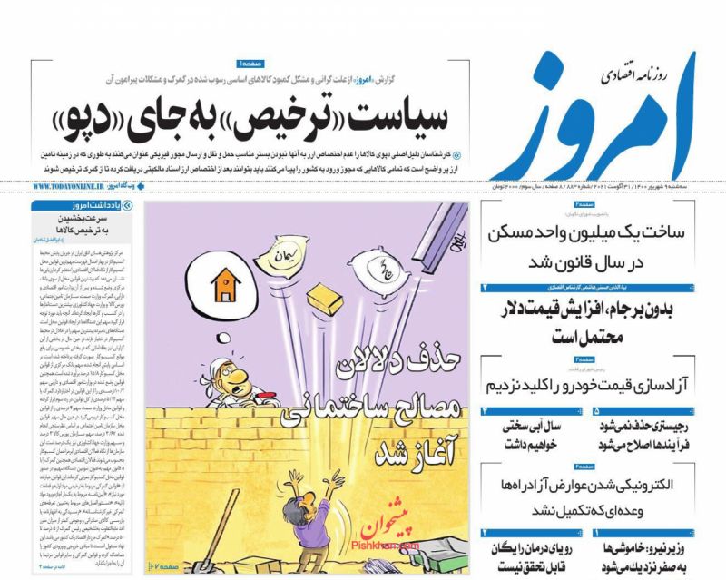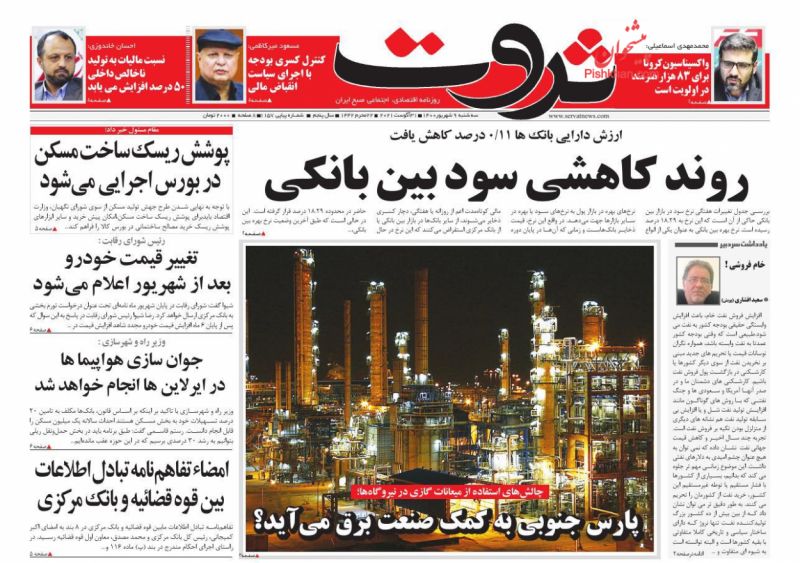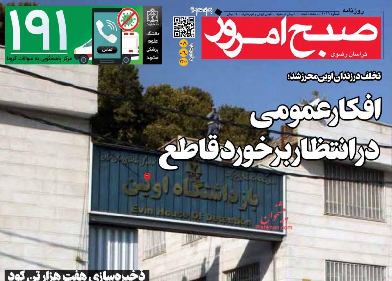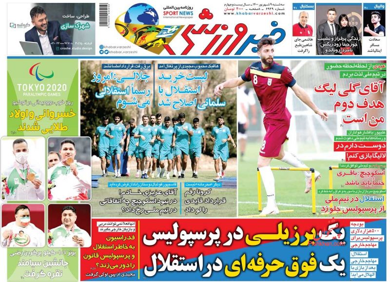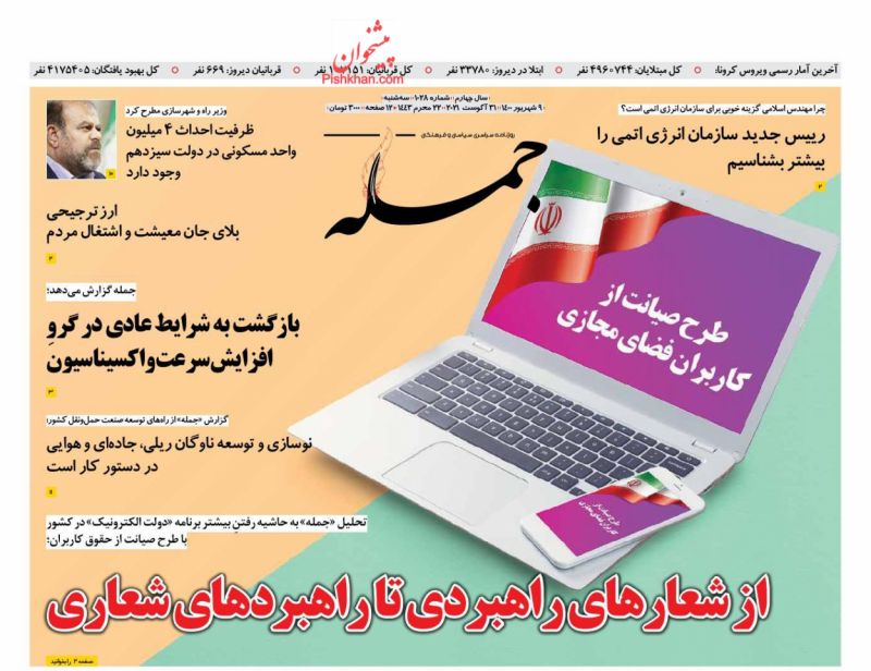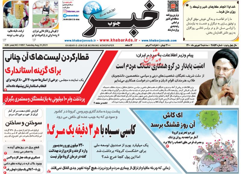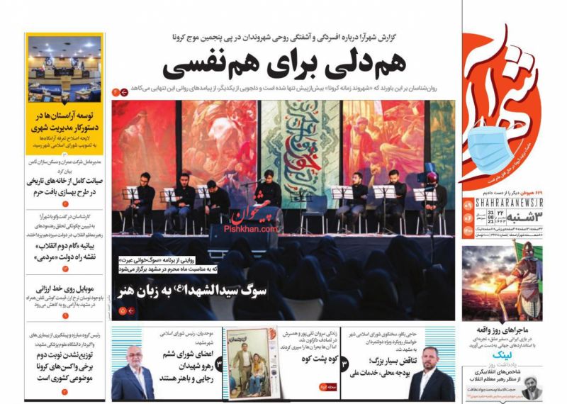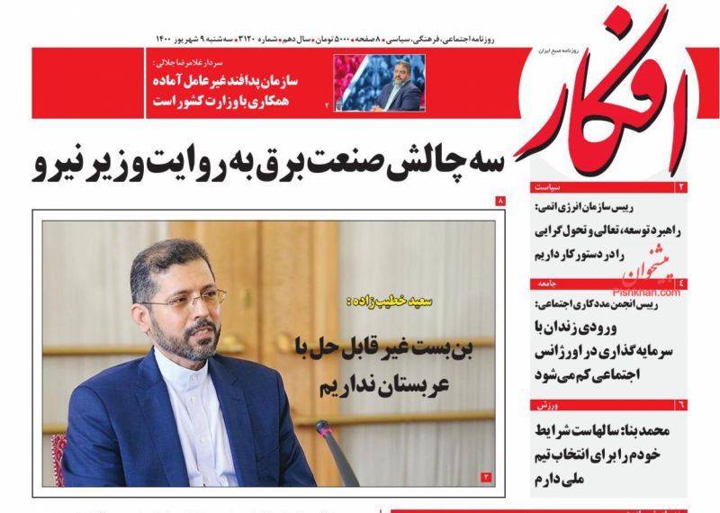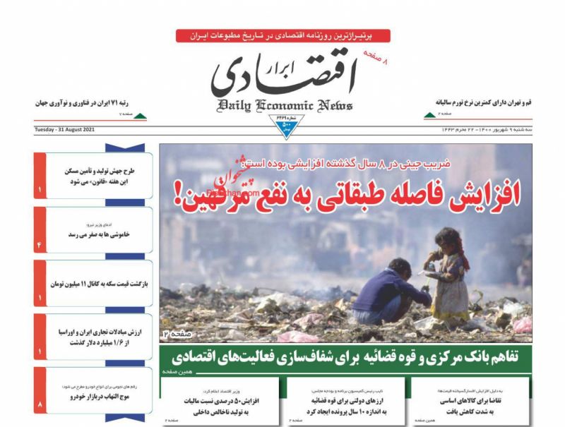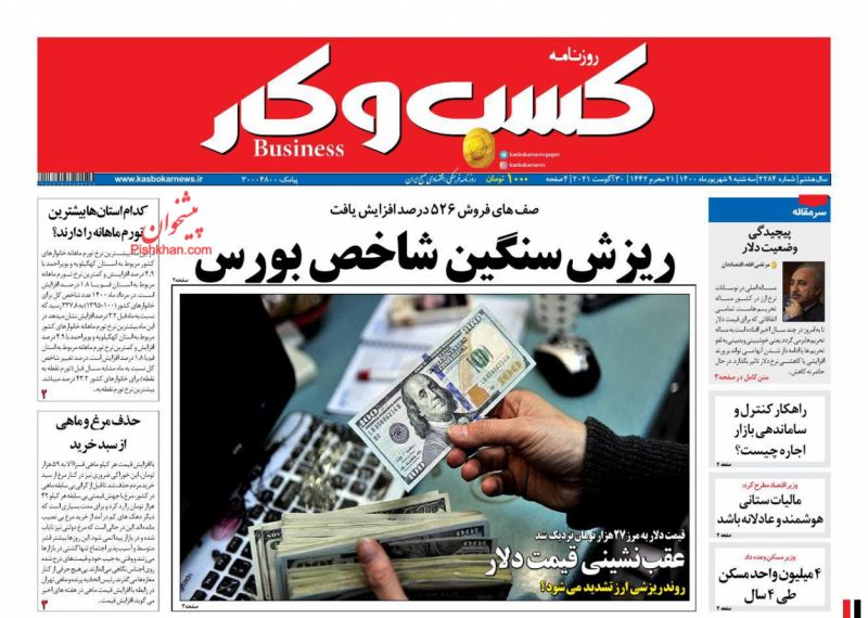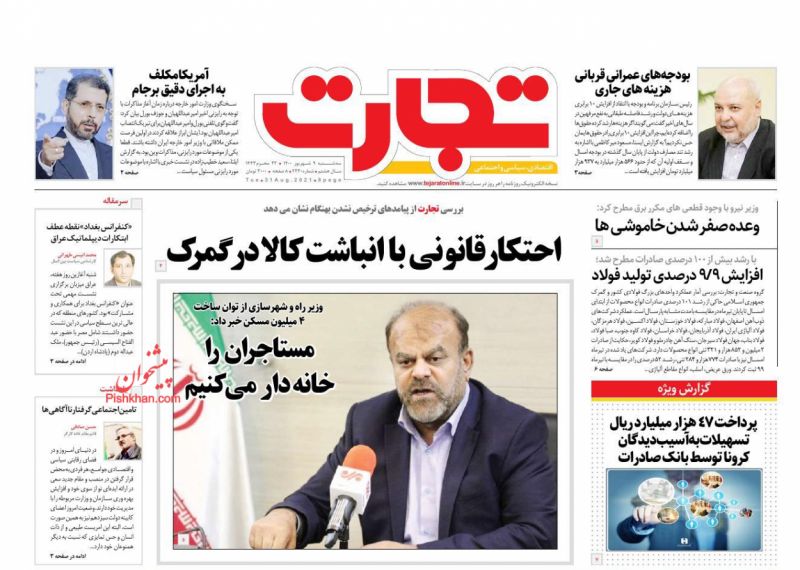 صفحه اول روزنامههای سهشنبه ۹ شهریور ۱۴۰۰