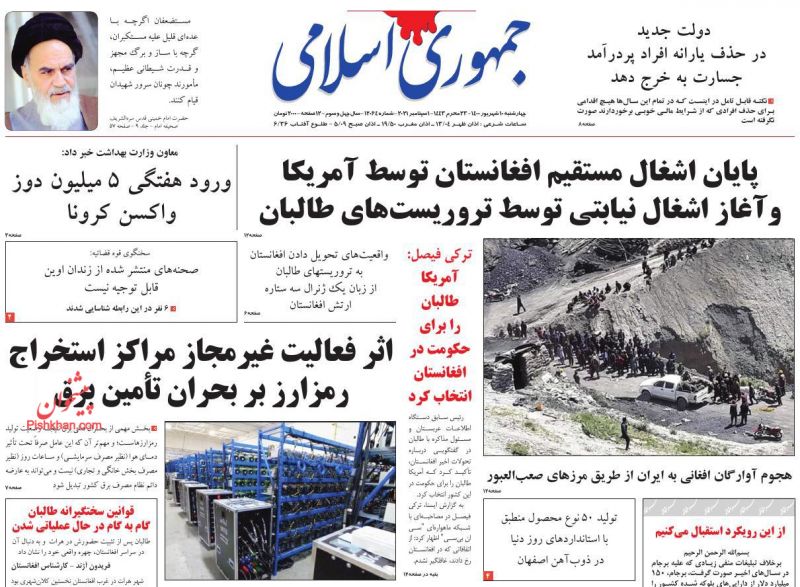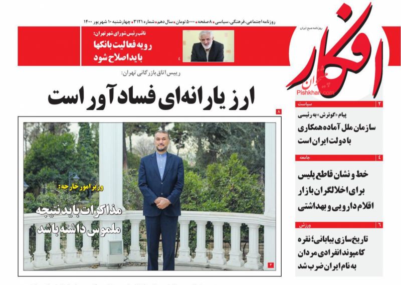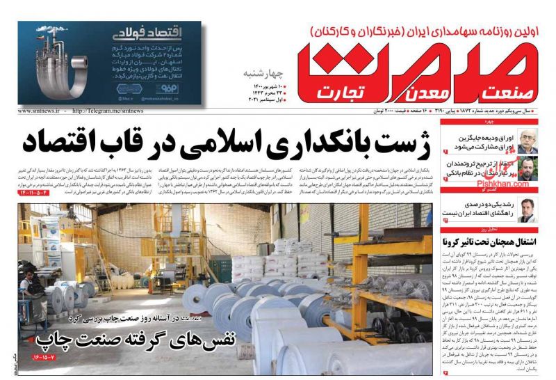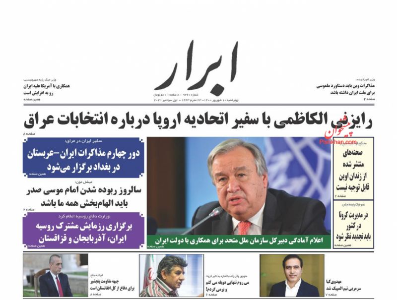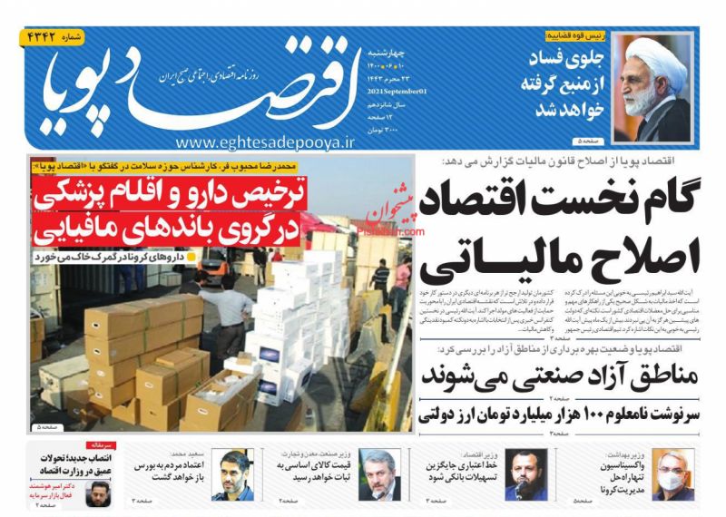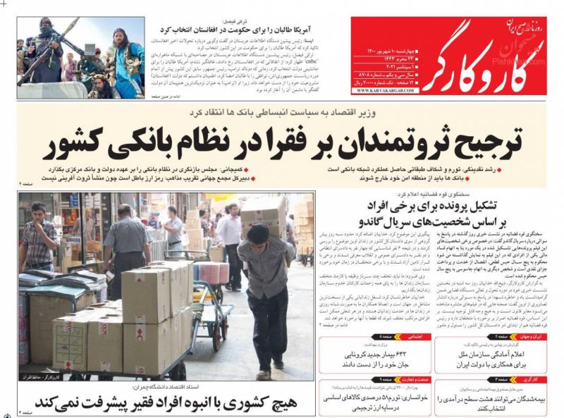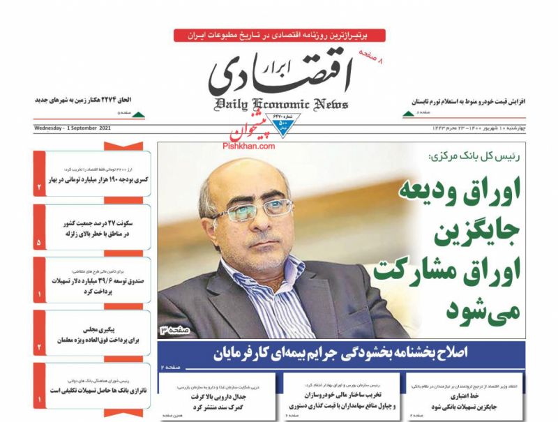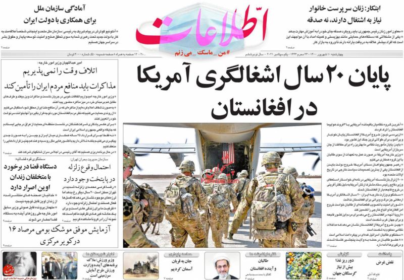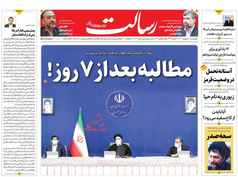 صفحه اول روزنامههای چهارشنبه ۱۰ شهریور ۱۴۰۰