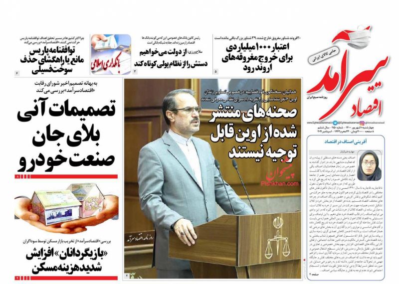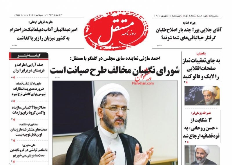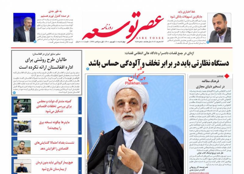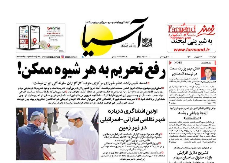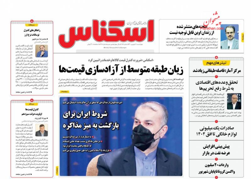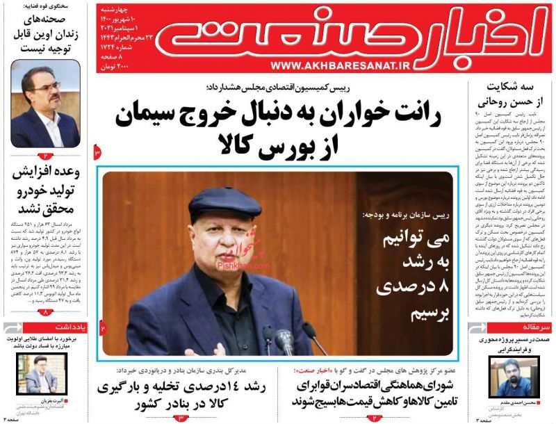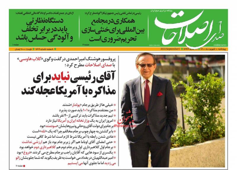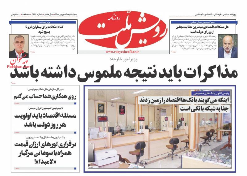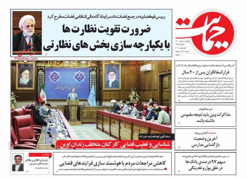 صفحه اول روزنامههای چهارشنبه ۱۰ شهریور ۱۴۰۰
