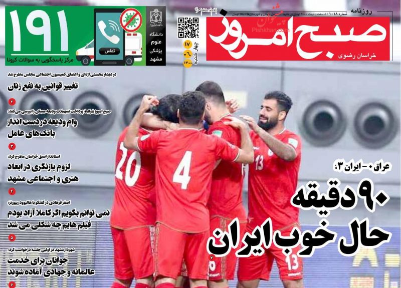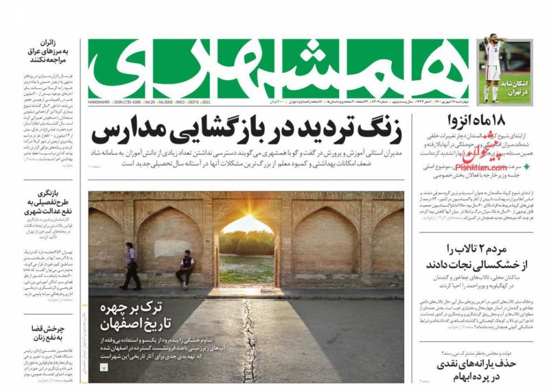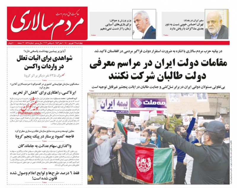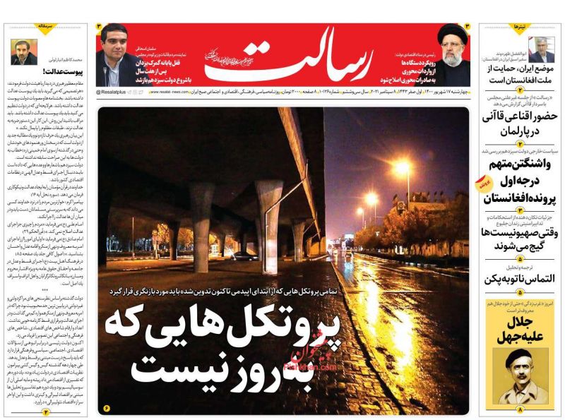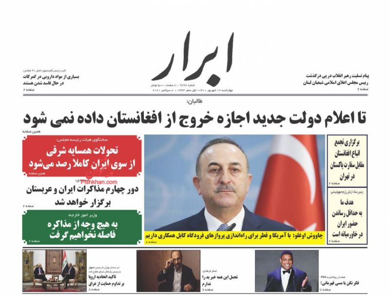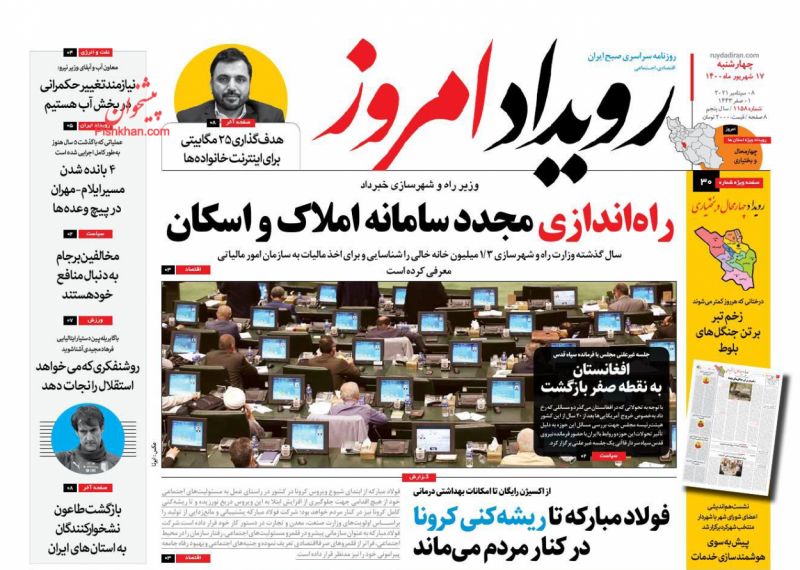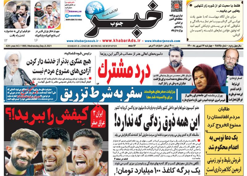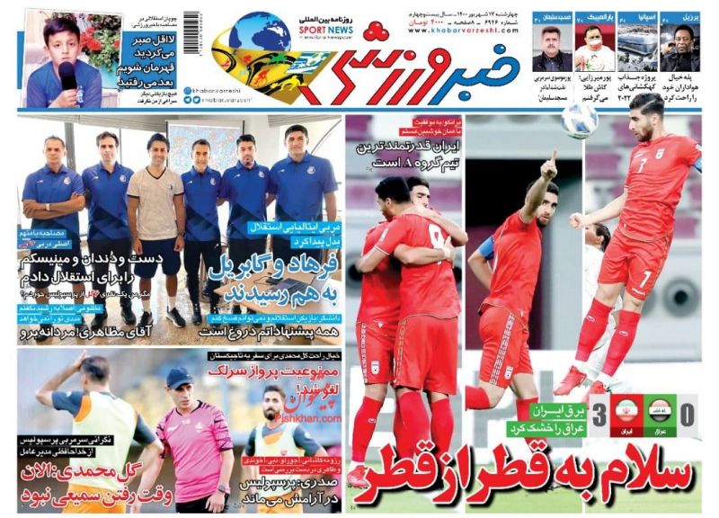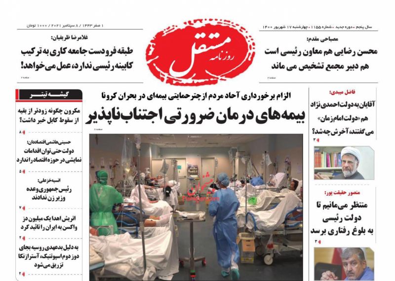 صفحه اول روزنامههای چهارشنبه ۱۷ شهریور ۱۴۰۰