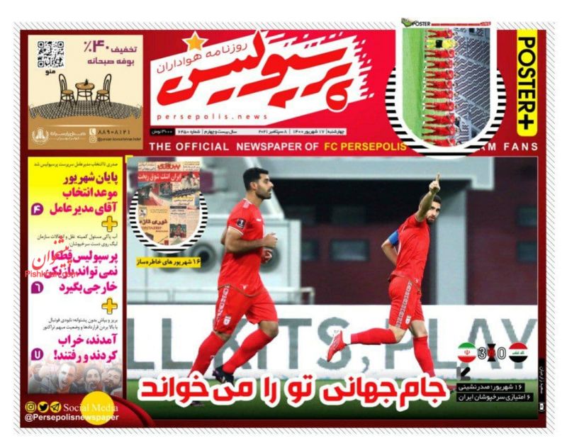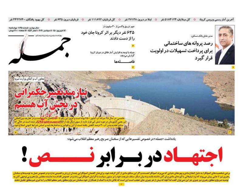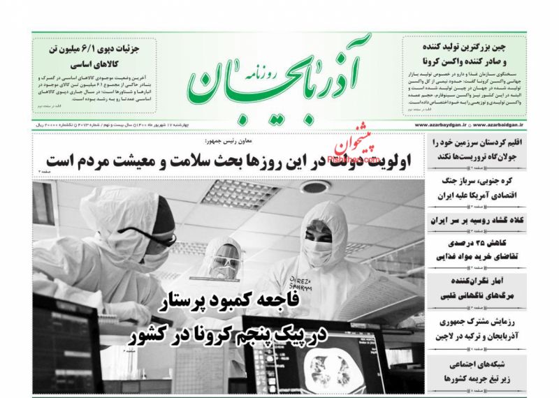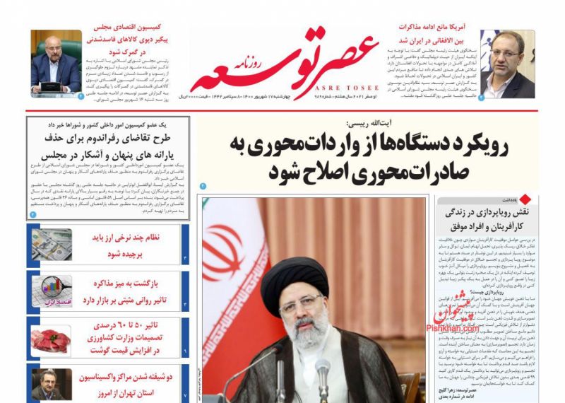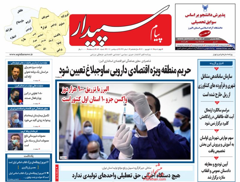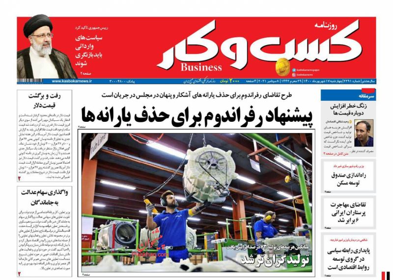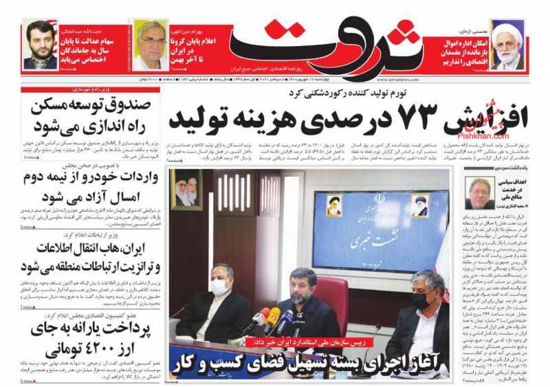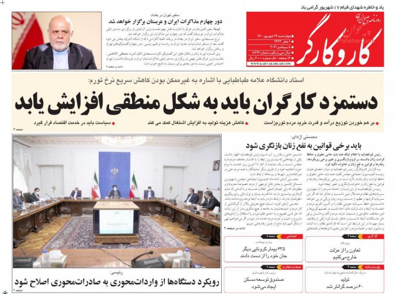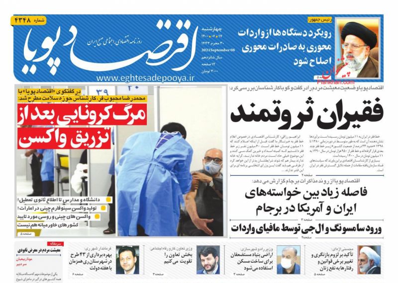 صفحه اول روزنامههای چهارشنبه ۱۷ شهریور ۱۴۰۰
