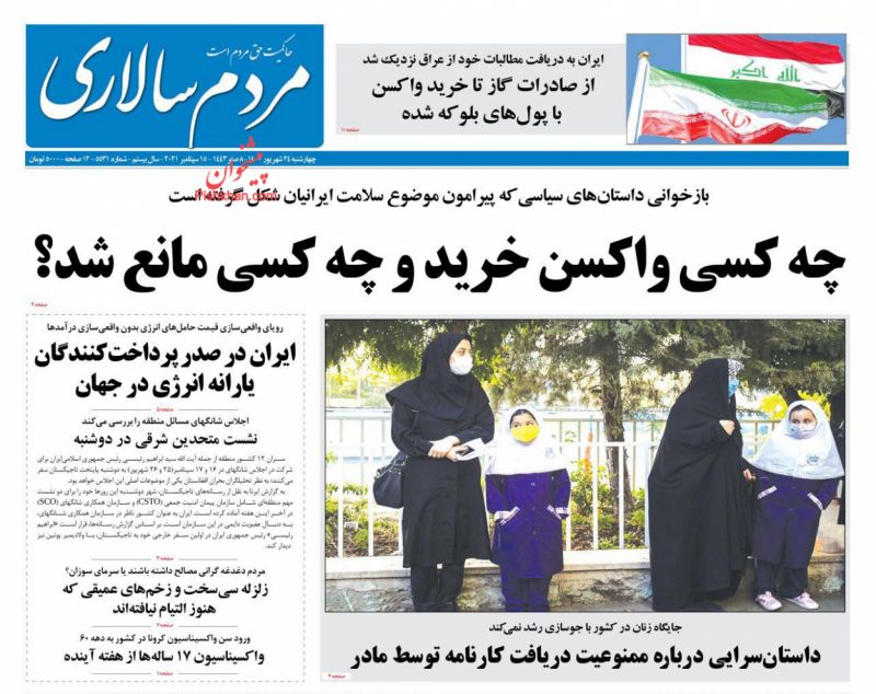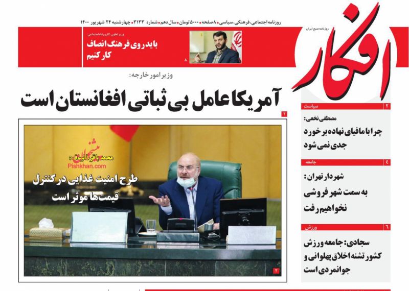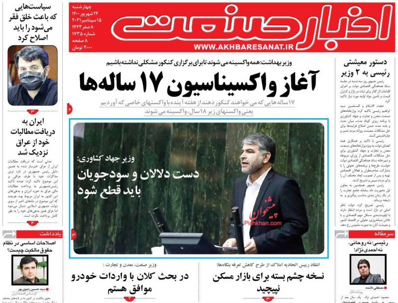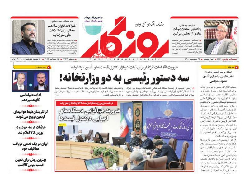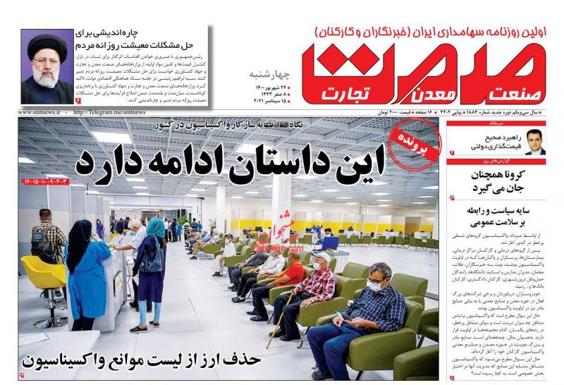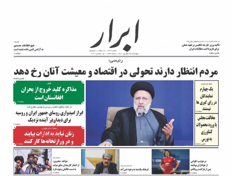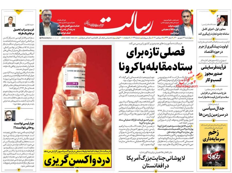 صفحه اول روزنامههای چهارشنبه ۲۴ شهریور ۱۴۰۰