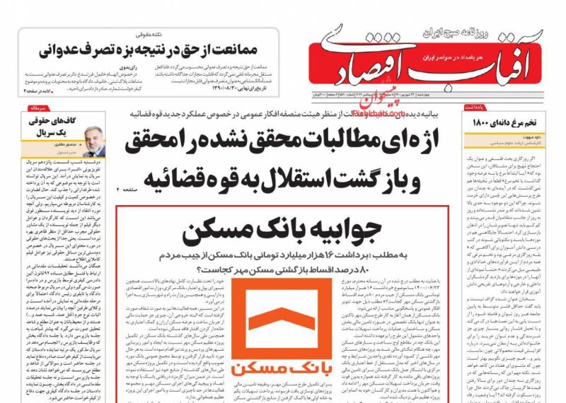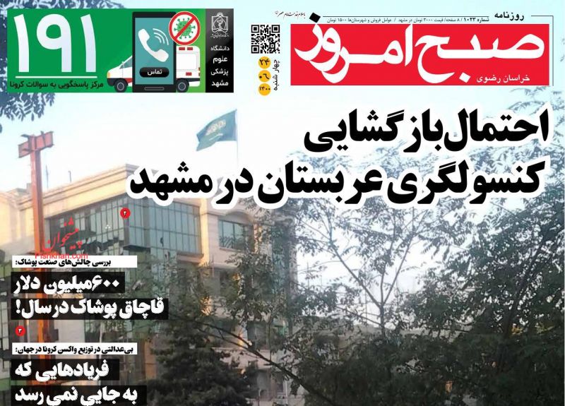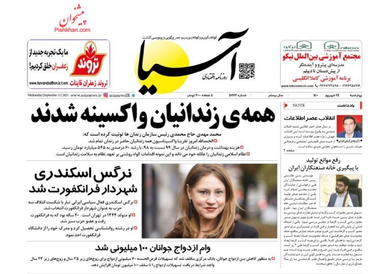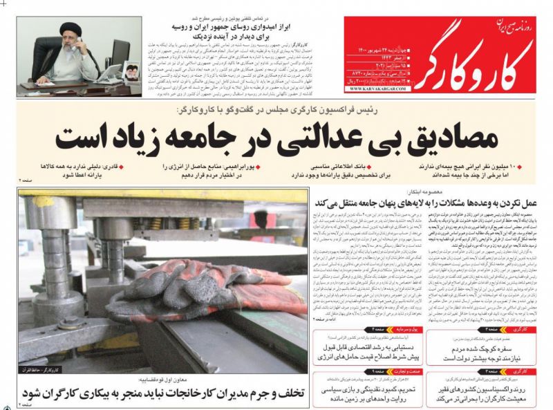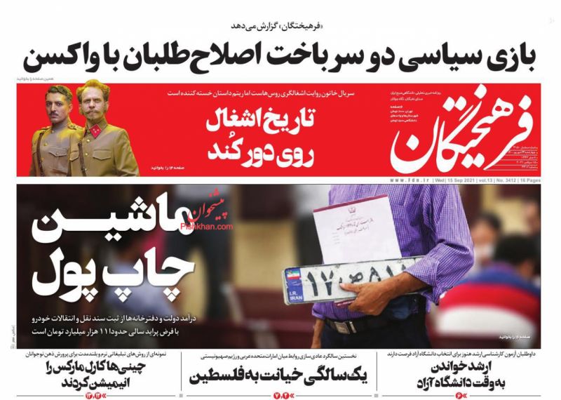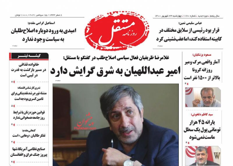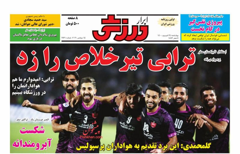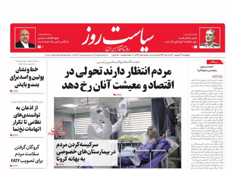 صفحه اول روزنامههای چهارشنبه ۲۴ شهریور ۱۴۰۰