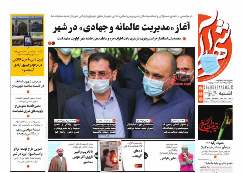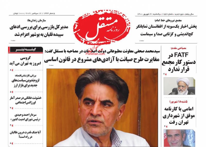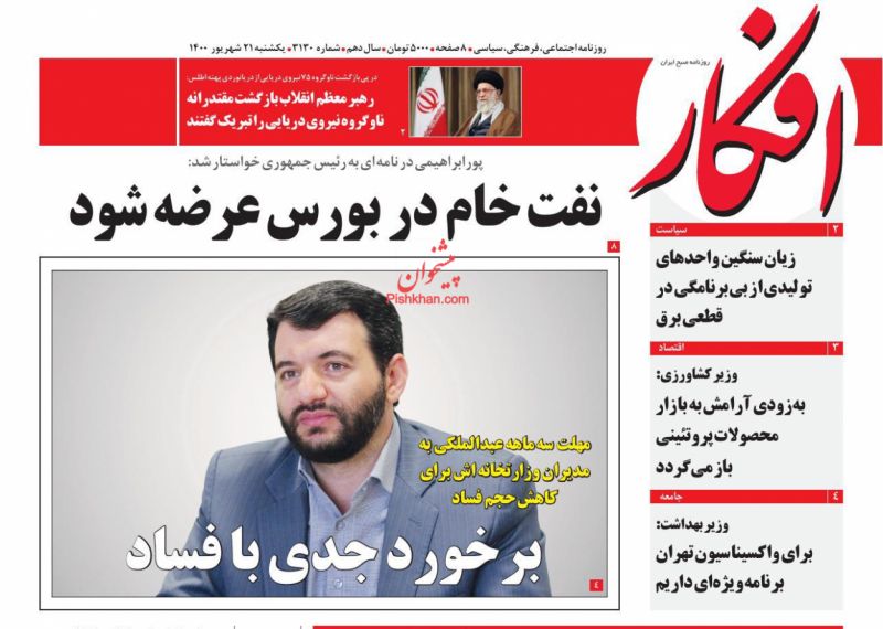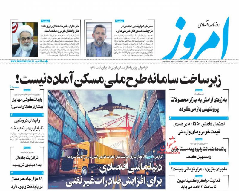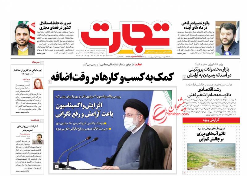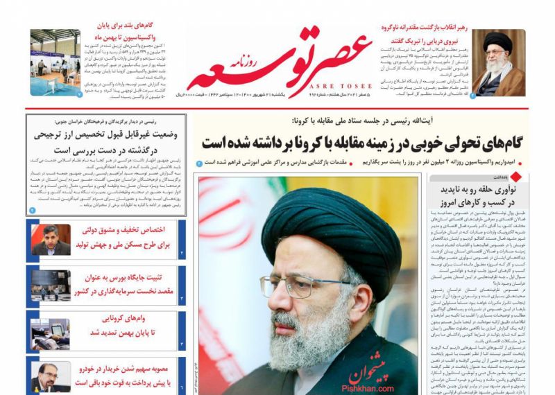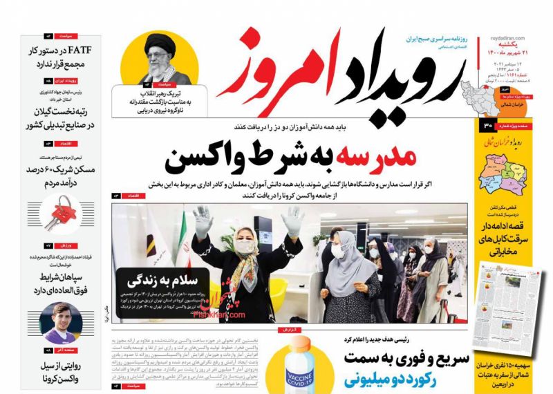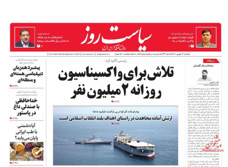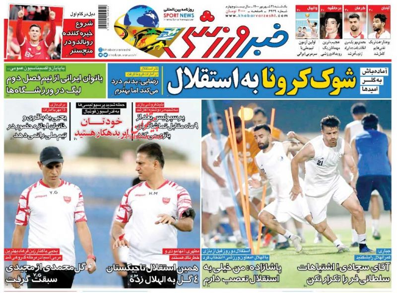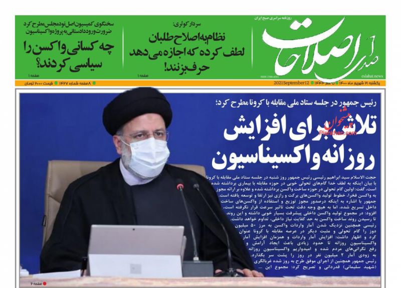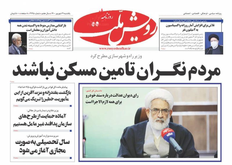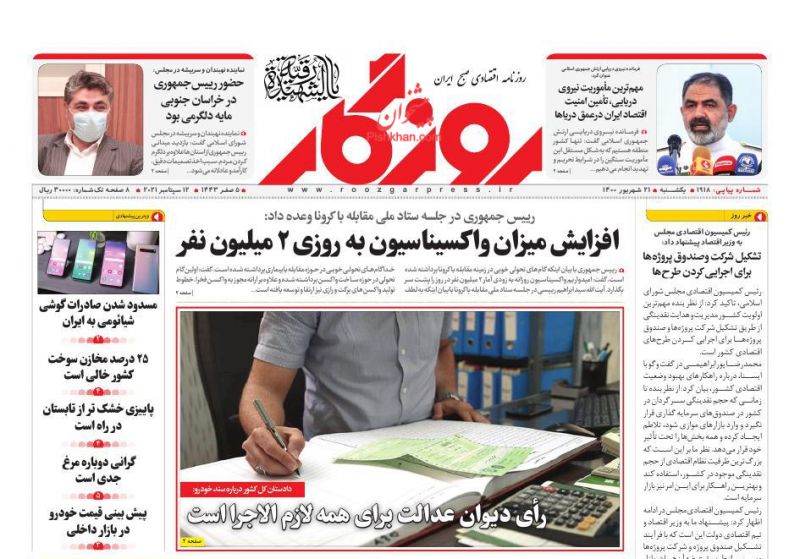صفحه اول روزنامههای یکشنبه ۲۱ شهریور ۱۴۰۰