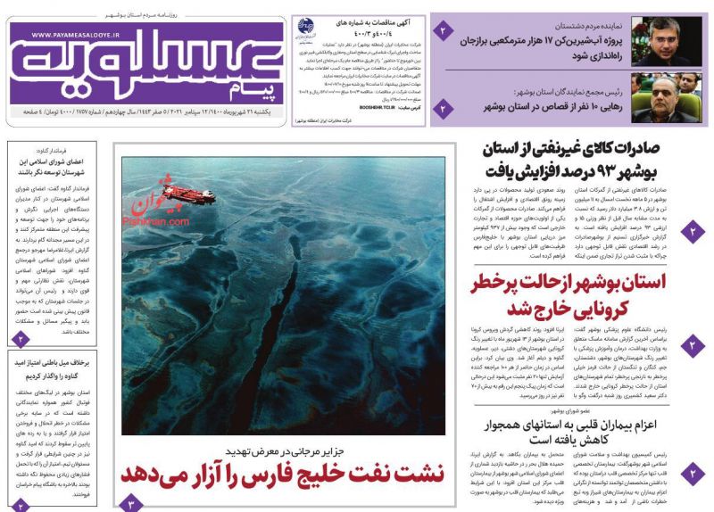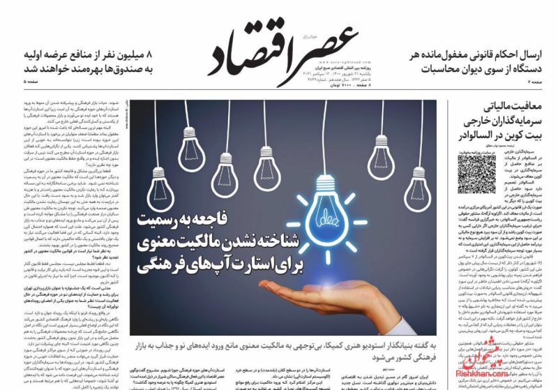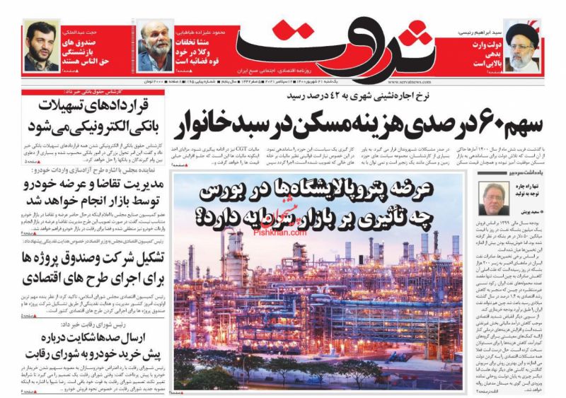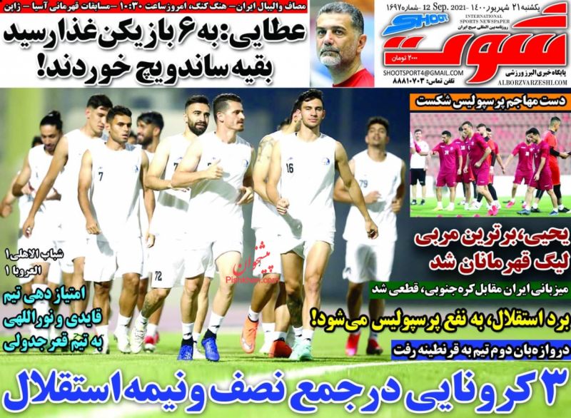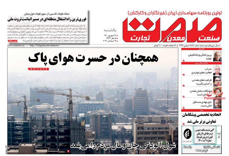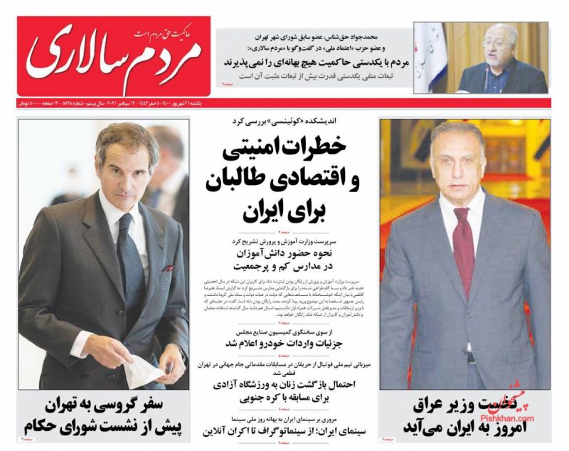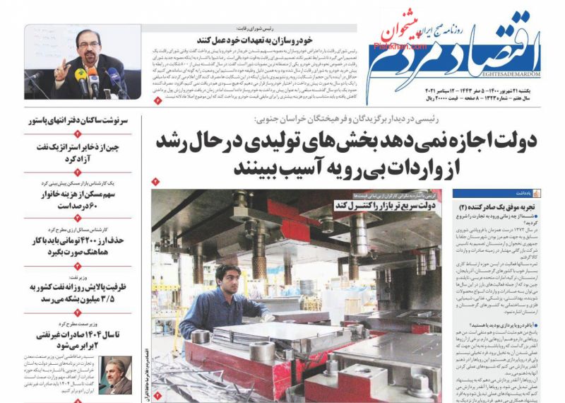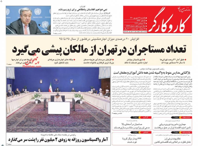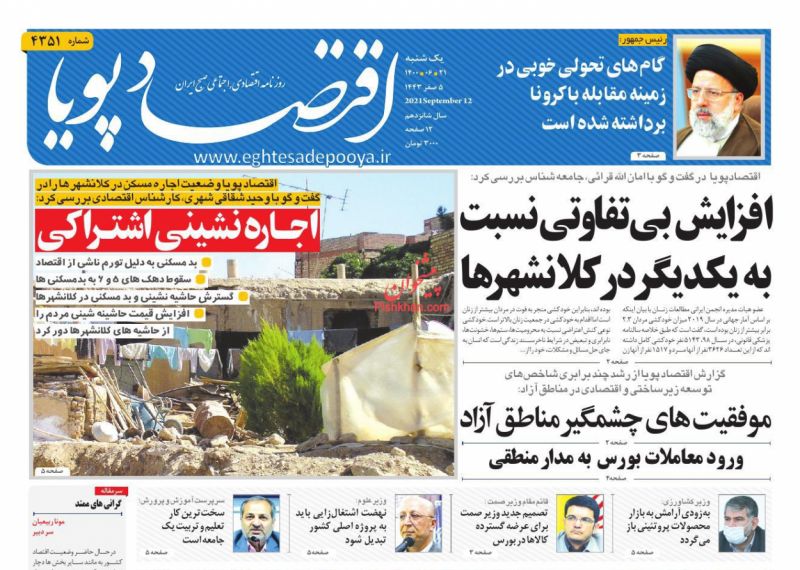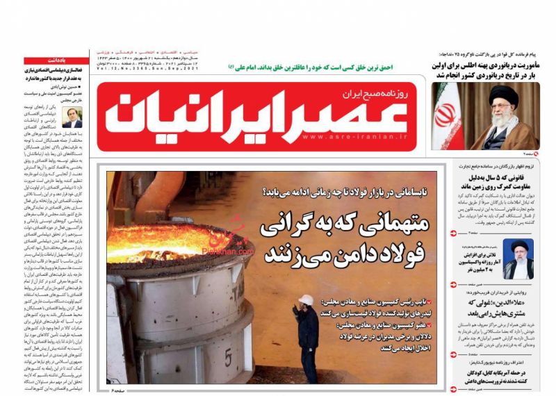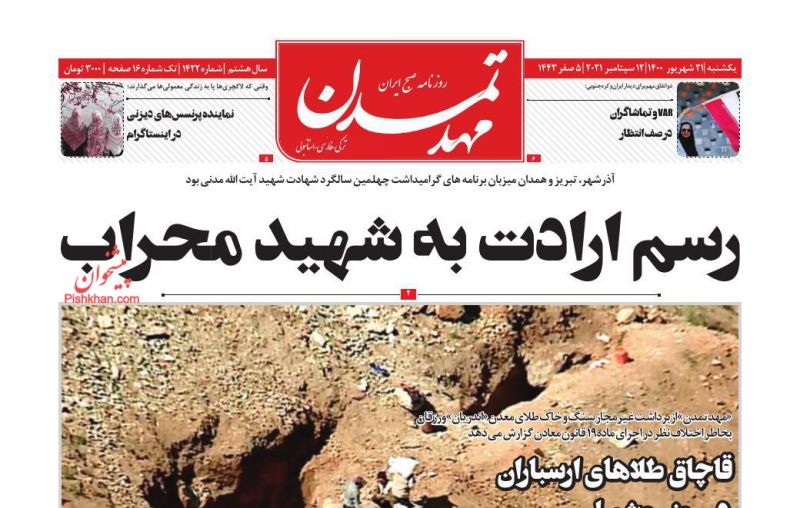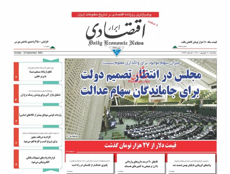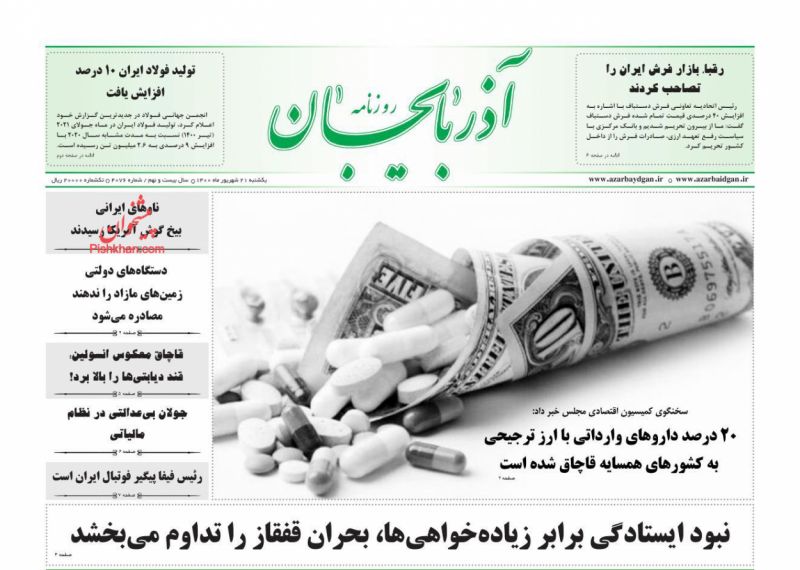 صفحه اول روزنامههای یکشنبه ۲۱ شهریور ۱۴۰۰