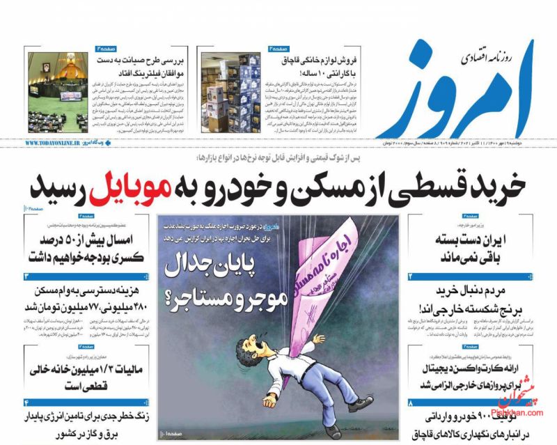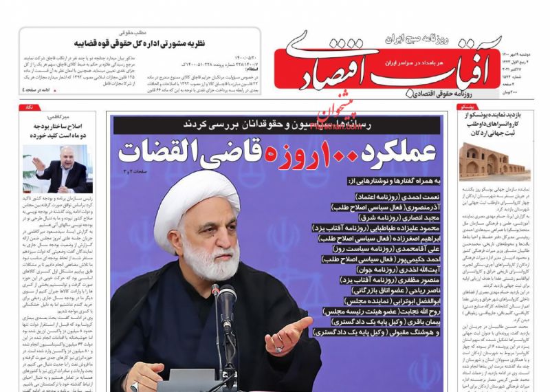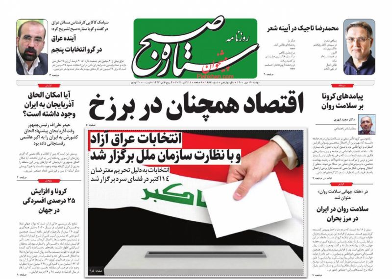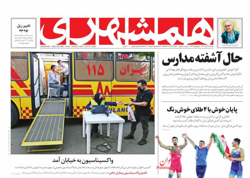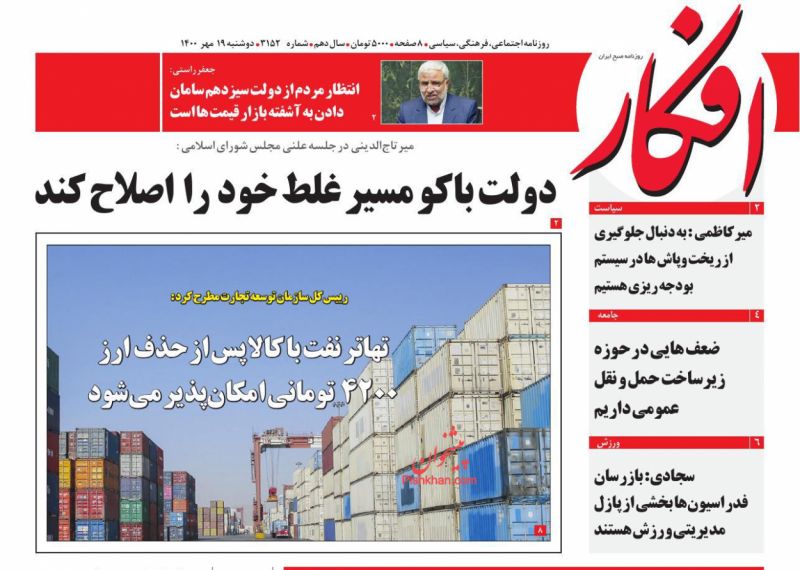 صفحه اول روزنامههای دوشنبه ۱۹ مهر ۱۴۰۰