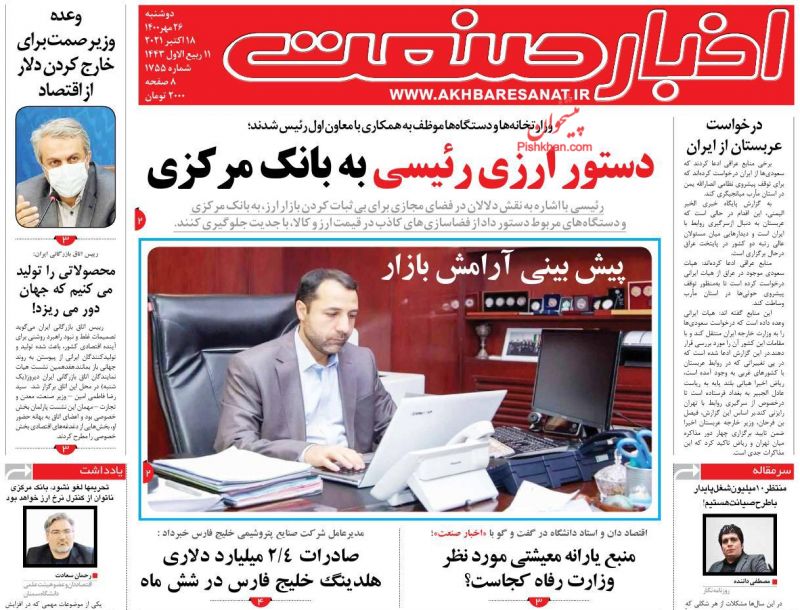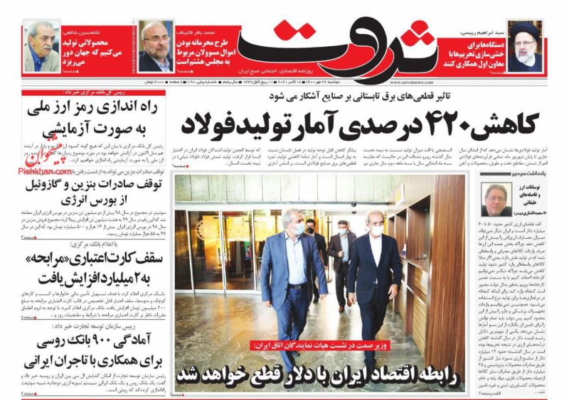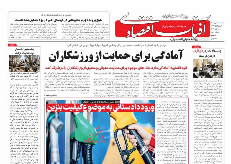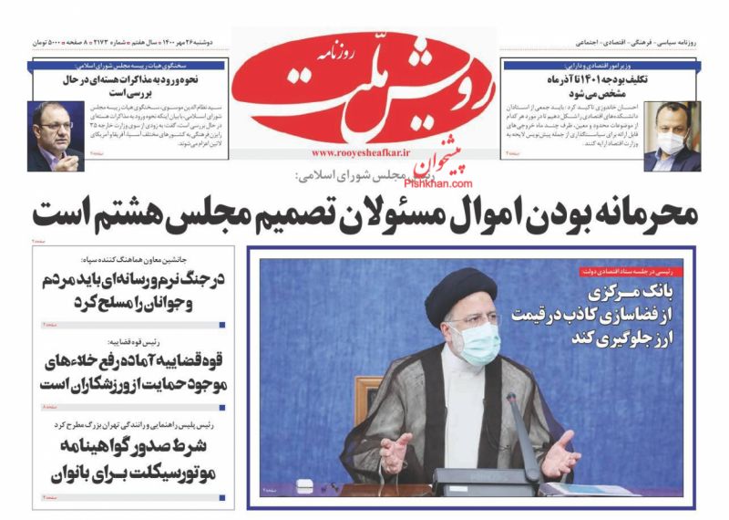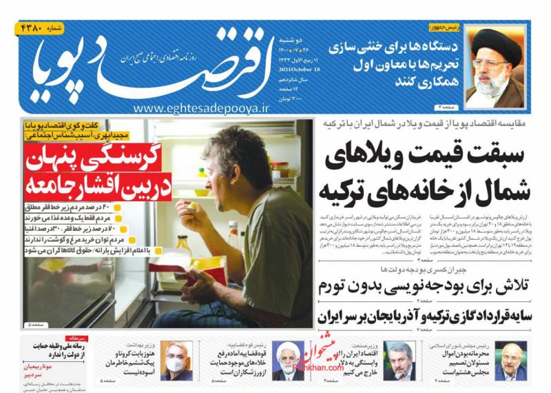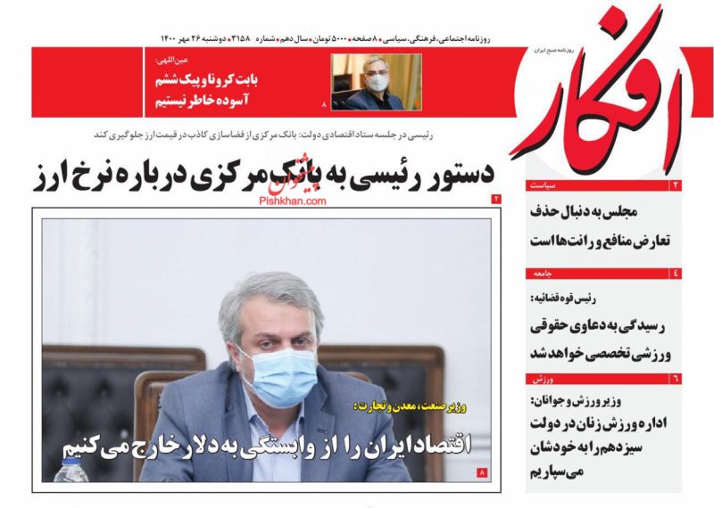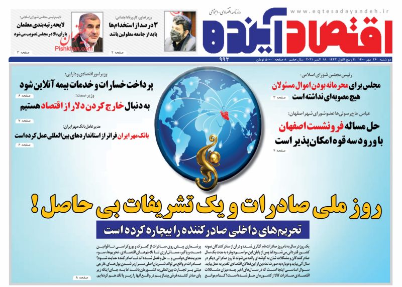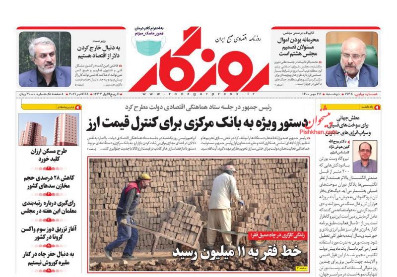 صفحه اول روزنامههای دوشنبه ۲۶ مهر ۱۴۰۰