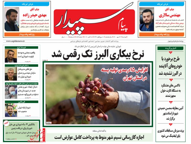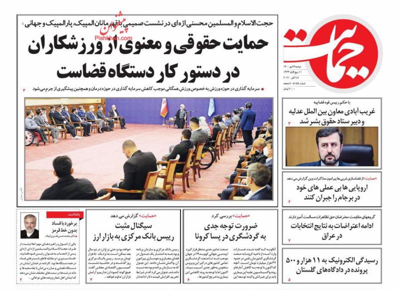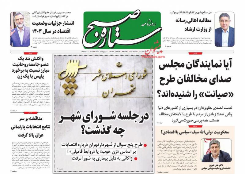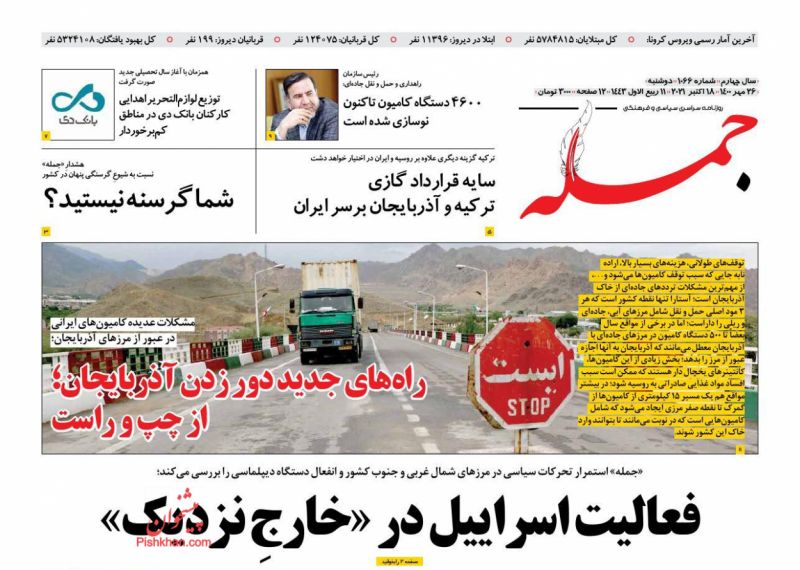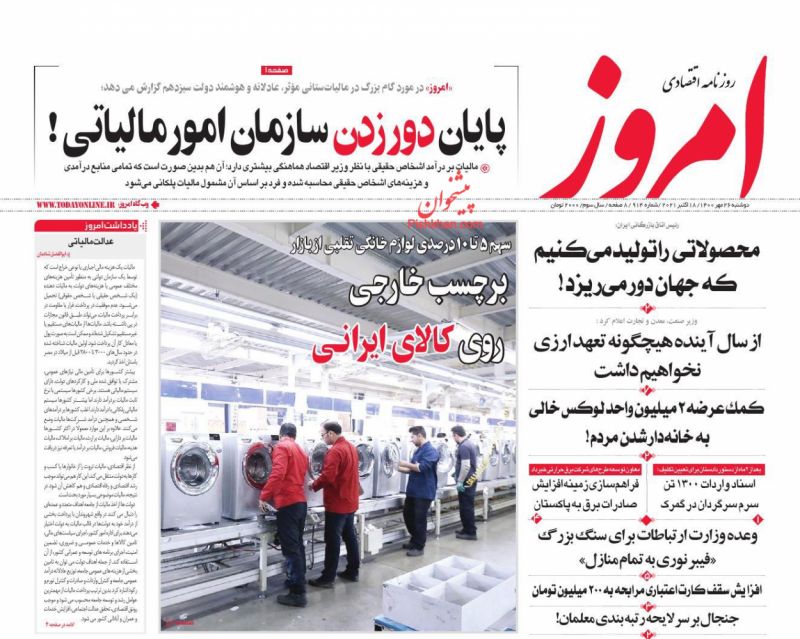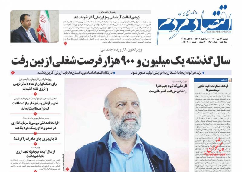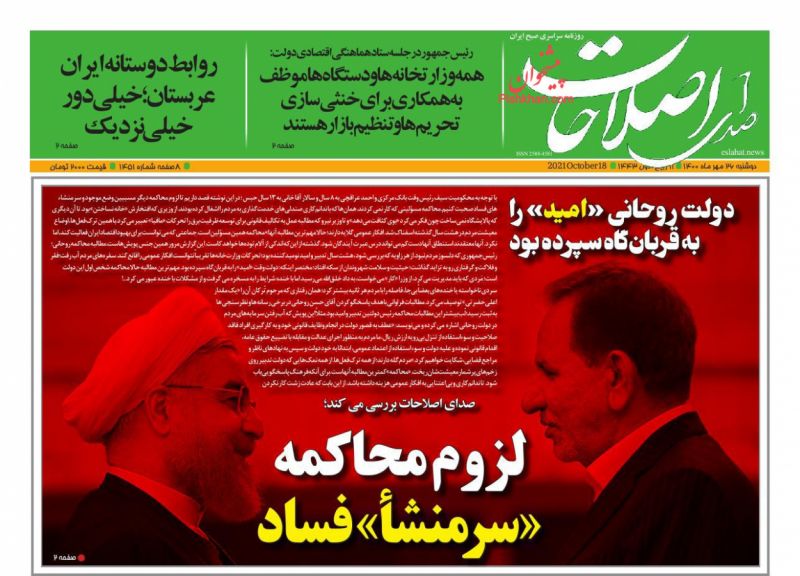 صفحه اول روزنامههای دوشنبه ۲۶ مهر ۱۴۰۰