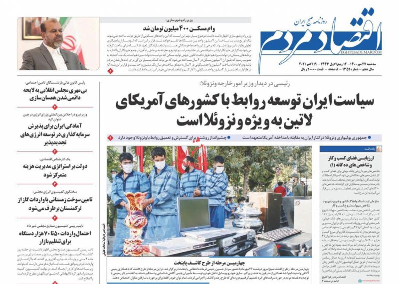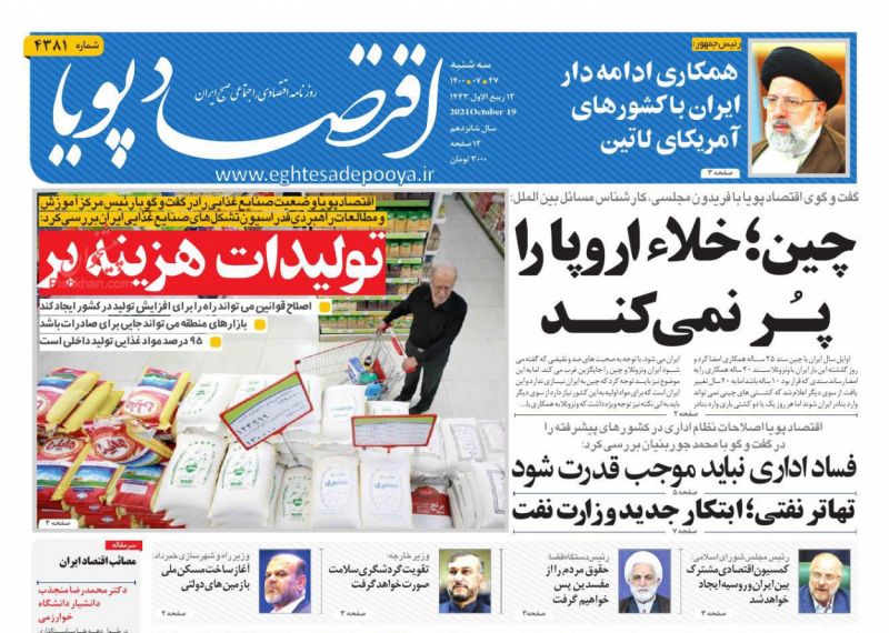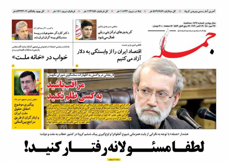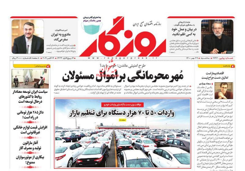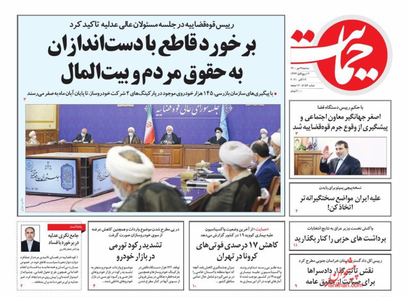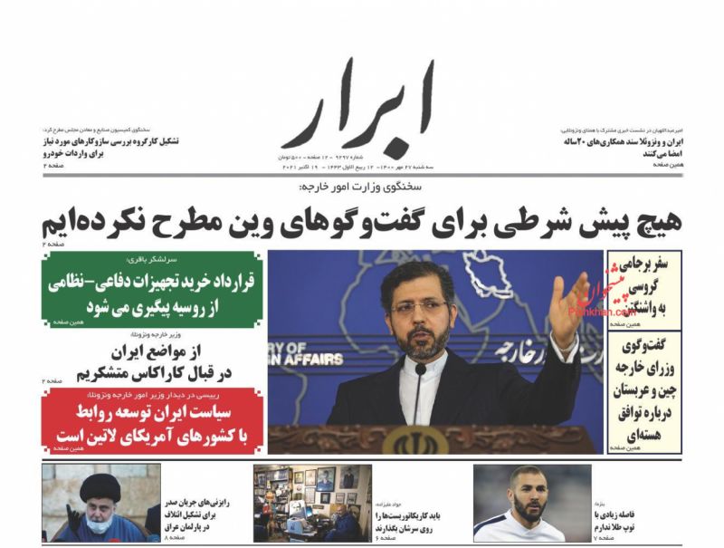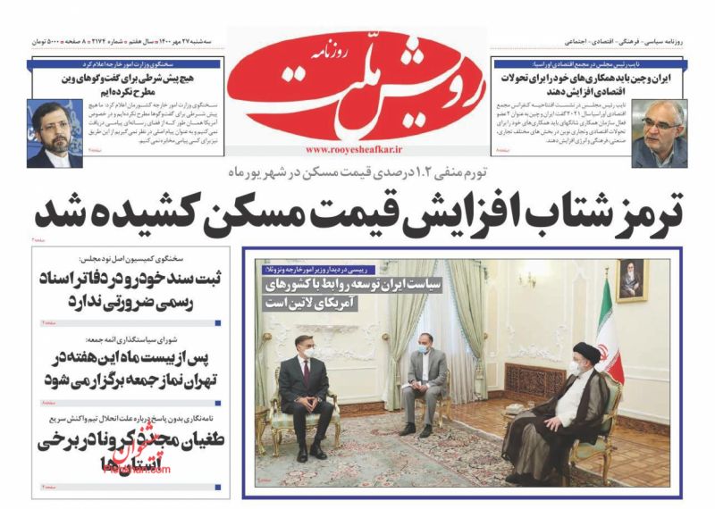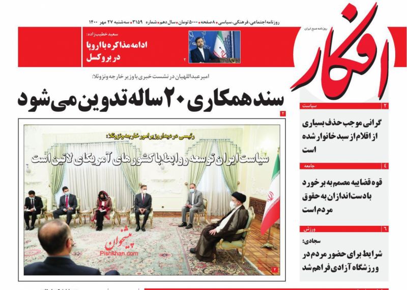 صفحه اول روزنامههای سهشنبه ۲۷ مهر ۱۴۰۰