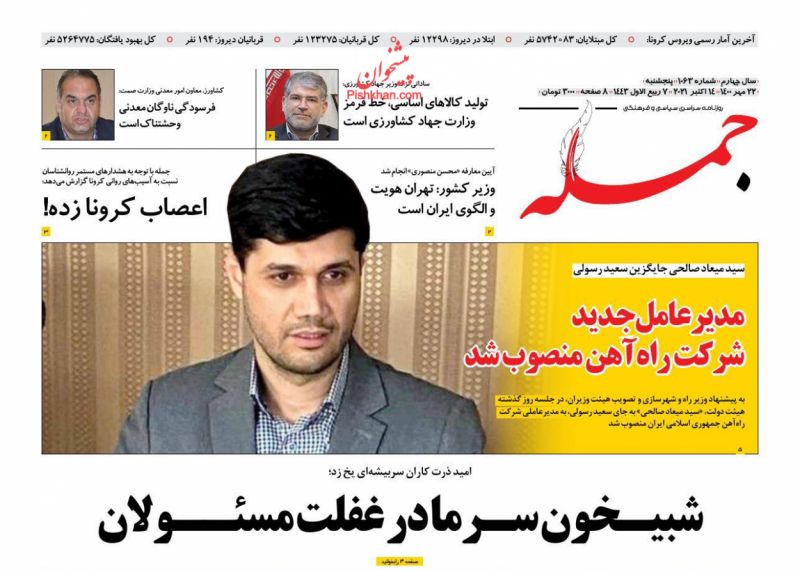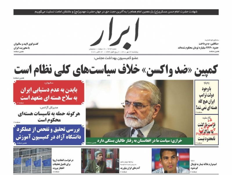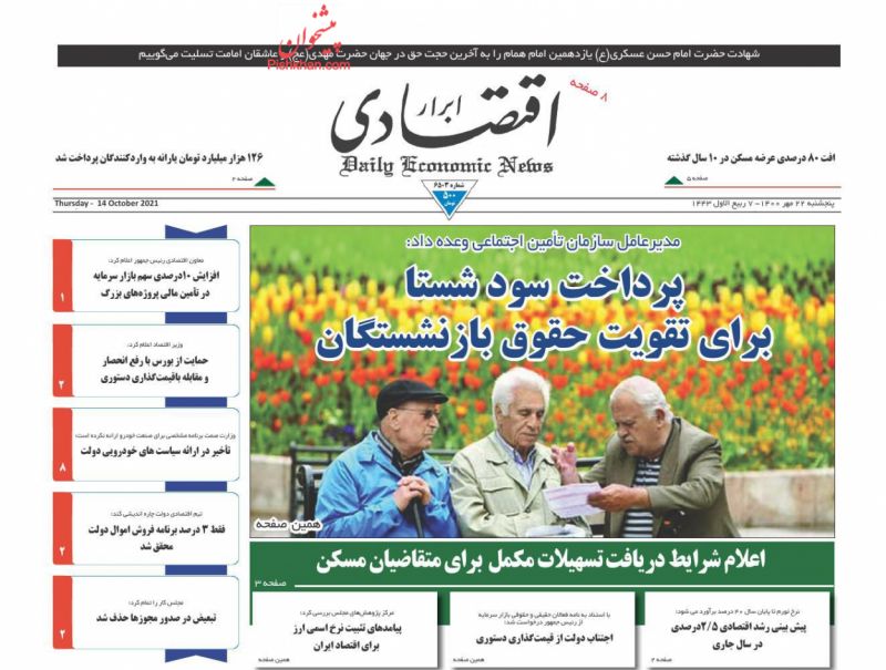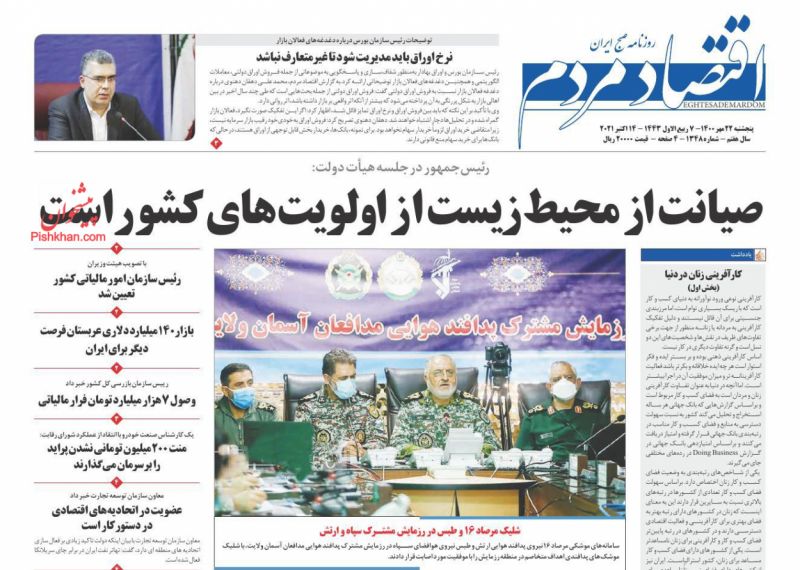 صفحه اول روزنامههای پنجشنبه ۲۲ مهر ۱۴۰۰