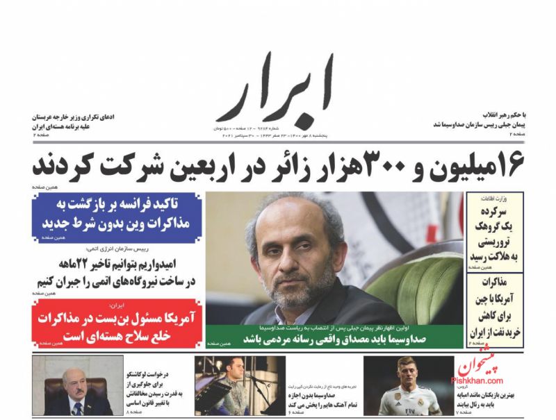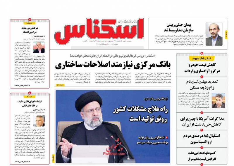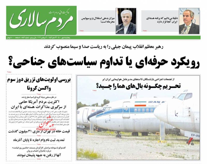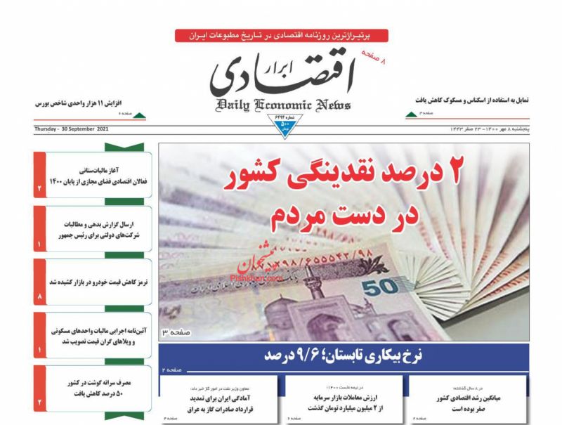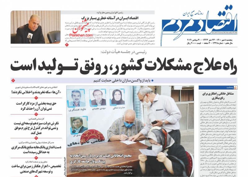 صفحه اول روزنامههای پنجشنبه ۸ مهر ۱۴۰۰
