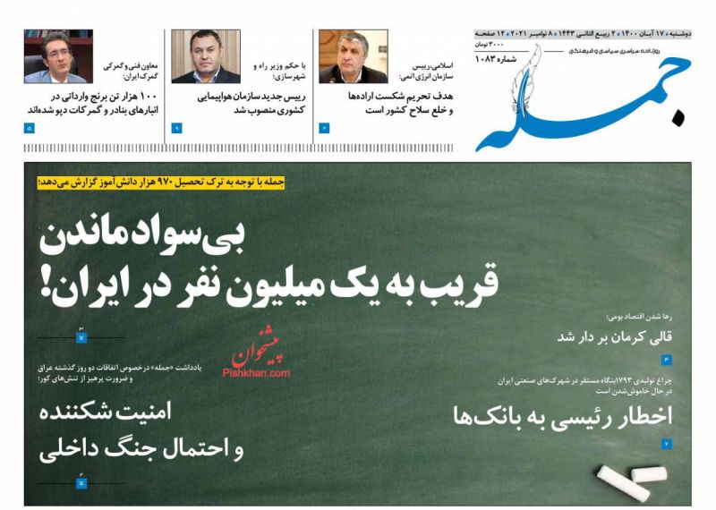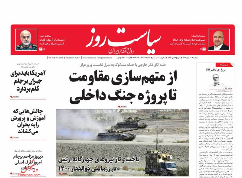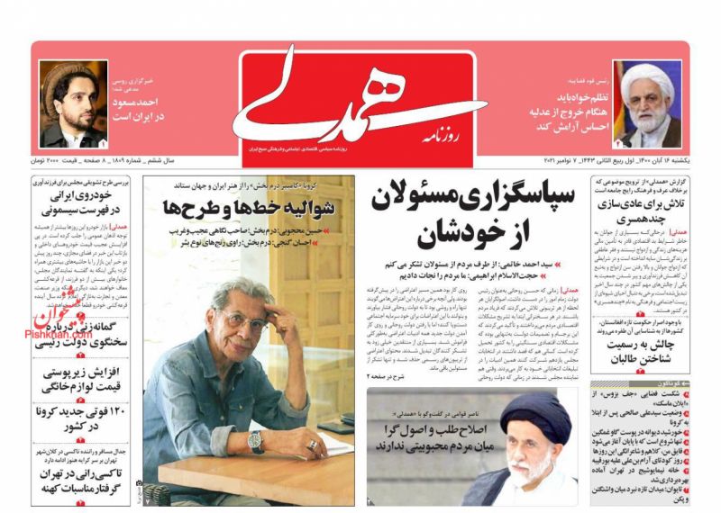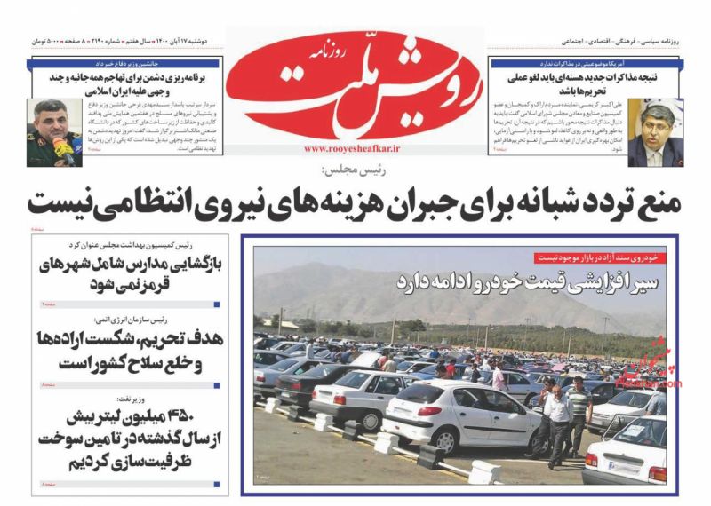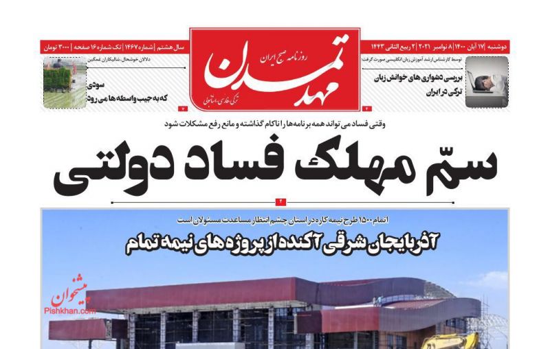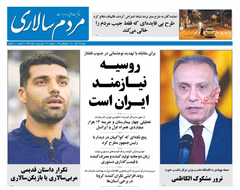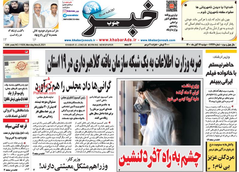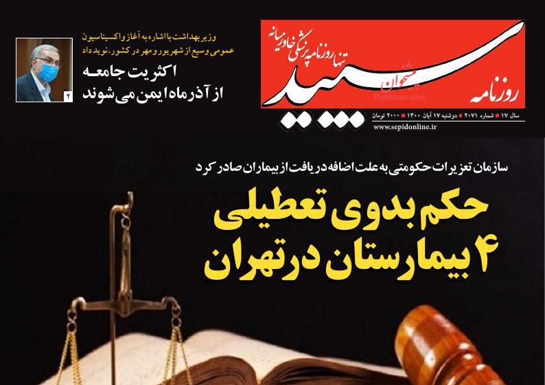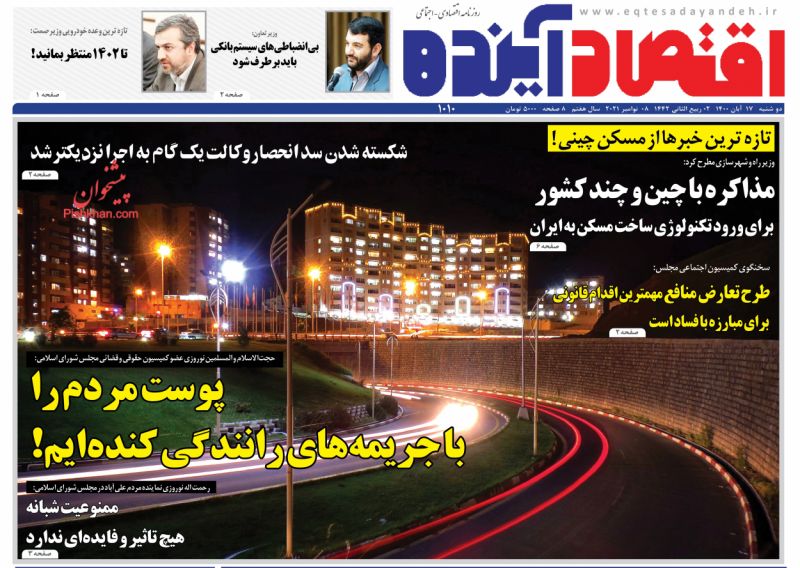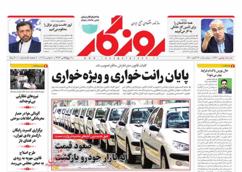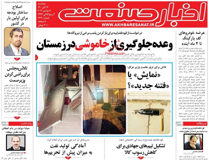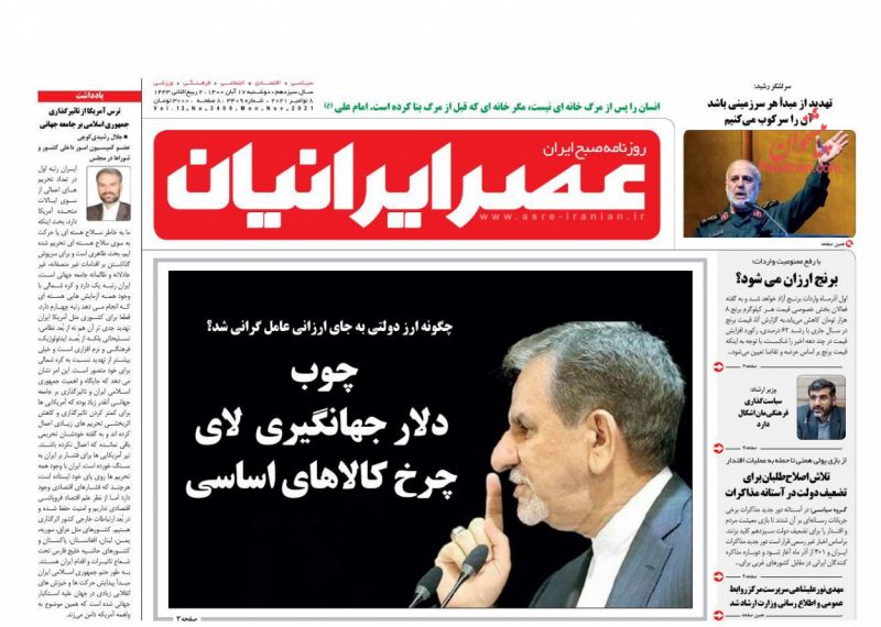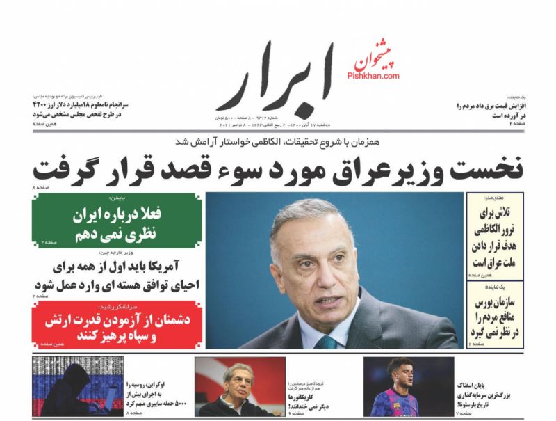 صفحه اول روزنامه‌های دوشنبه ۱۷ آبان ۱۴۰۰