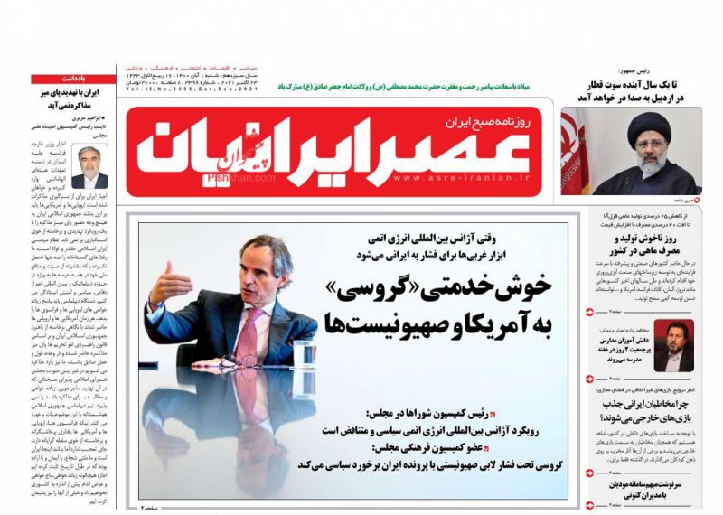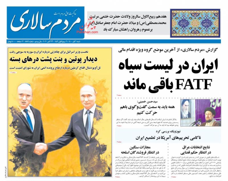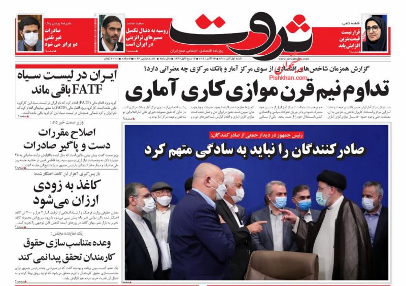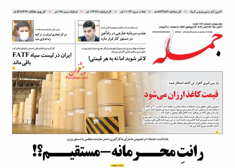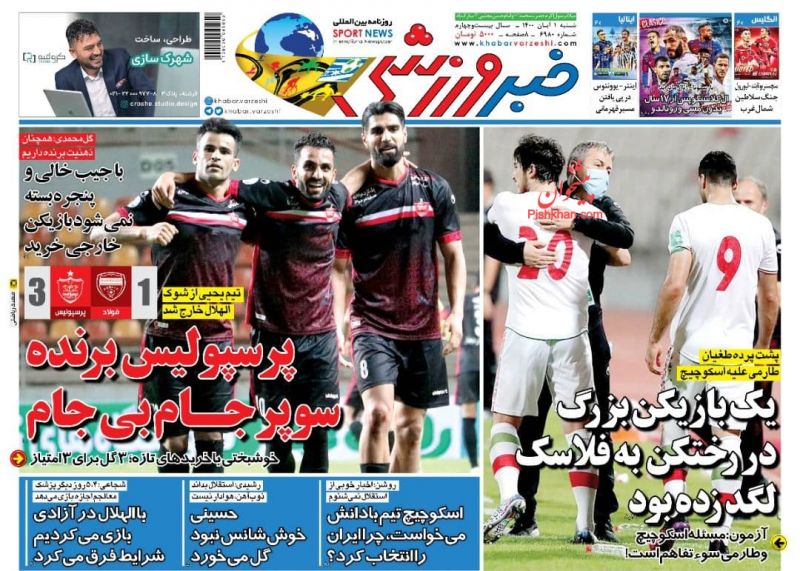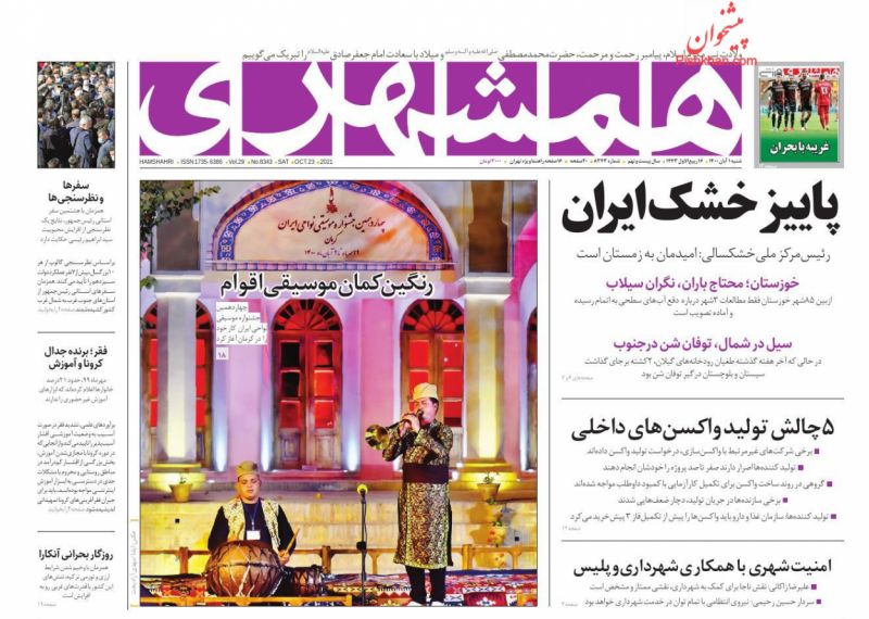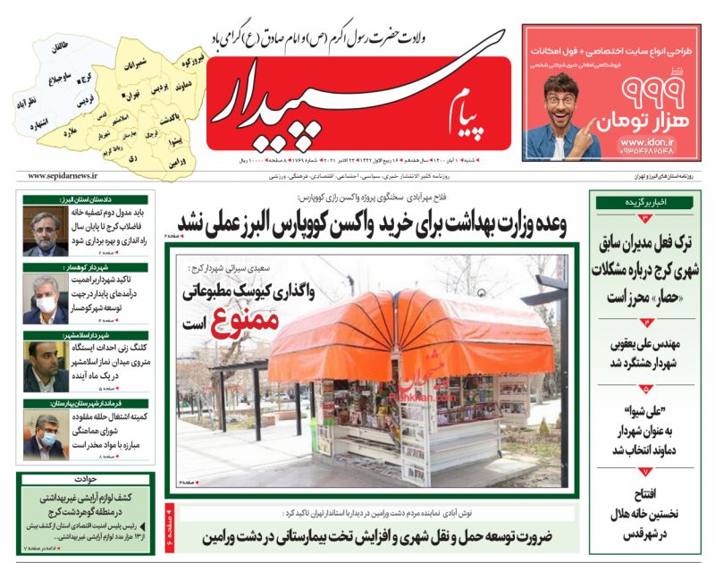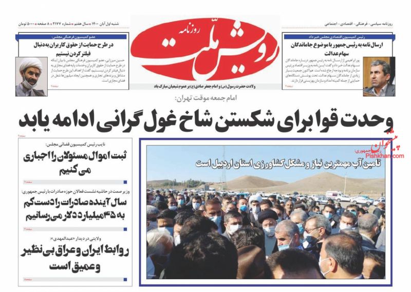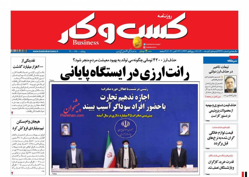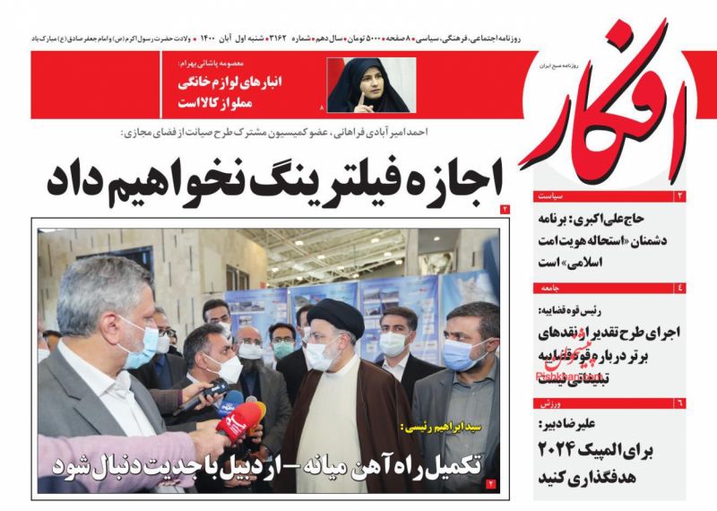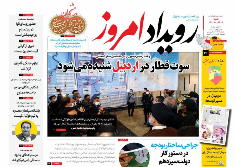 صفحه اول روزنامههای شنبه ۱ آبان ۱۴۰۰