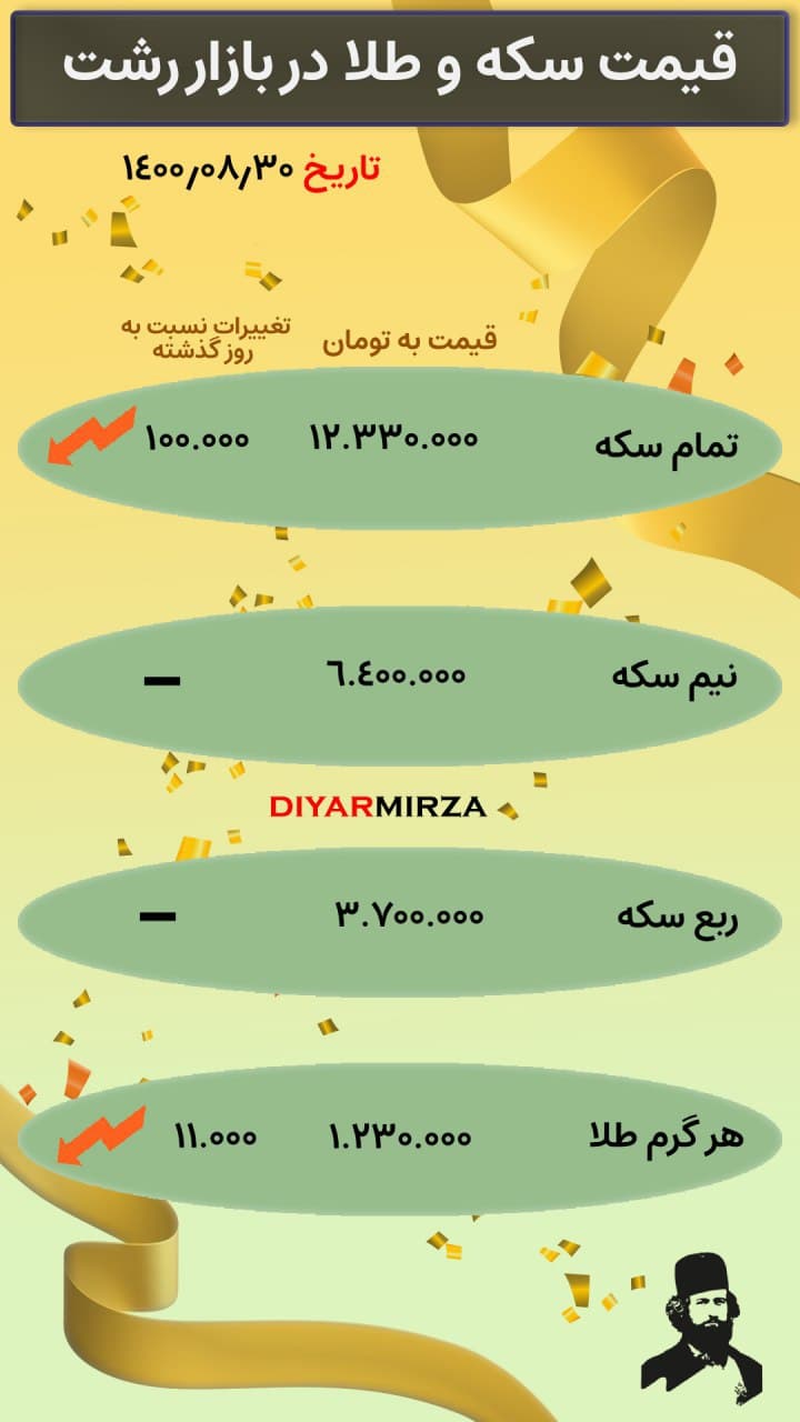 به گزارش پایگاه اطلاع رسانی دیارمیرزا، اتحادیه طلا و سکه رشت اعلام کرد: