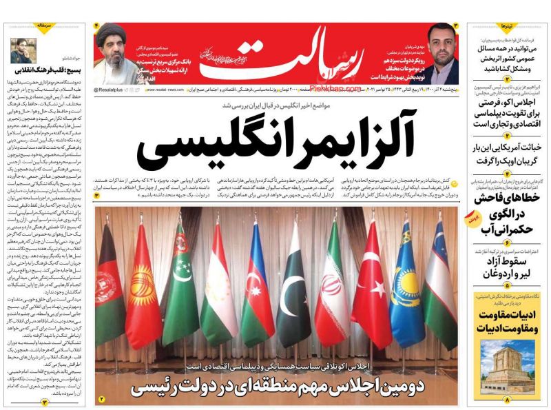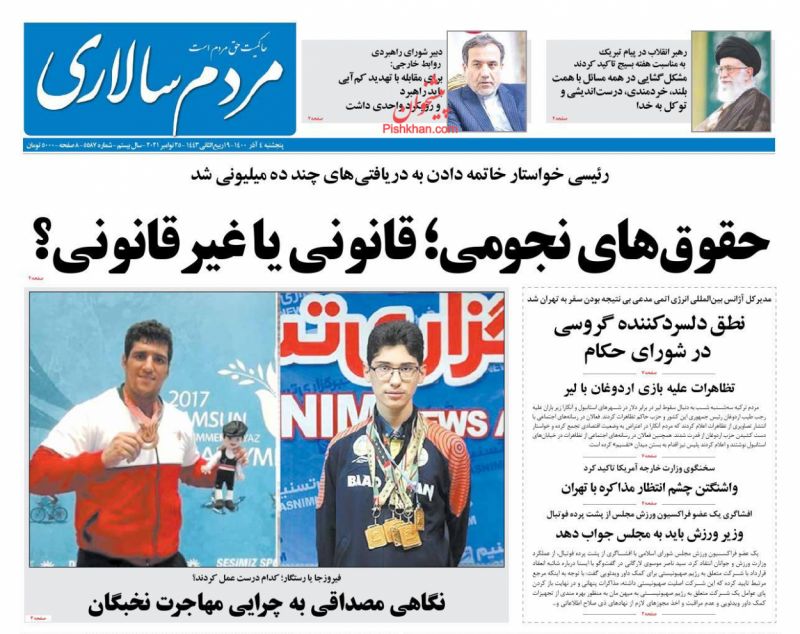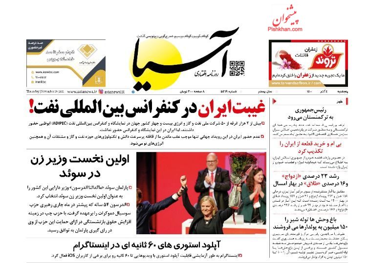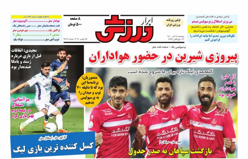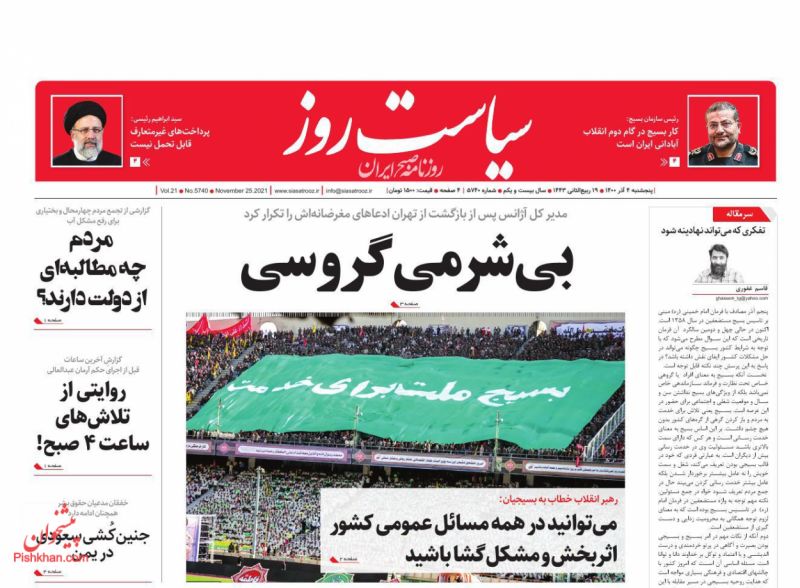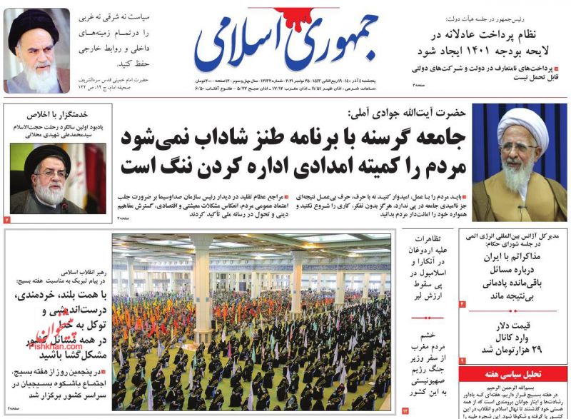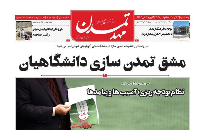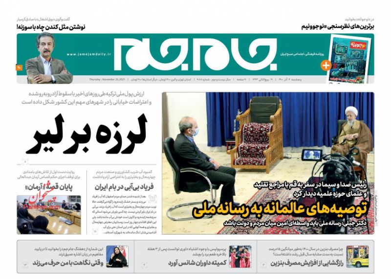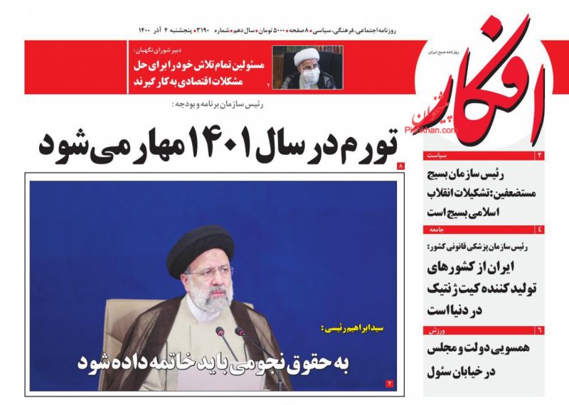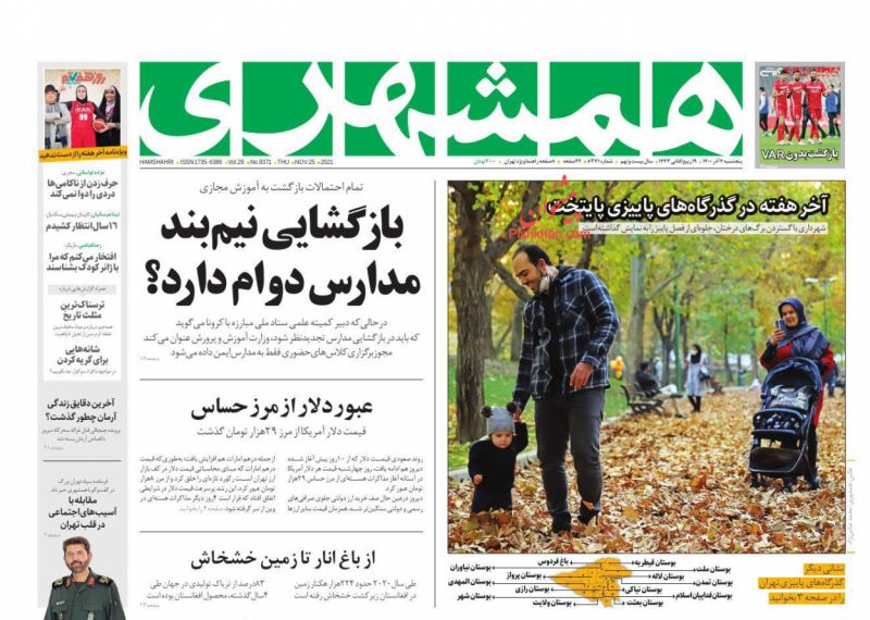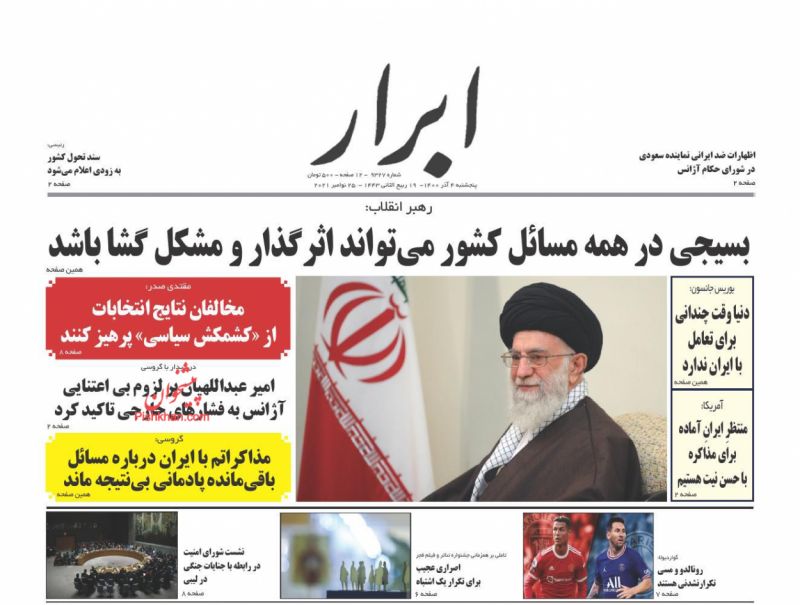 صفحه اول روزنامههای پنجشنبه ۴ آذر ۱۴۰۰