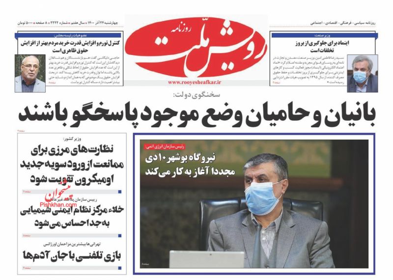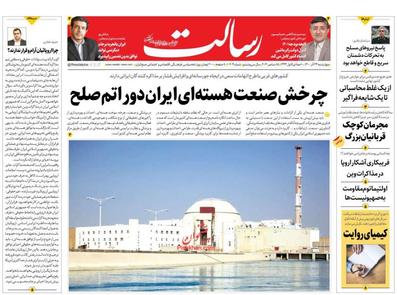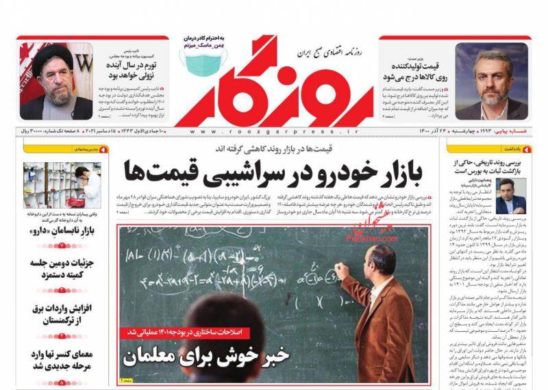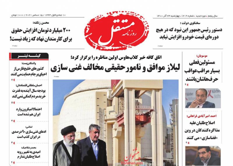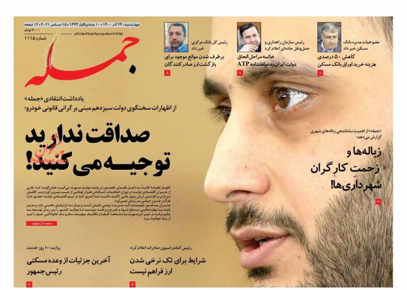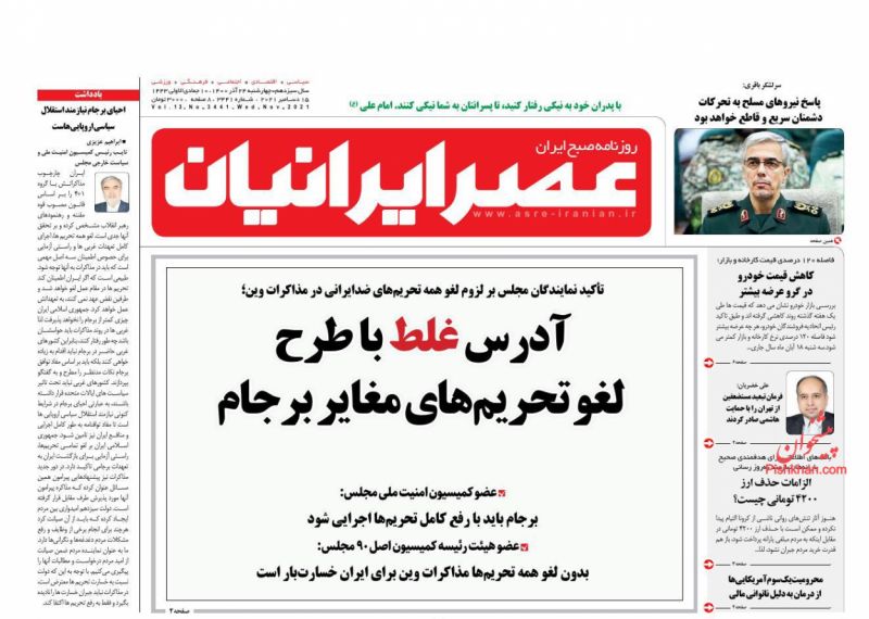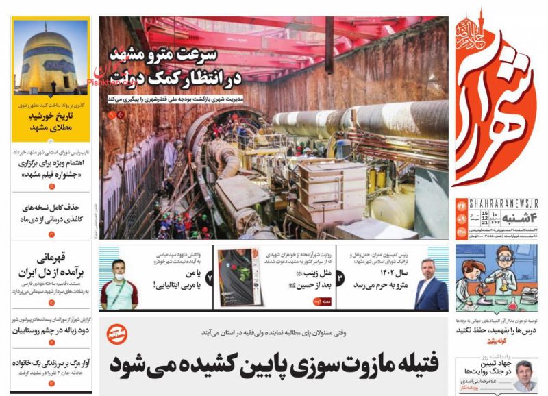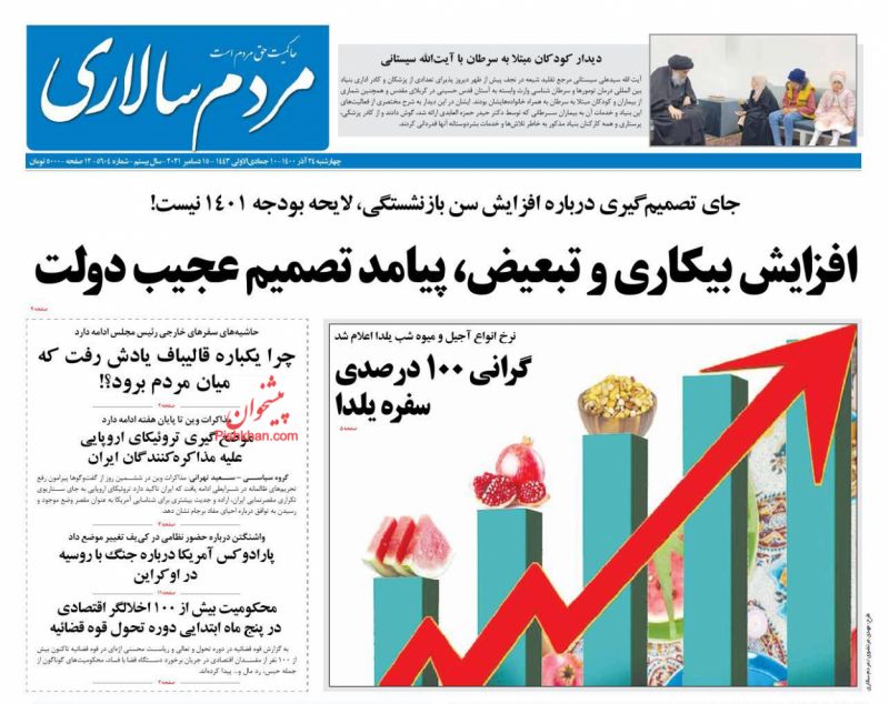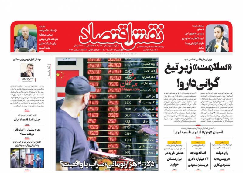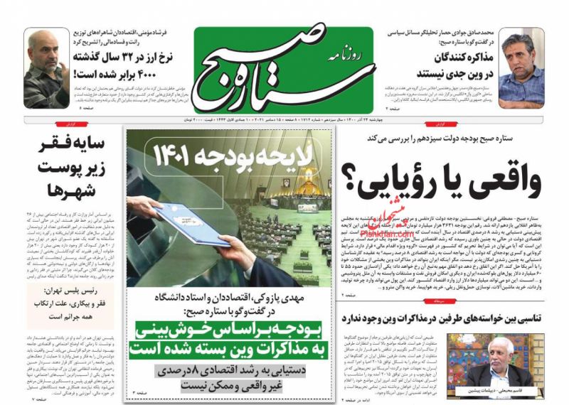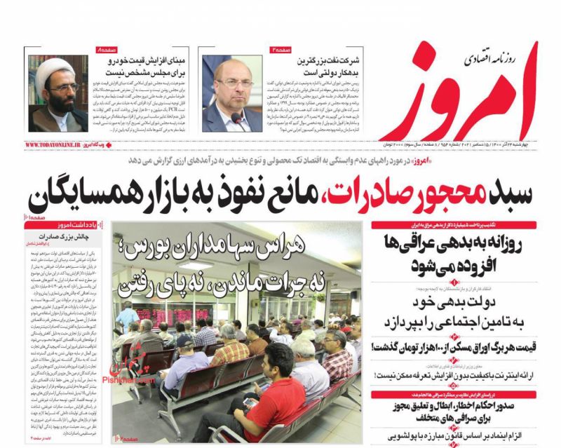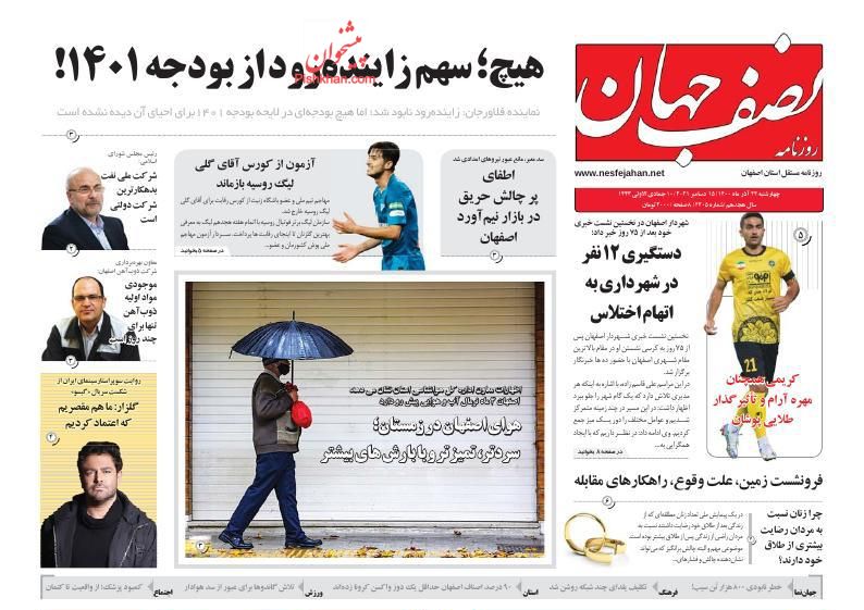 صفحه اول روزنامههای چهارشنبه ۲۴ آذر ۱۴۰۰