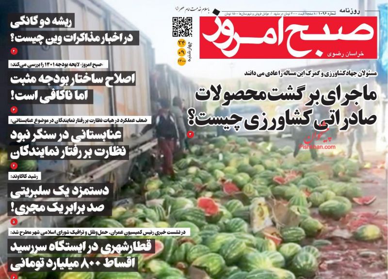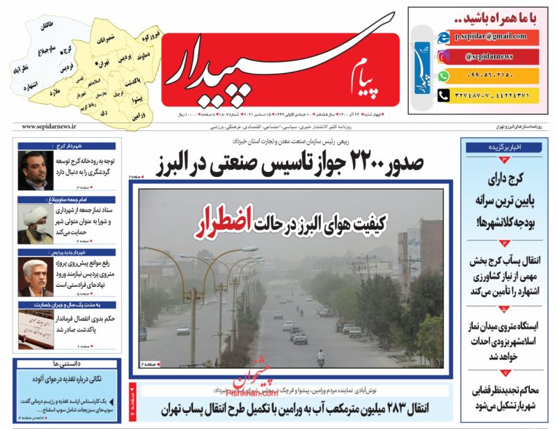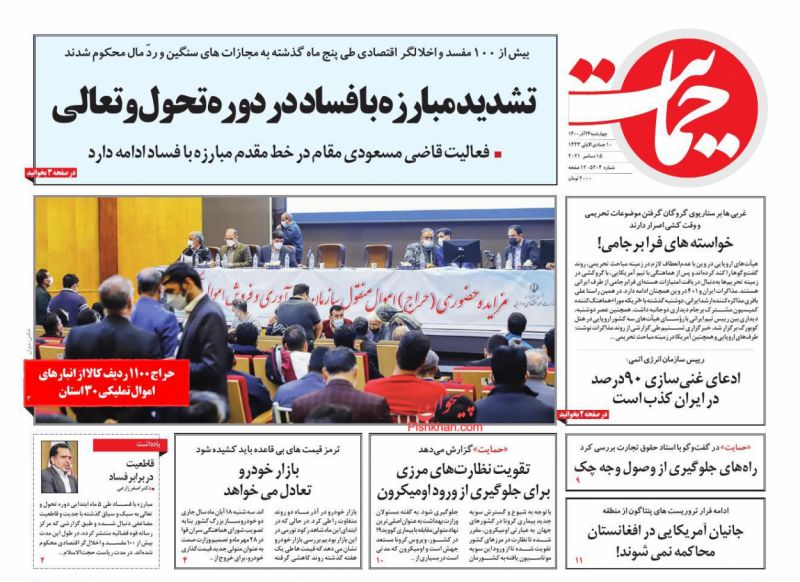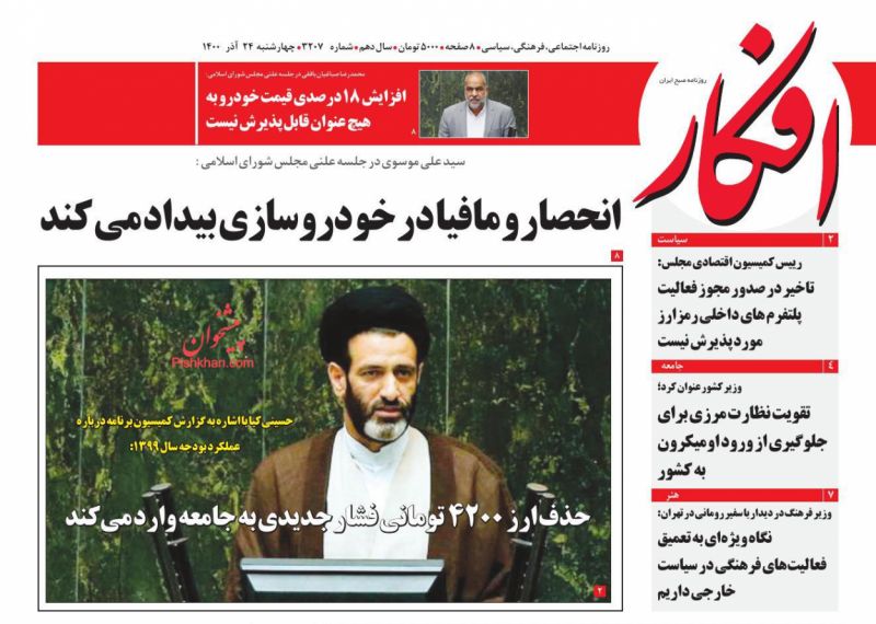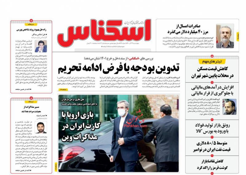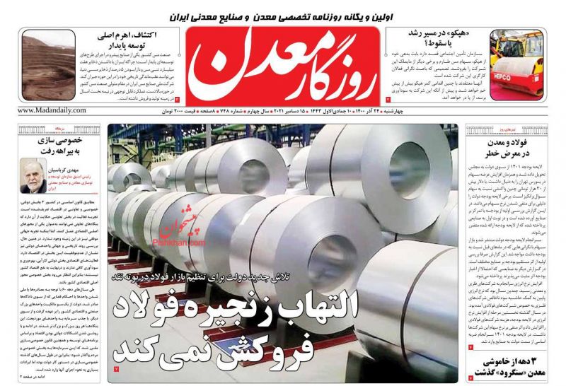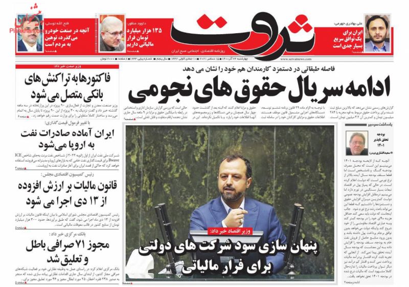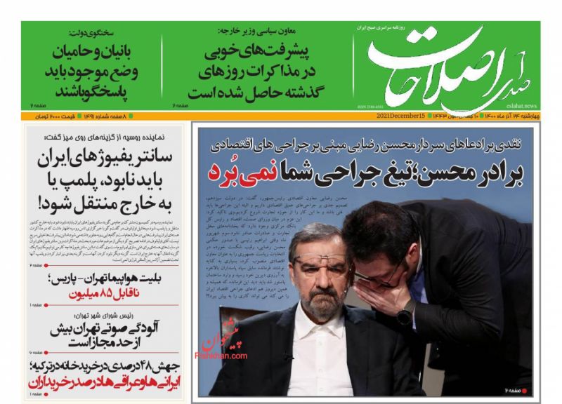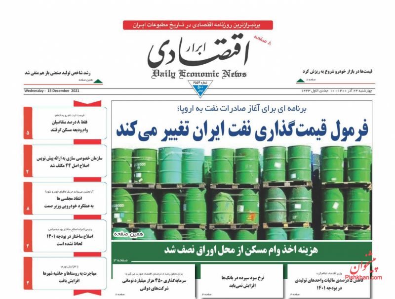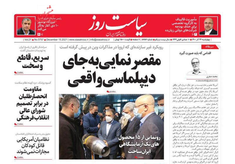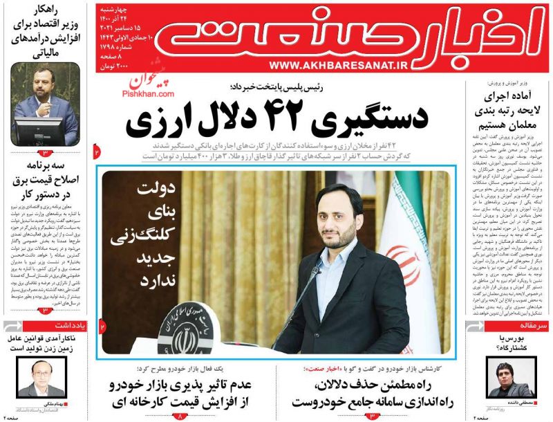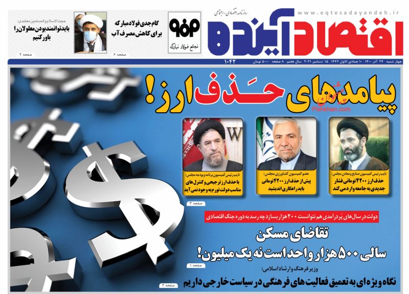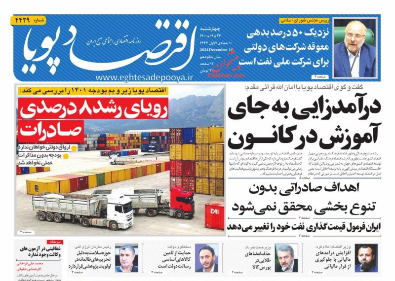 صفحه اول روزنامههای چهارشنبه ۲۴ آذر ۱۴۰۰