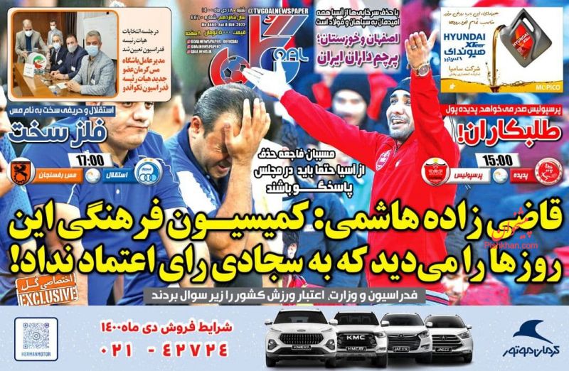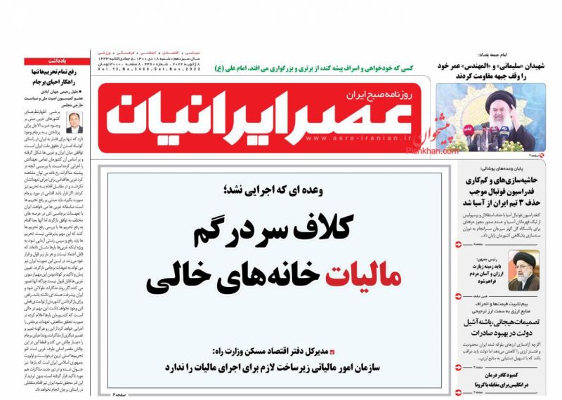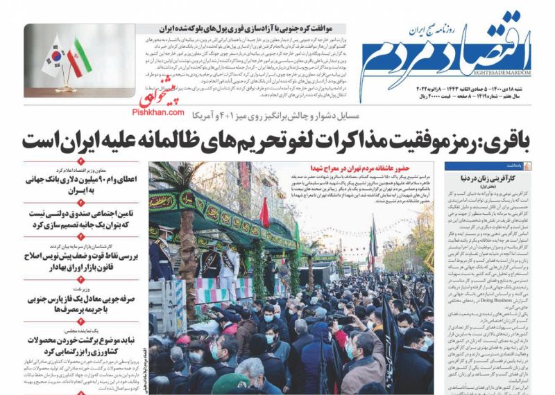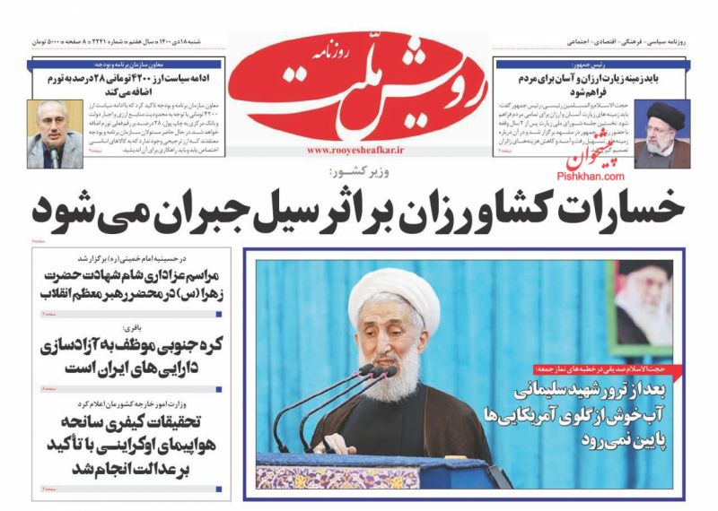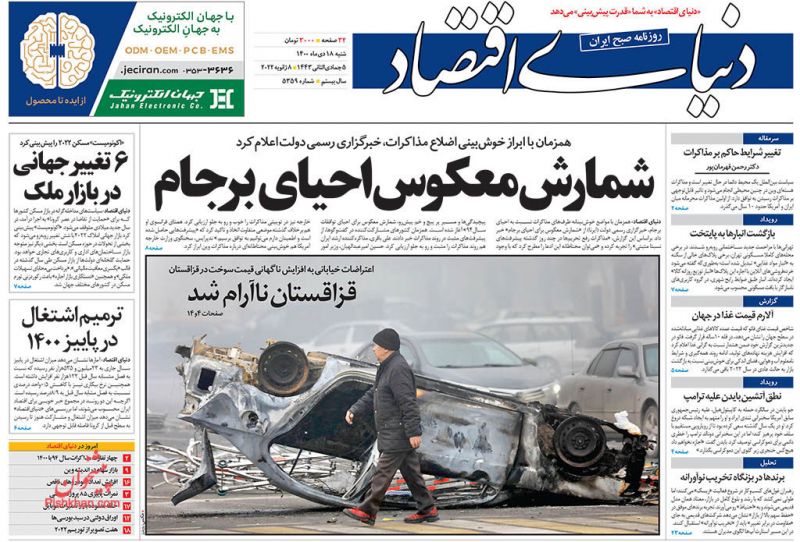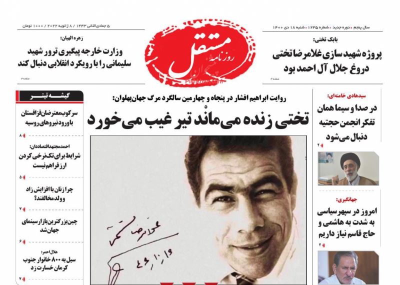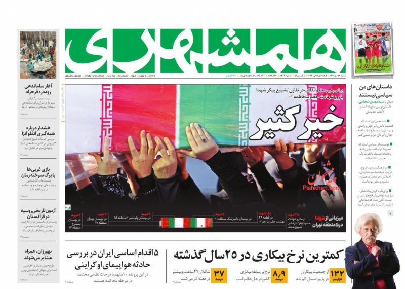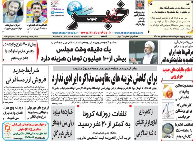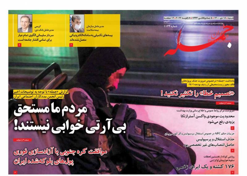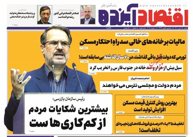 صفحه اول روزنامههای شنبه ۱۸ دی ۱۴۰۰