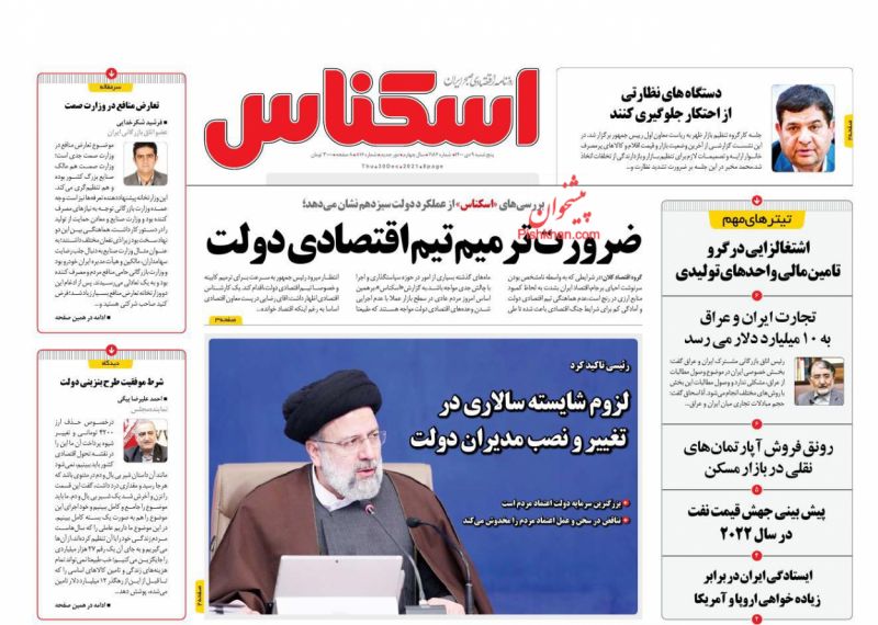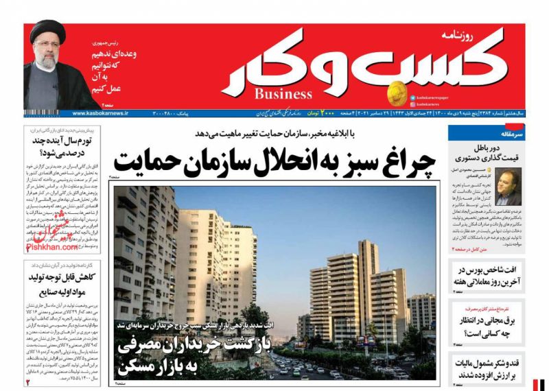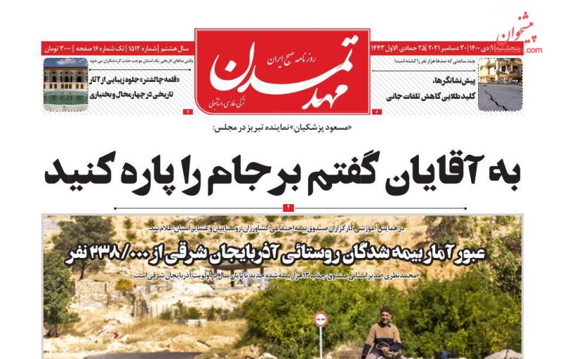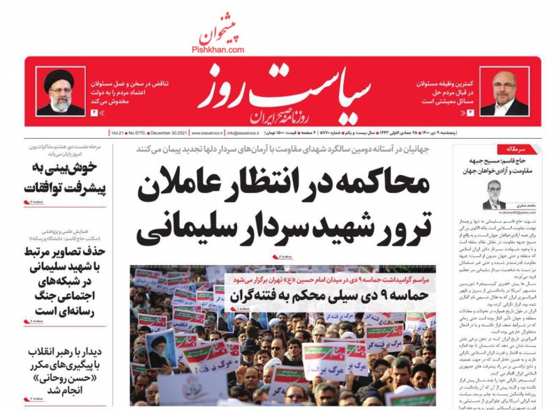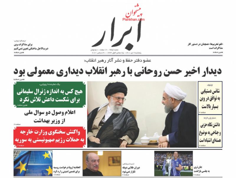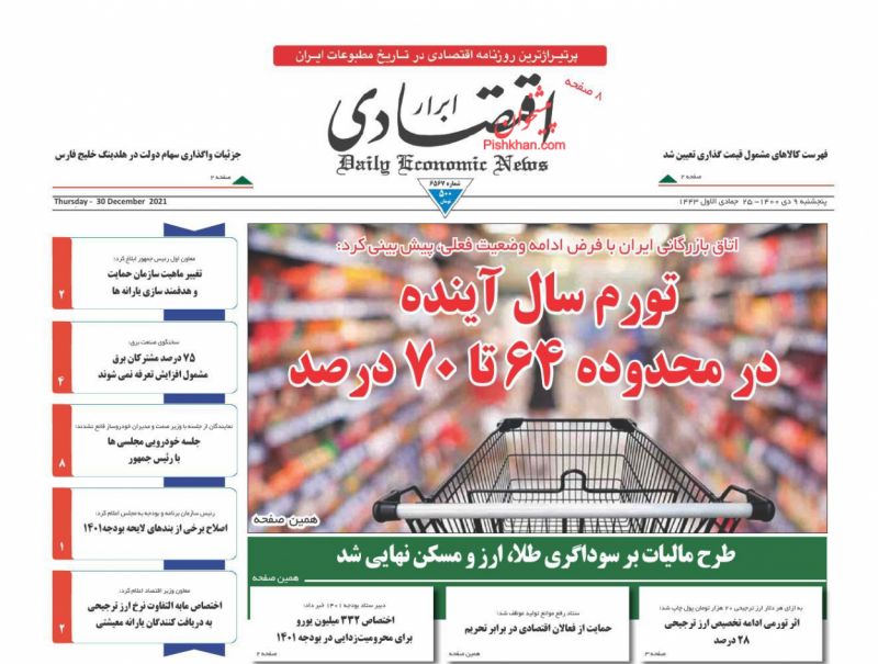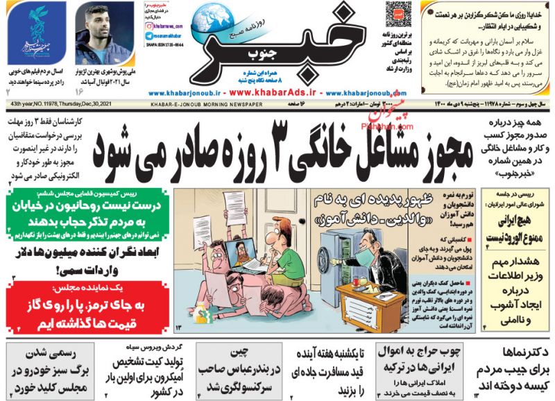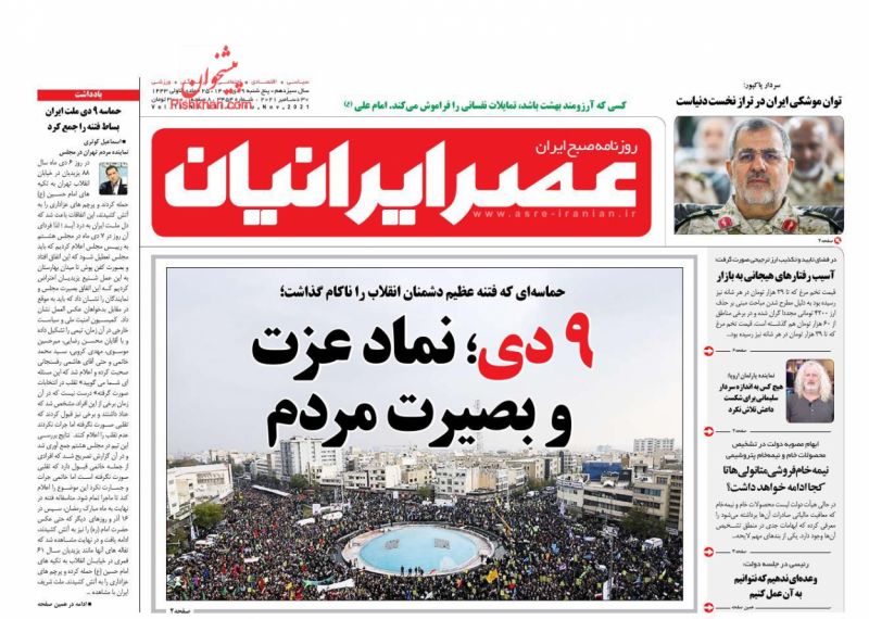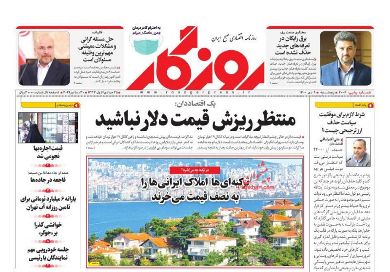 صفحه اول روزنامههای پنجشنبه ۹ دی ۱۴۰۰
