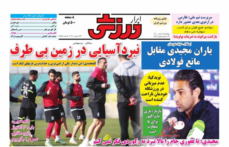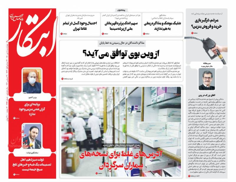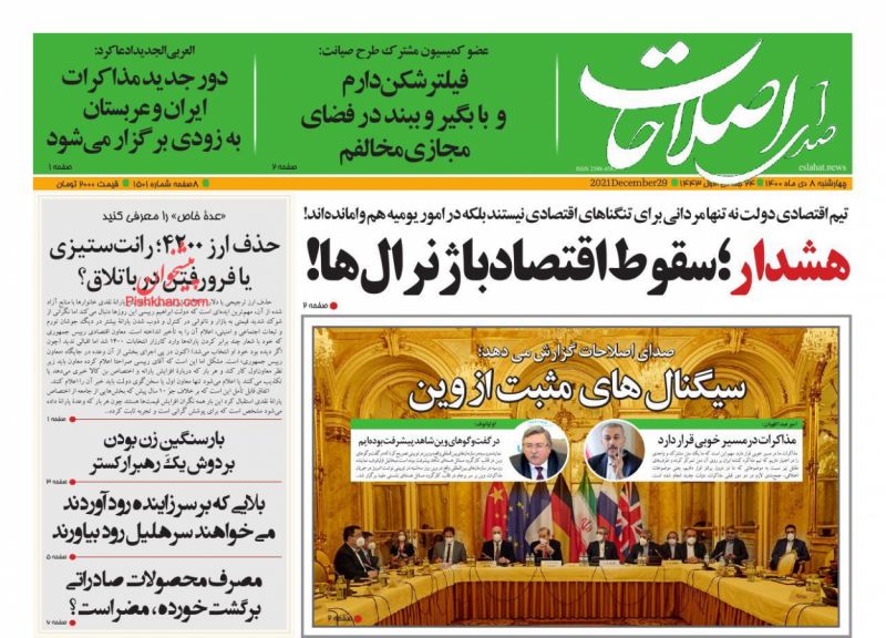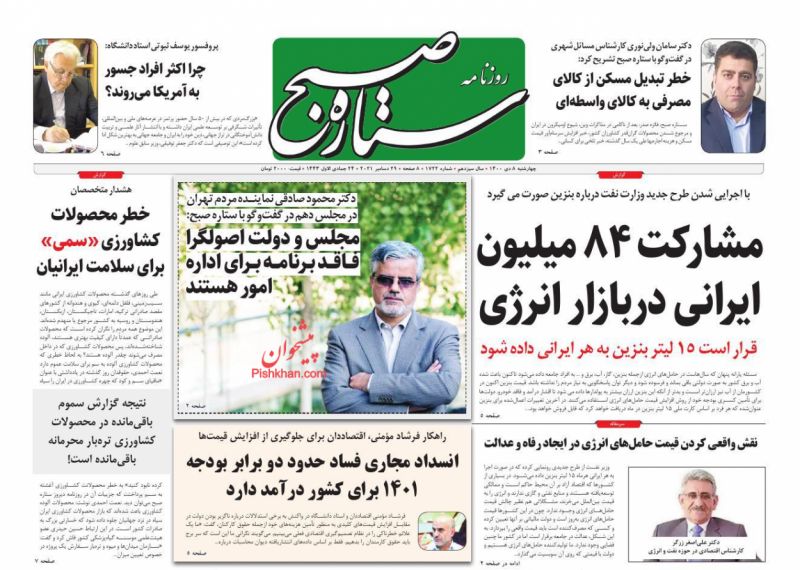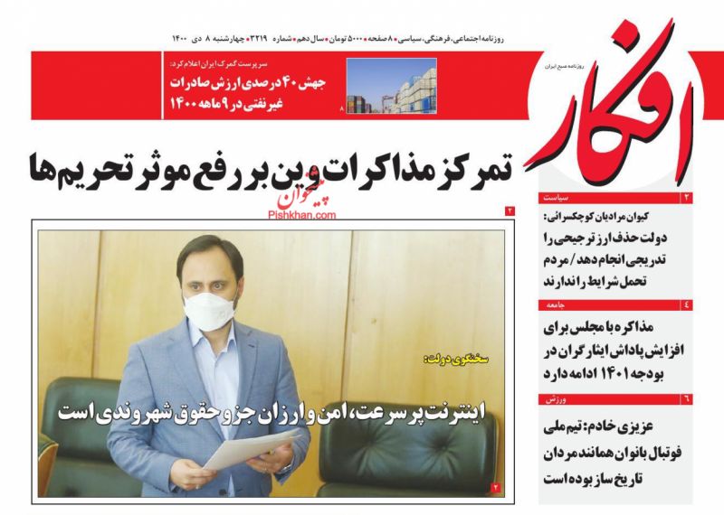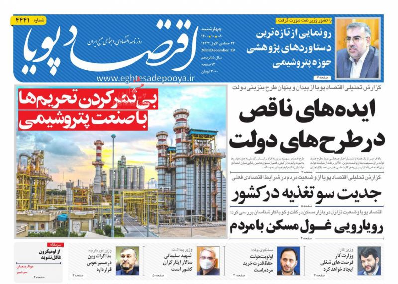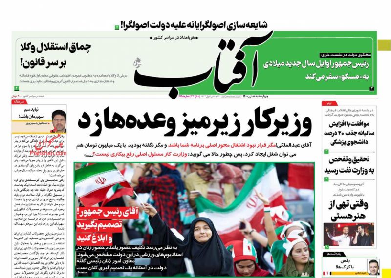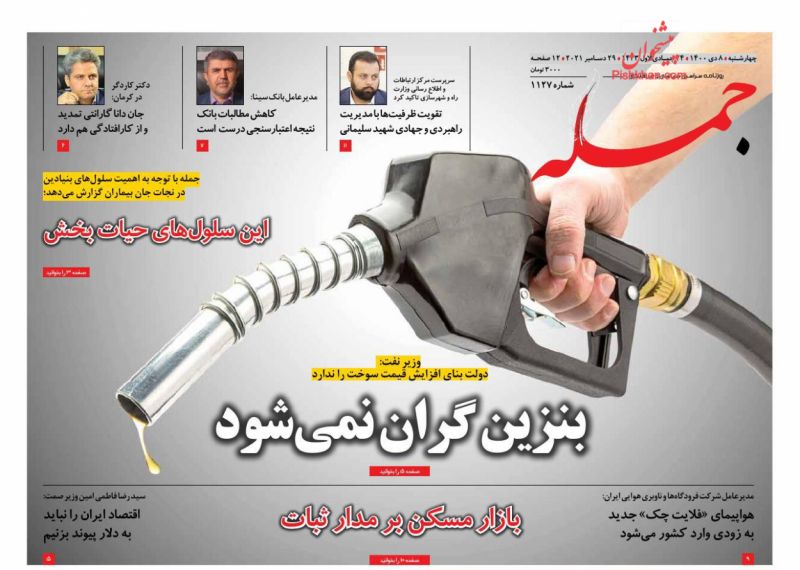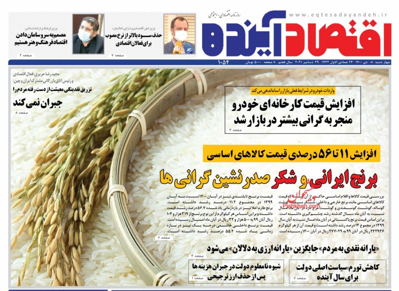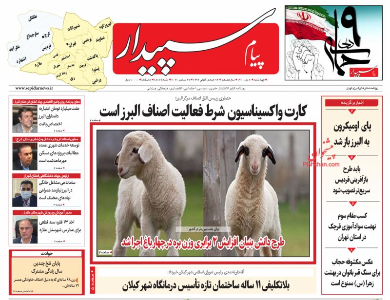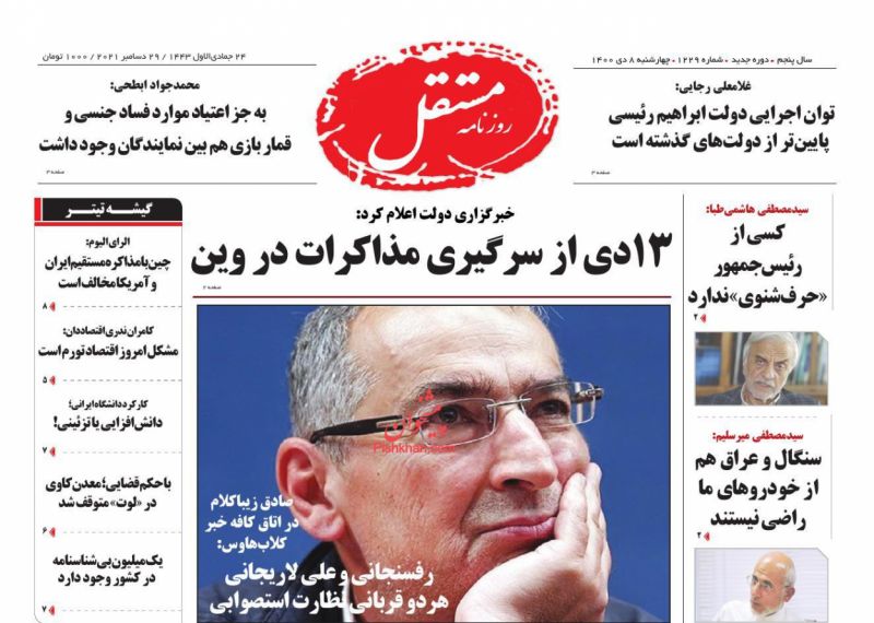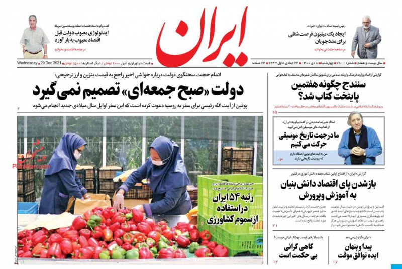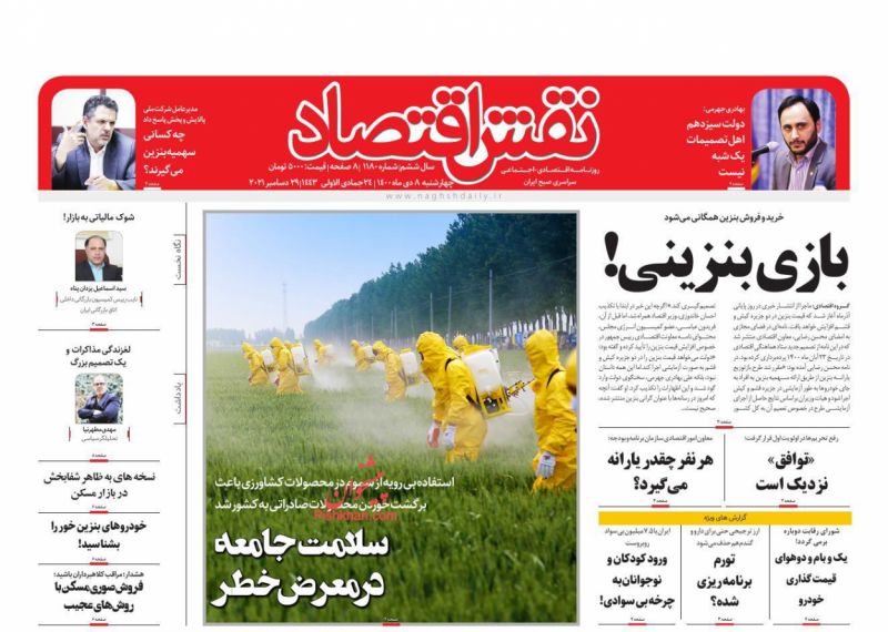 صفحه اول روزنامه‌های چهارشنبه ۸ دی ۱۴۰۰