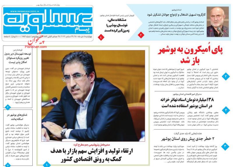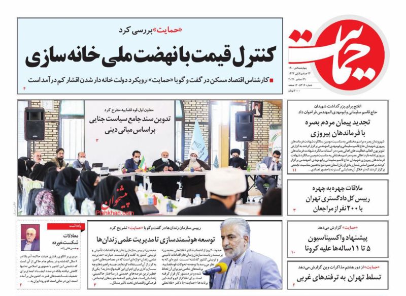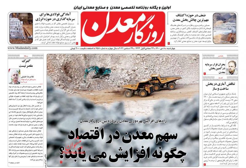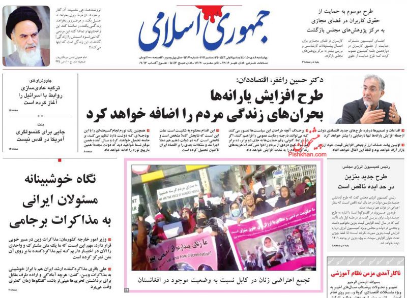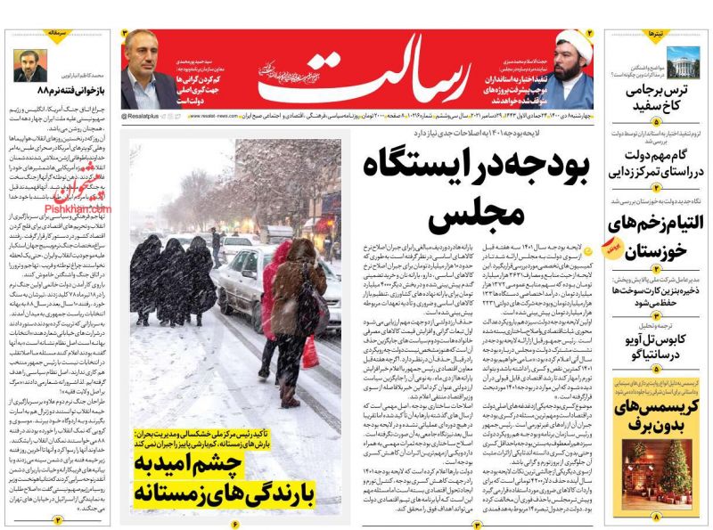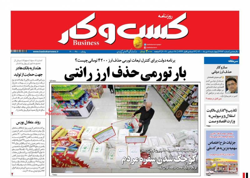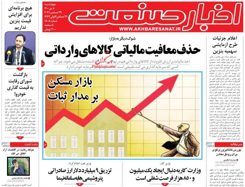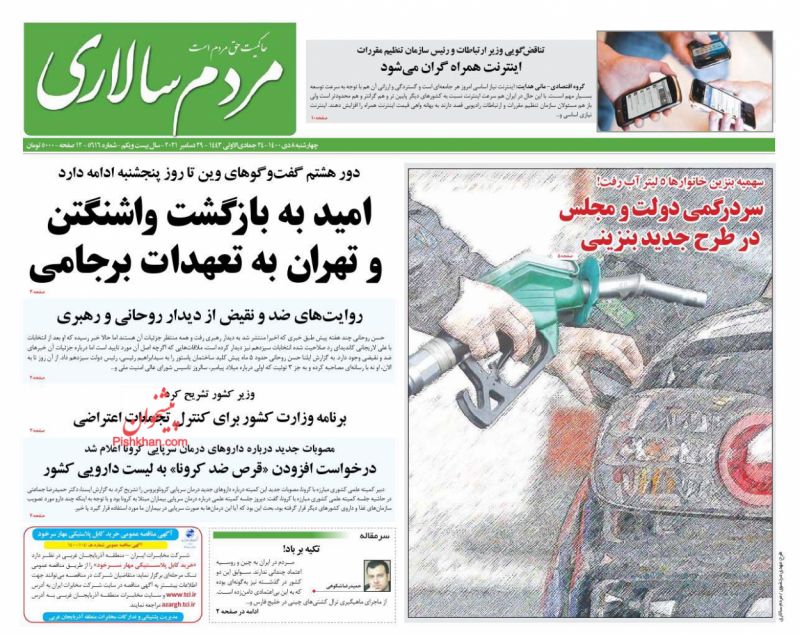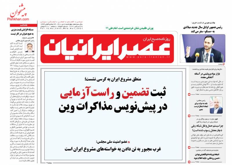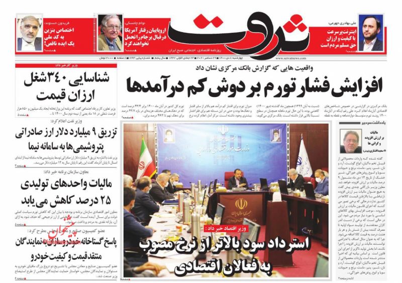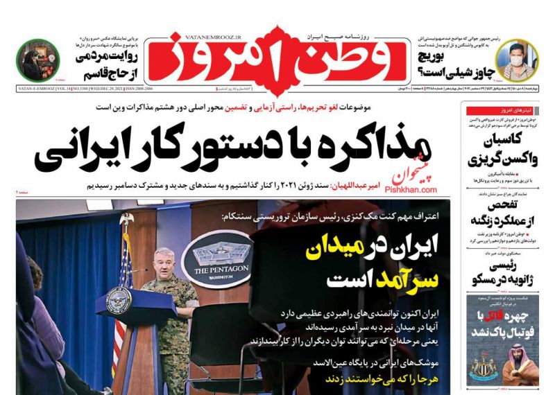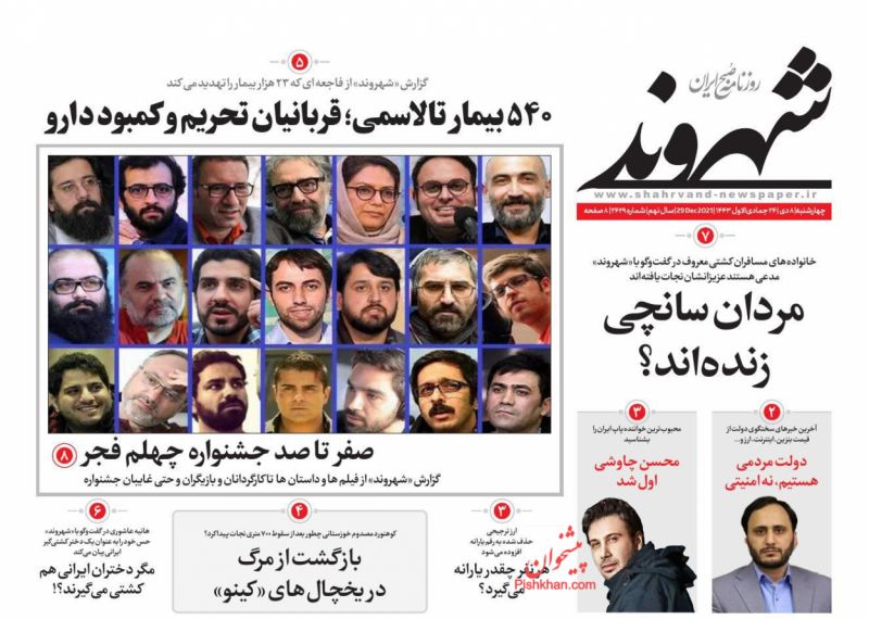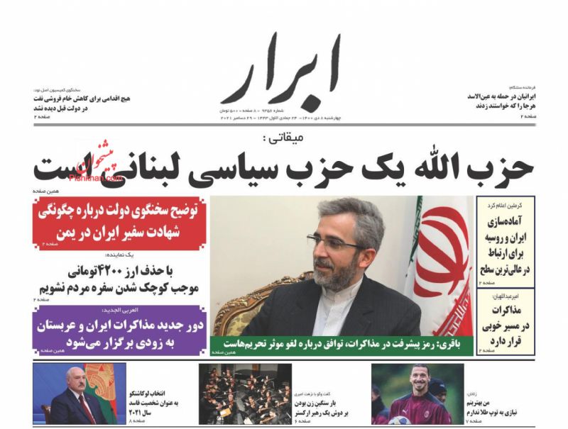 صفحه اول روزنامه‌های چهارشنبه ۸ دی ۱۴۰۰