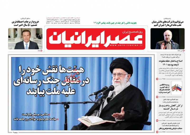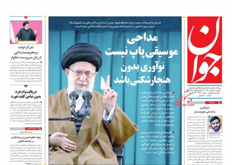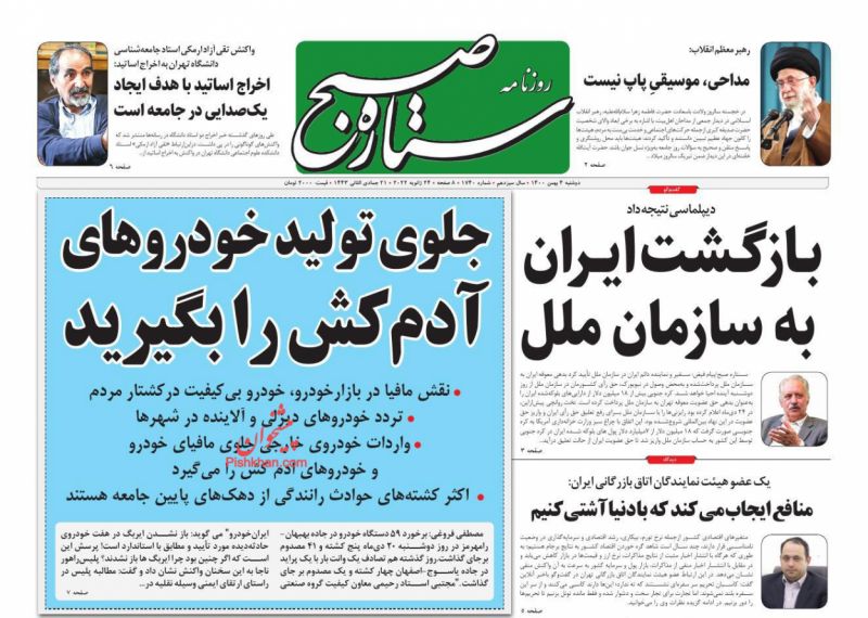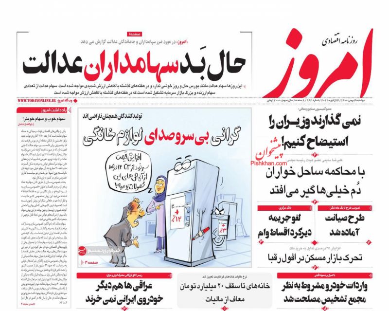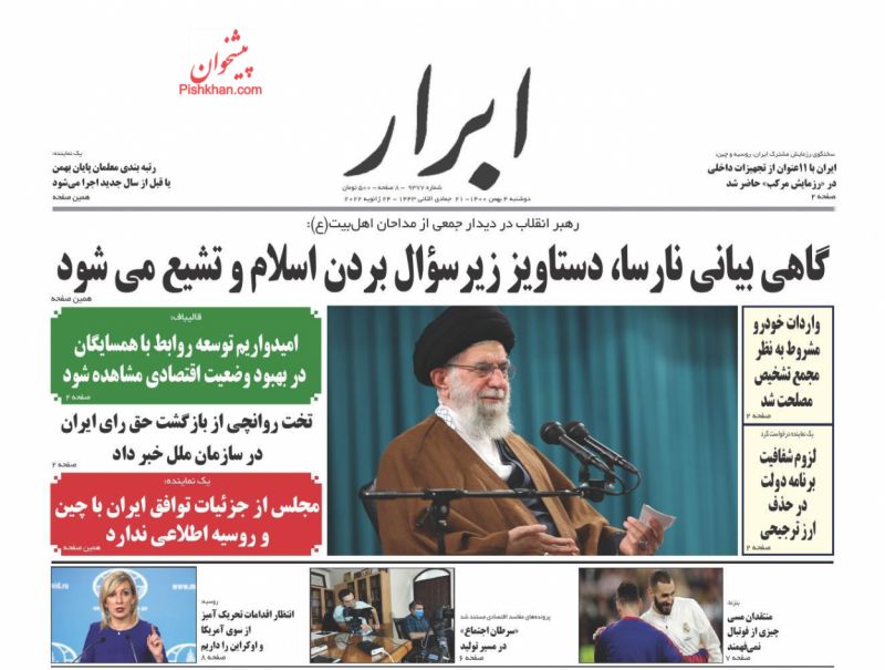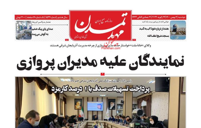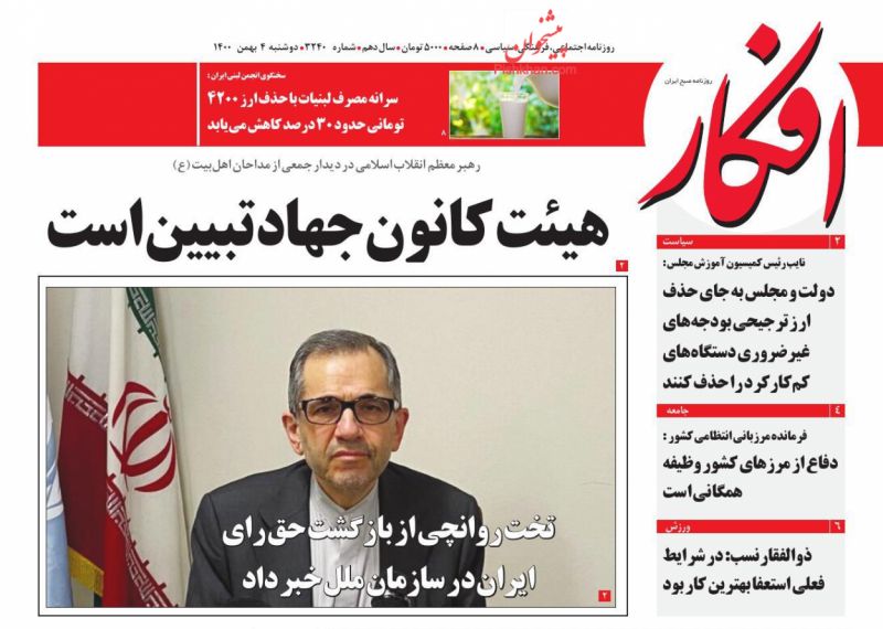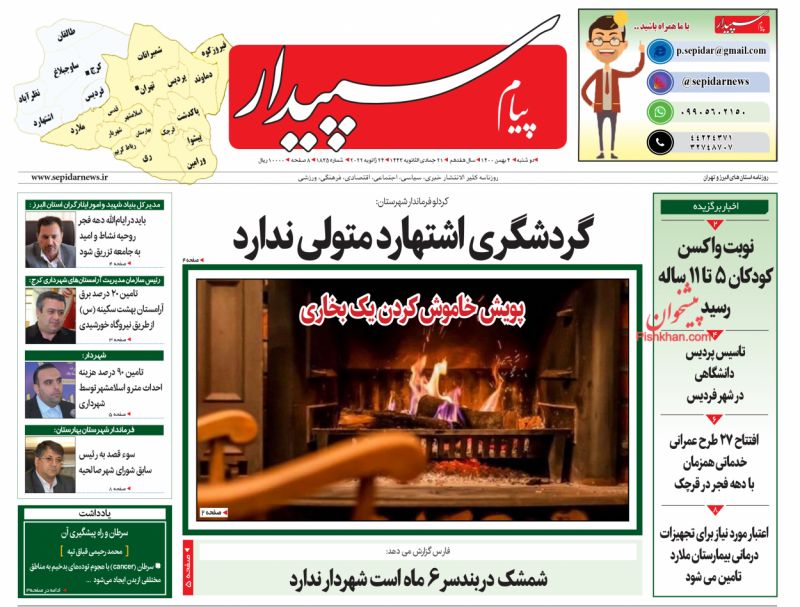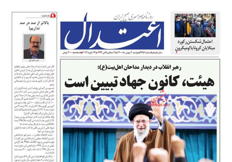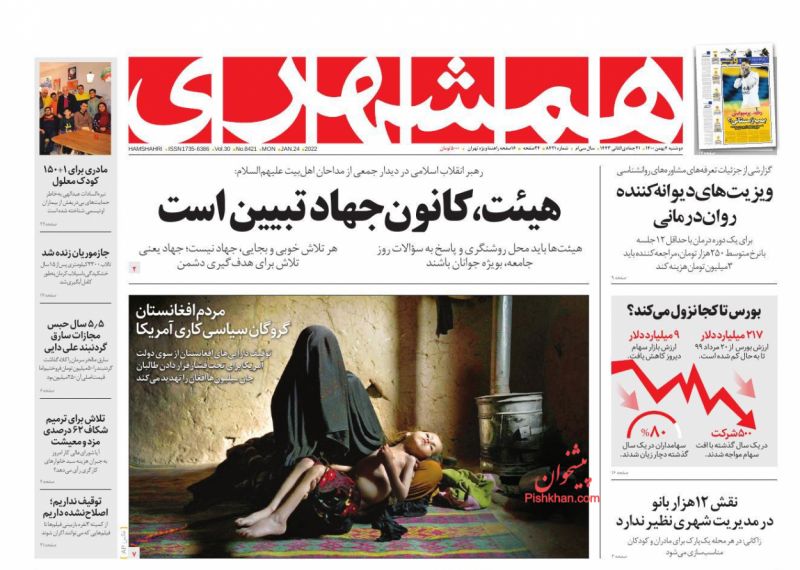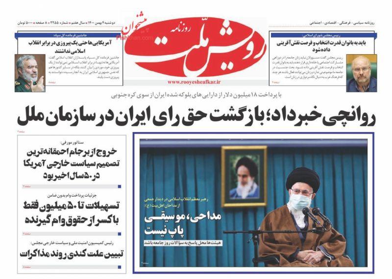 صفحه اول روزنامههای دوشنبه ۴ بهمن ۱۴۰۰