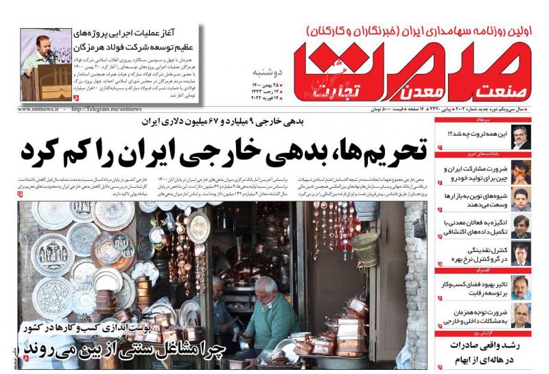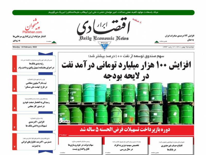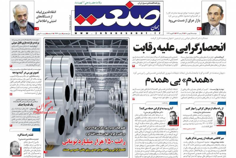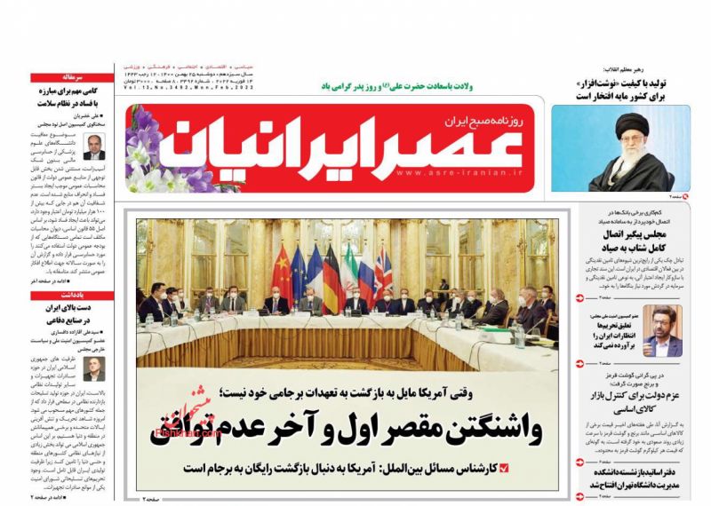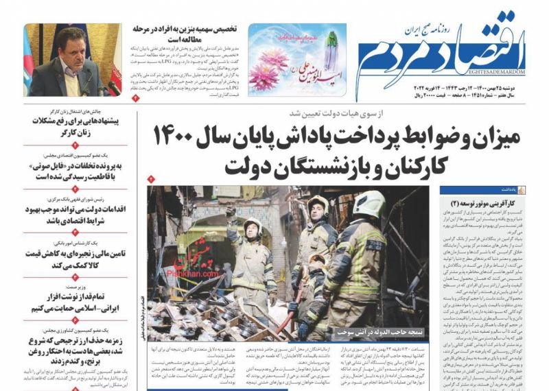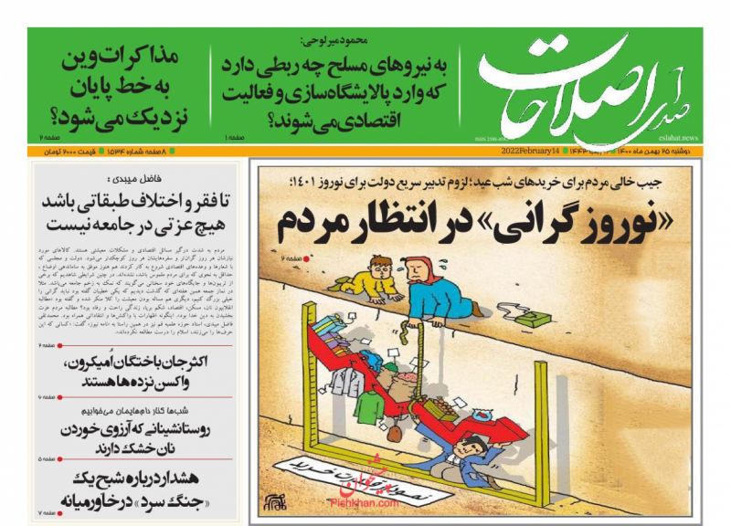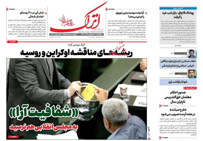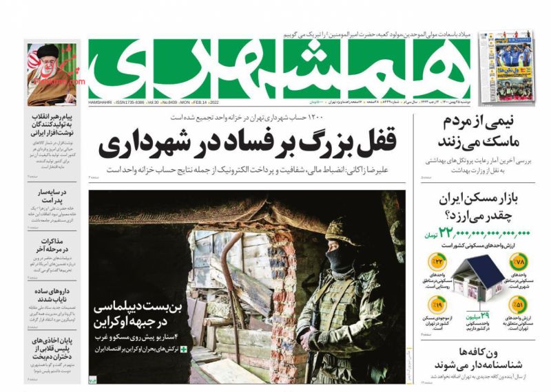 صفحه اول روزنامههای دوشنبه ۲۵ بهمن ۱۴۰۰
