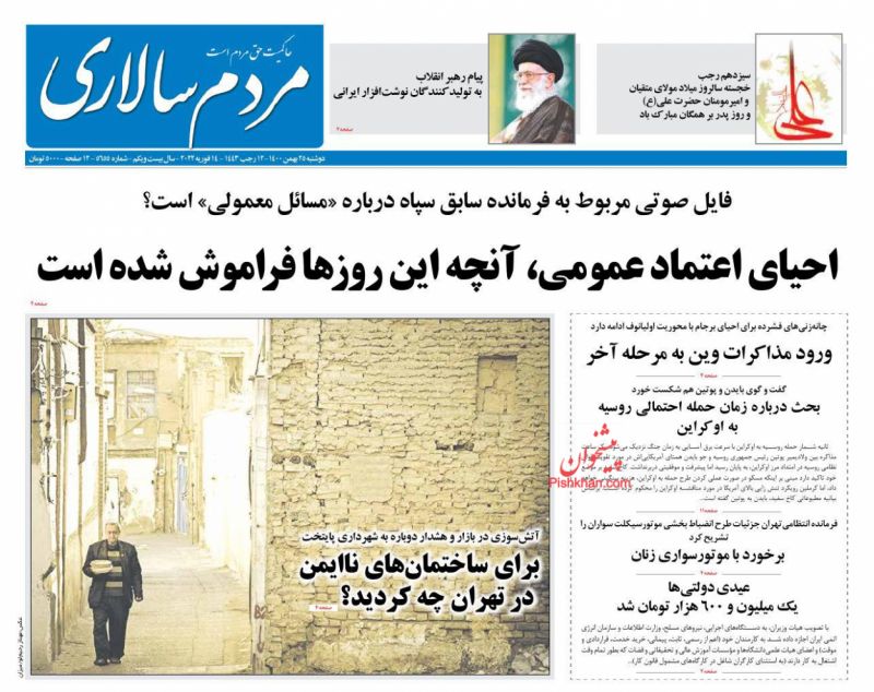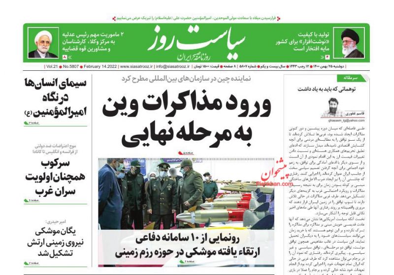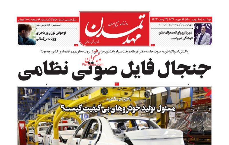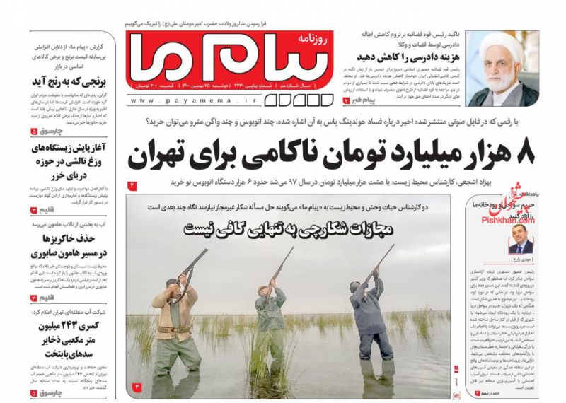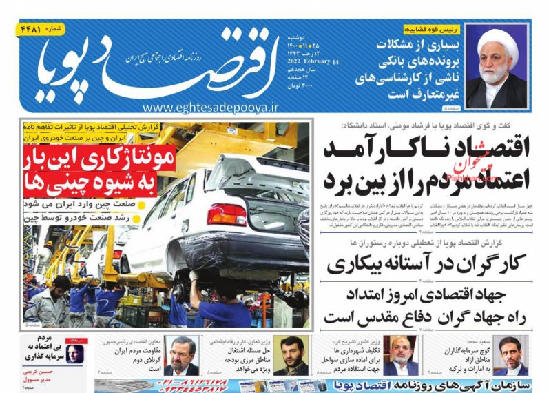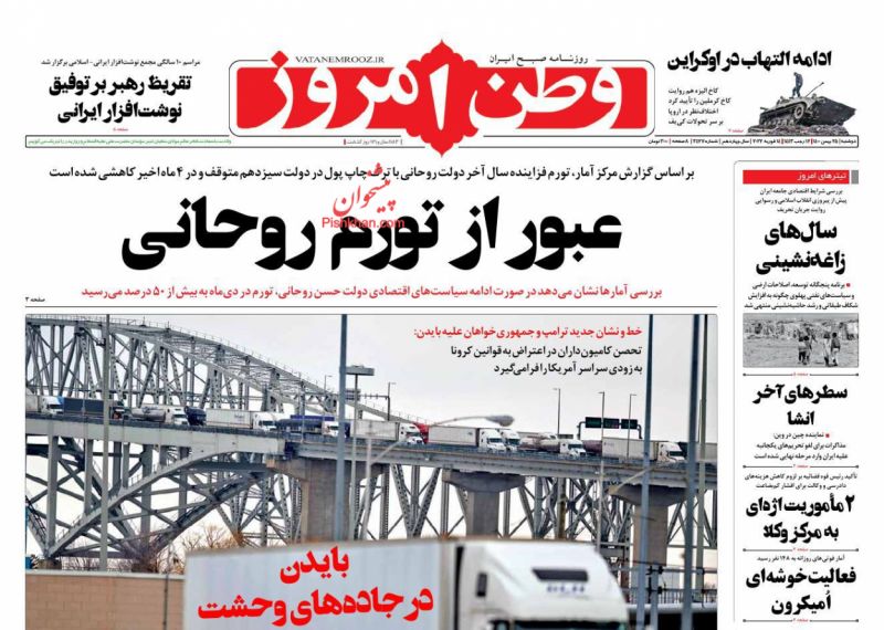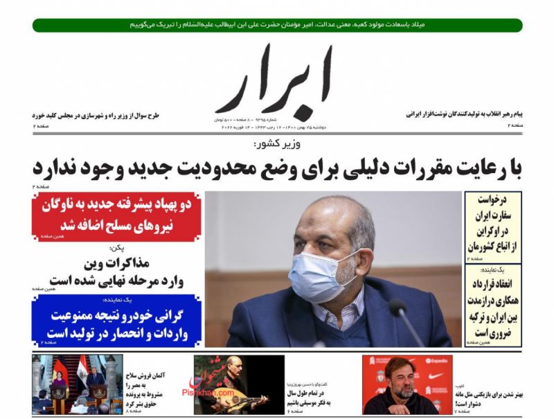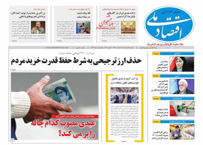 صفحه اول روزنامههای دوشنبه ۲۵ بهمن ۱۴۰۰