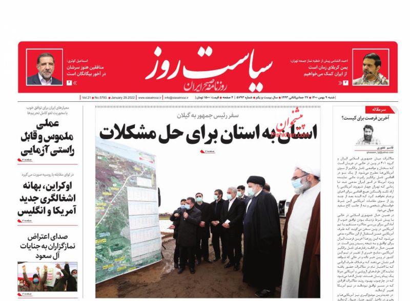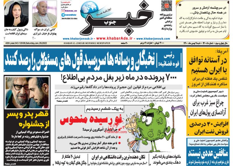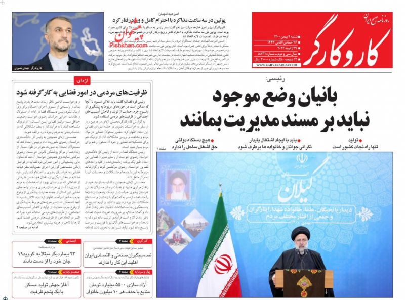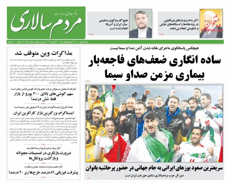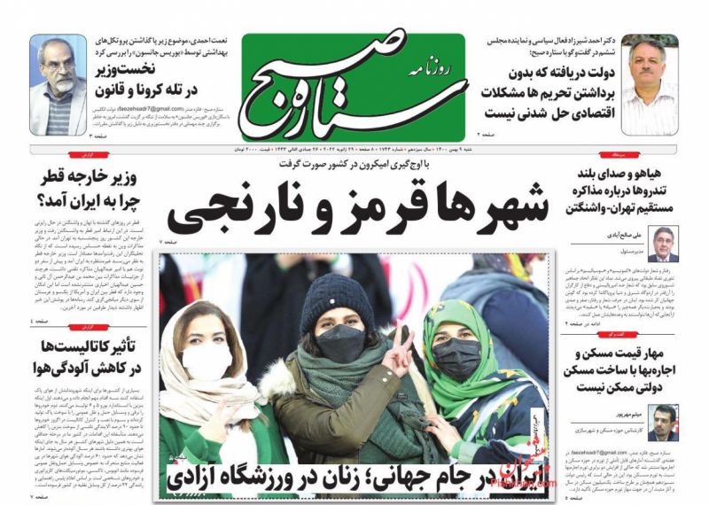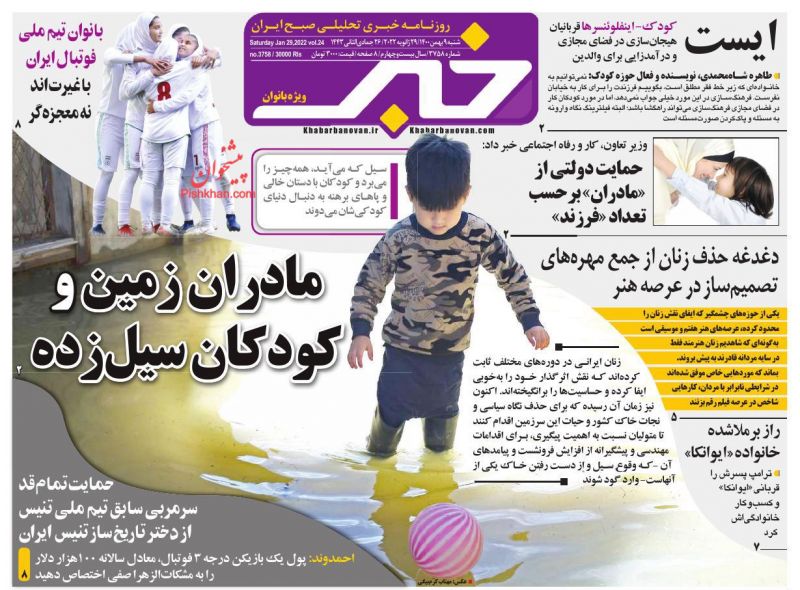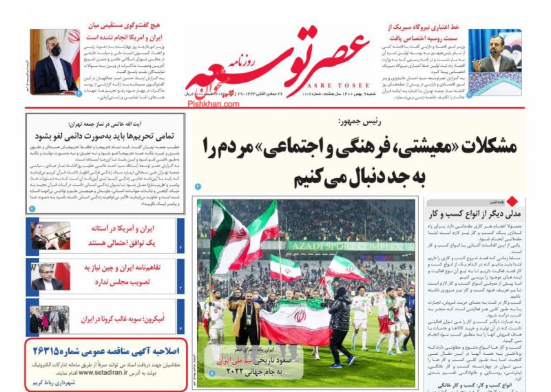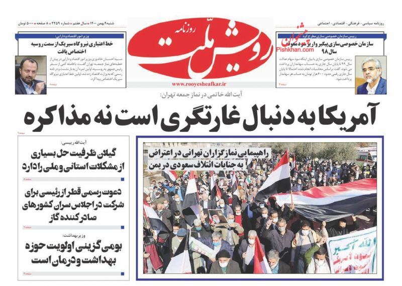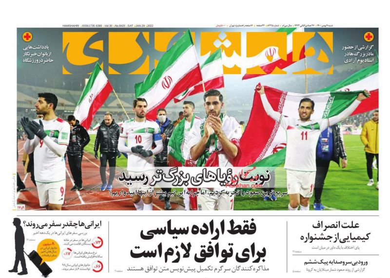 صفحه اول روزنامههای شنبه ۹ بهمن ۱۴۰۰