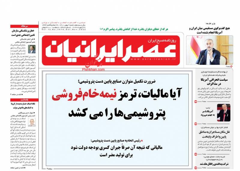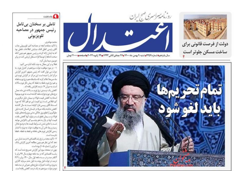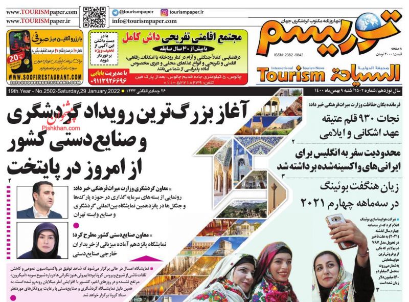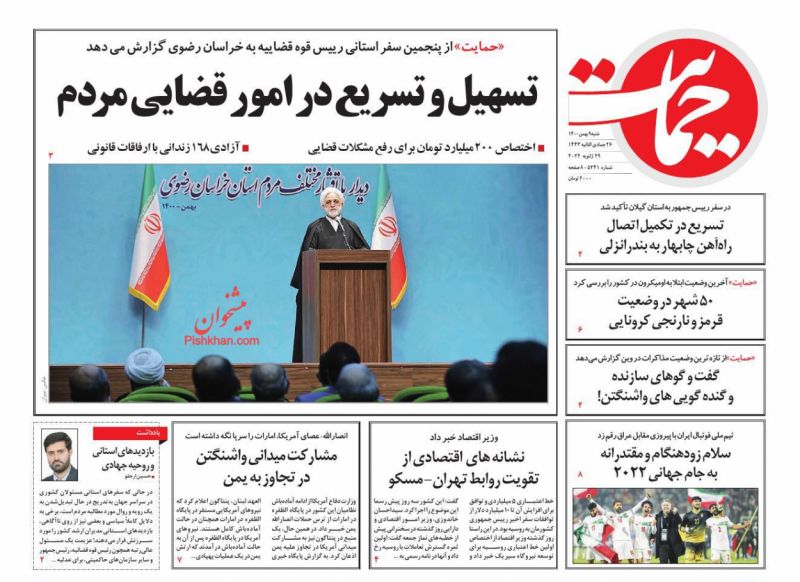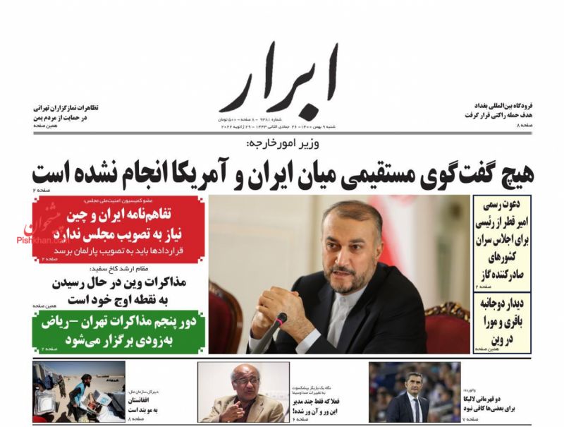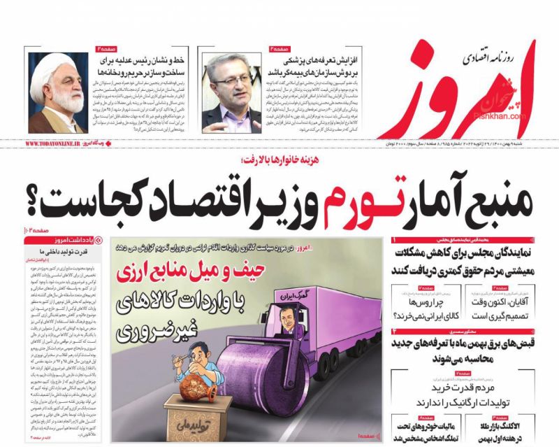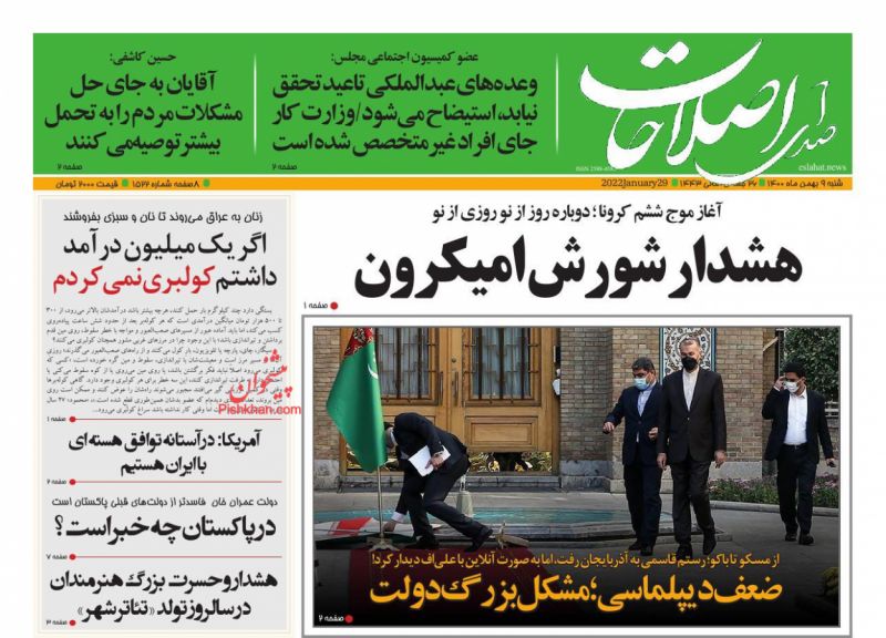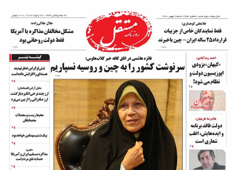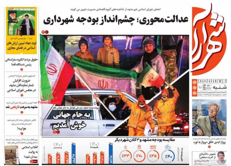 صفحه اول روزنامههای شنبه ۹ بهمن ۱۴۰۰