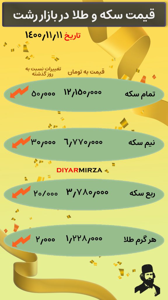 به گزارش پایگاه اطلاع رسانی دیارمیرزا، اتحادیه طلا و سکه رشت اعلام کرد:
