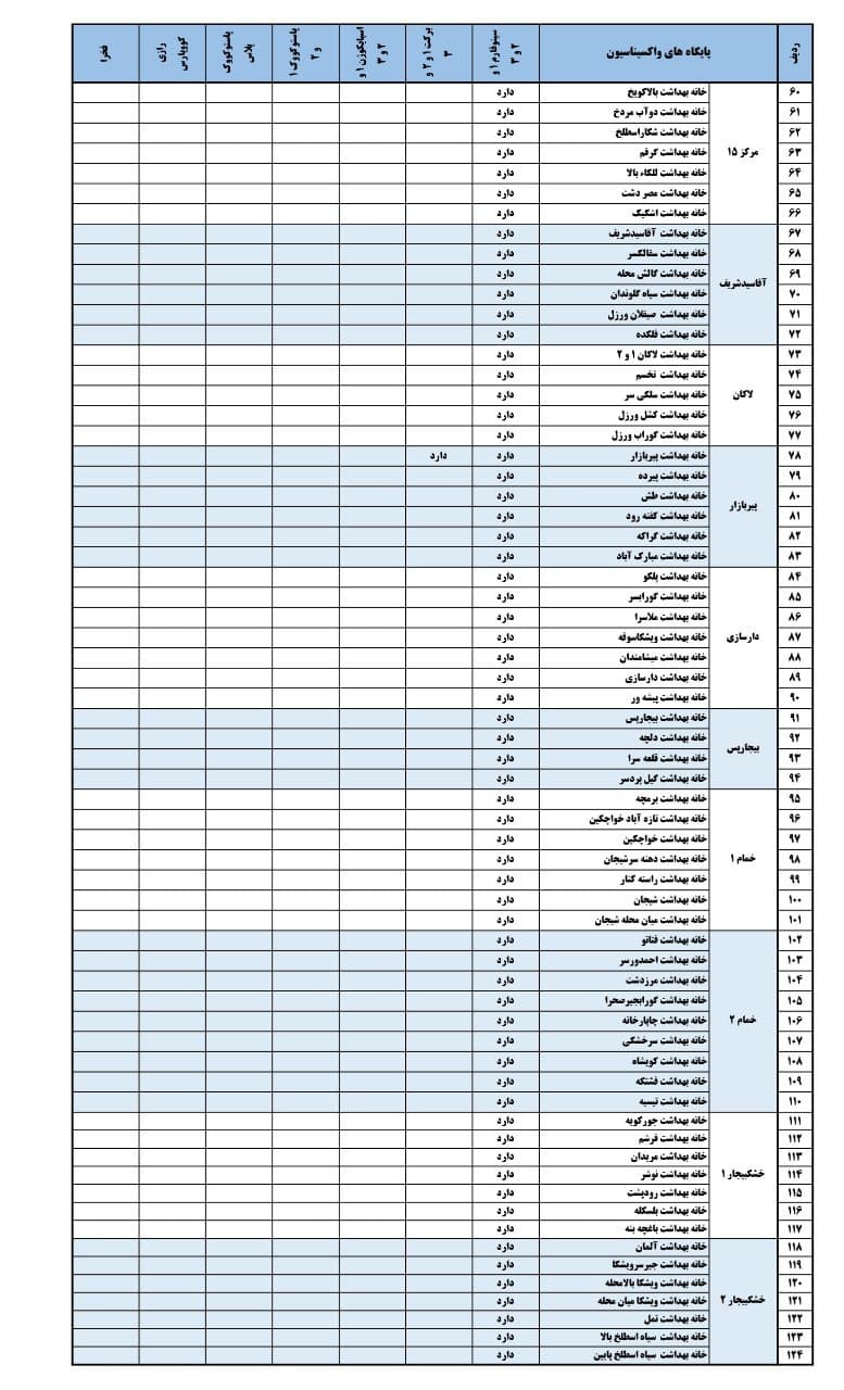 لیست مراکز واکسیناسیون کرونا در رشت و خمام (چهارشنبه ۲۷ بهمن)
