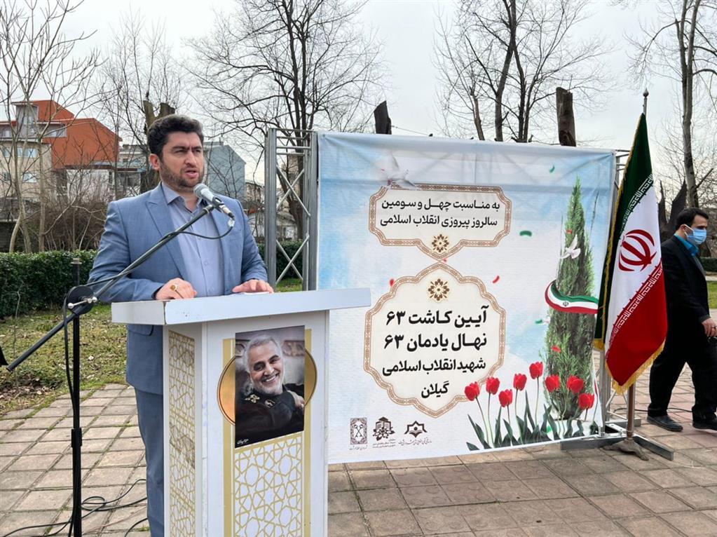مدیر منطقه دو شهرداری رشت نیز در این مراسم اظهار داشت: امروز شهرداری منطقه دو این توفیق را دارد تا با کاشت ۶۳ نهال به یاد ۶۳ شهید انقلاب اسلامی سهم کوچکی در ترویج فرهنگ انقلاب و یاد و خاطره شهدای گرانقدر انقلاب اسلامی ایفا کند.