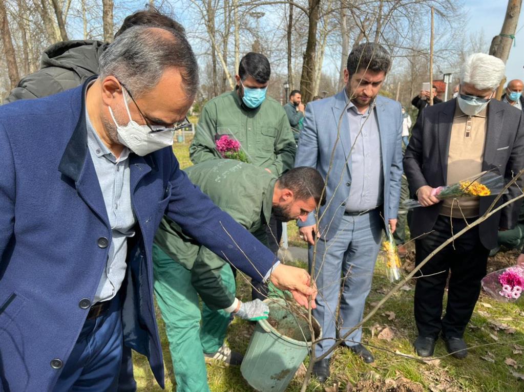 کاشت ۶۳ نهال به یاد ۶۳ شهید انقلاب اسلامی گیلان در پارک شهر رشت
